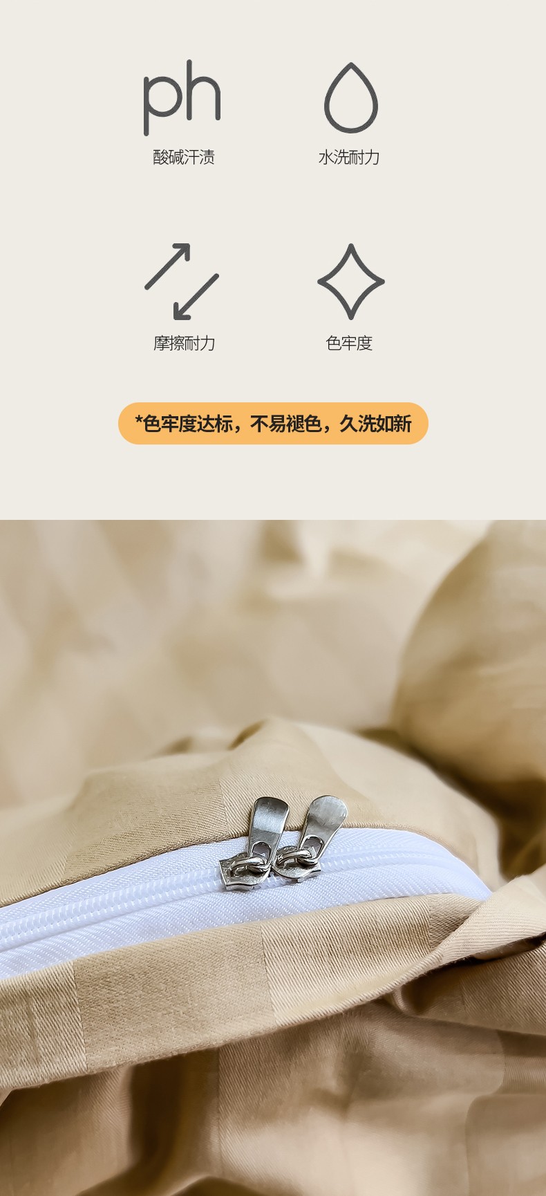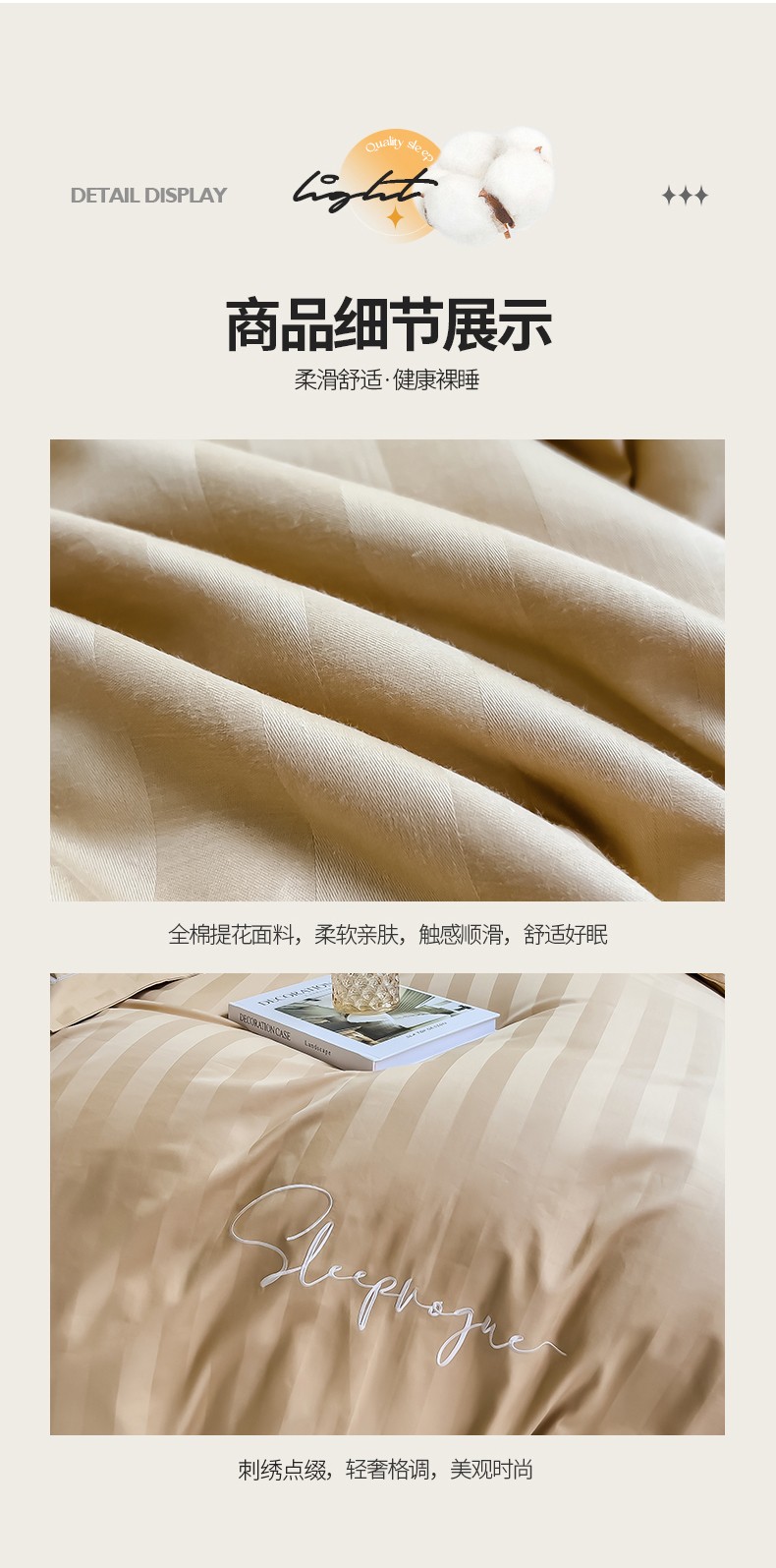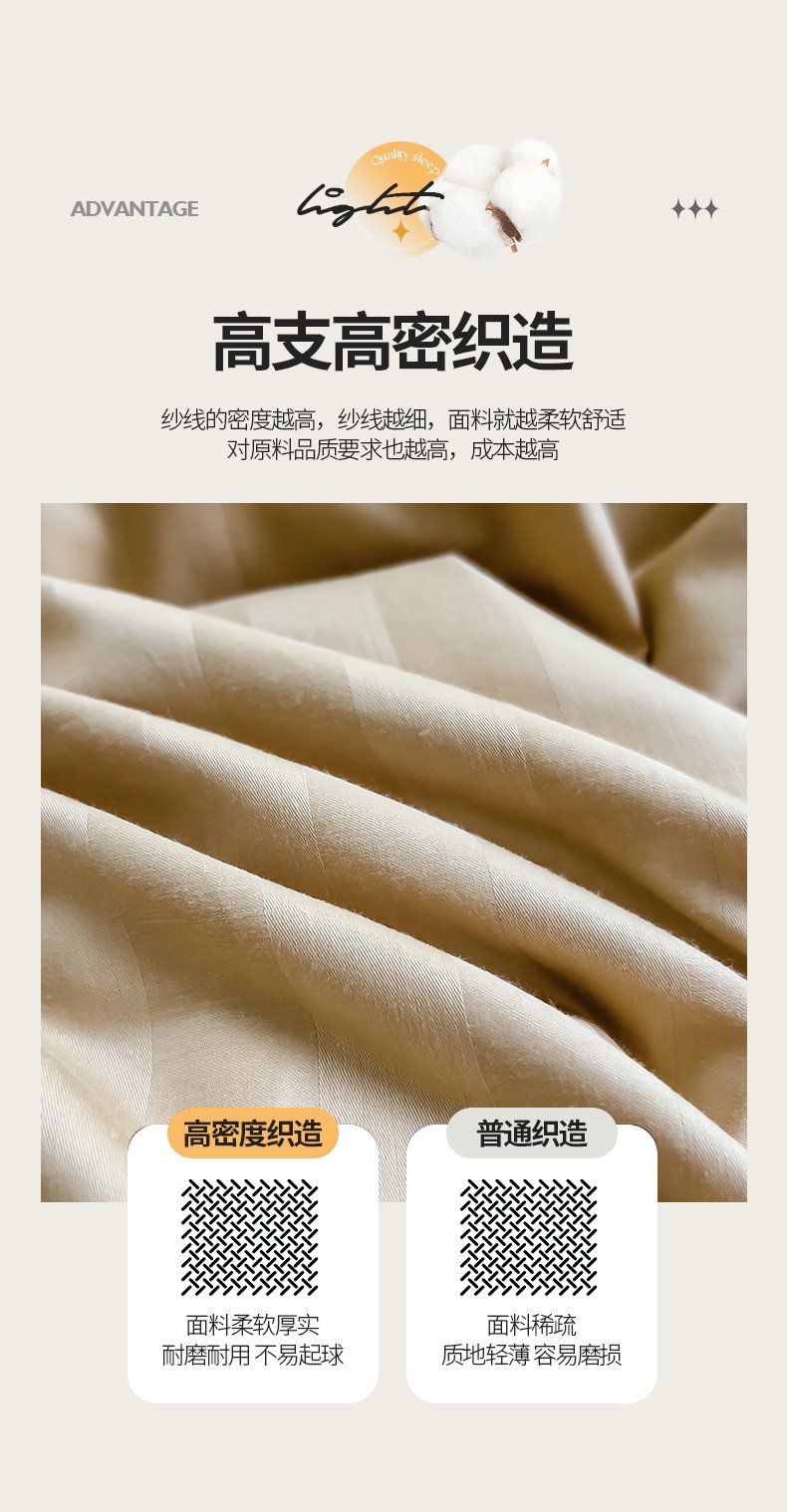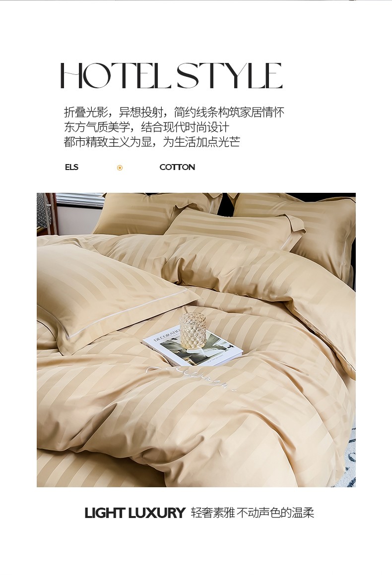 商品名称:慕尚 2025新款60支长绒棉提花条纹系列单品被套 条纹卡其