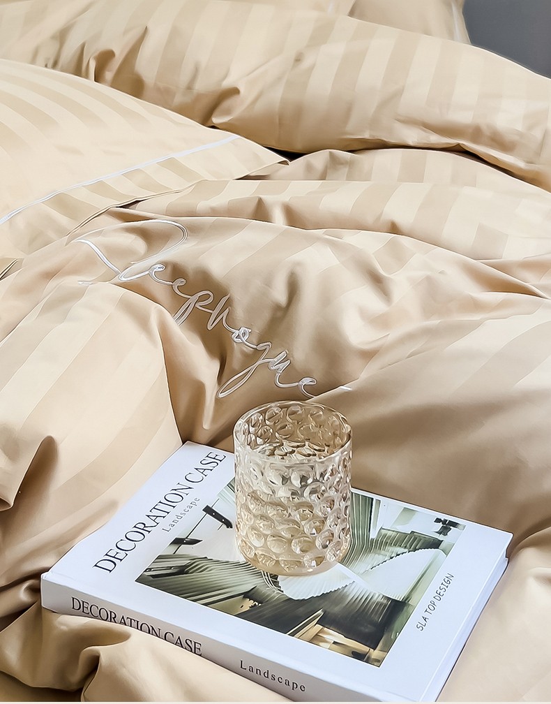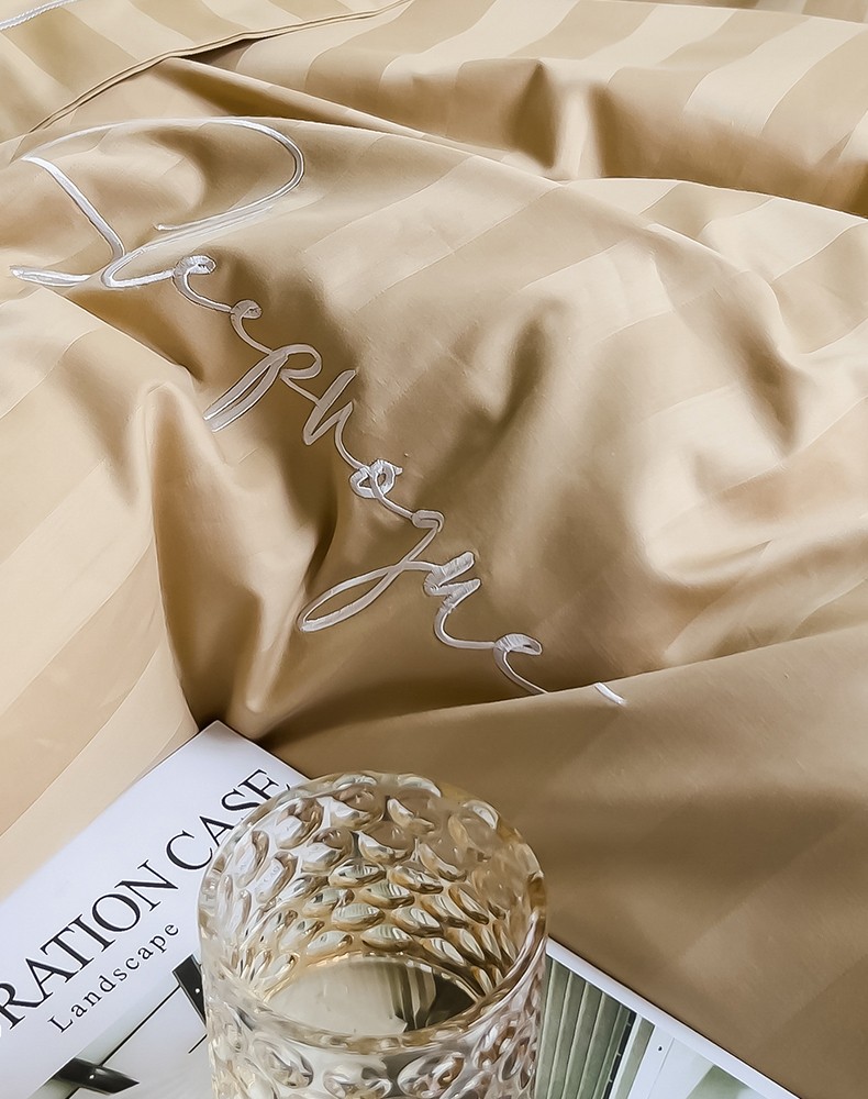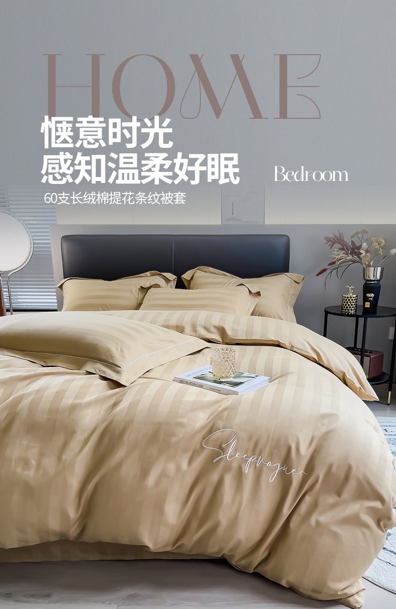 慕尚 2025新款60支长绒棉提花条纹系列单品被套 条纹卡其