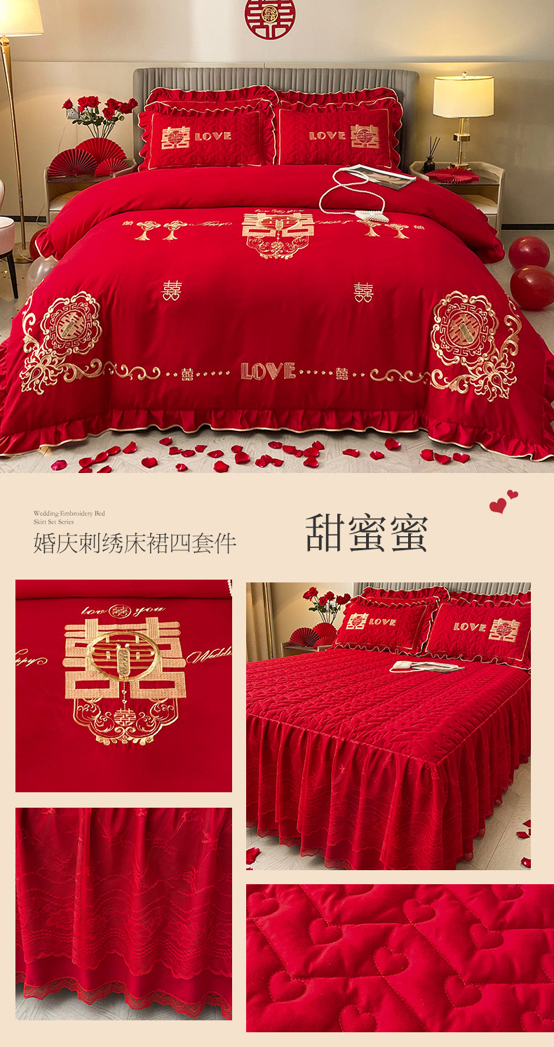 当前位置: 91家纺网 > 商品网购 > 床品套件 > 四件套 > 普通磨毛四件套 > 宜凡家纺 2023新款亲肤磨毛婚庆夹棉床裙四件套 甜蜜蜜