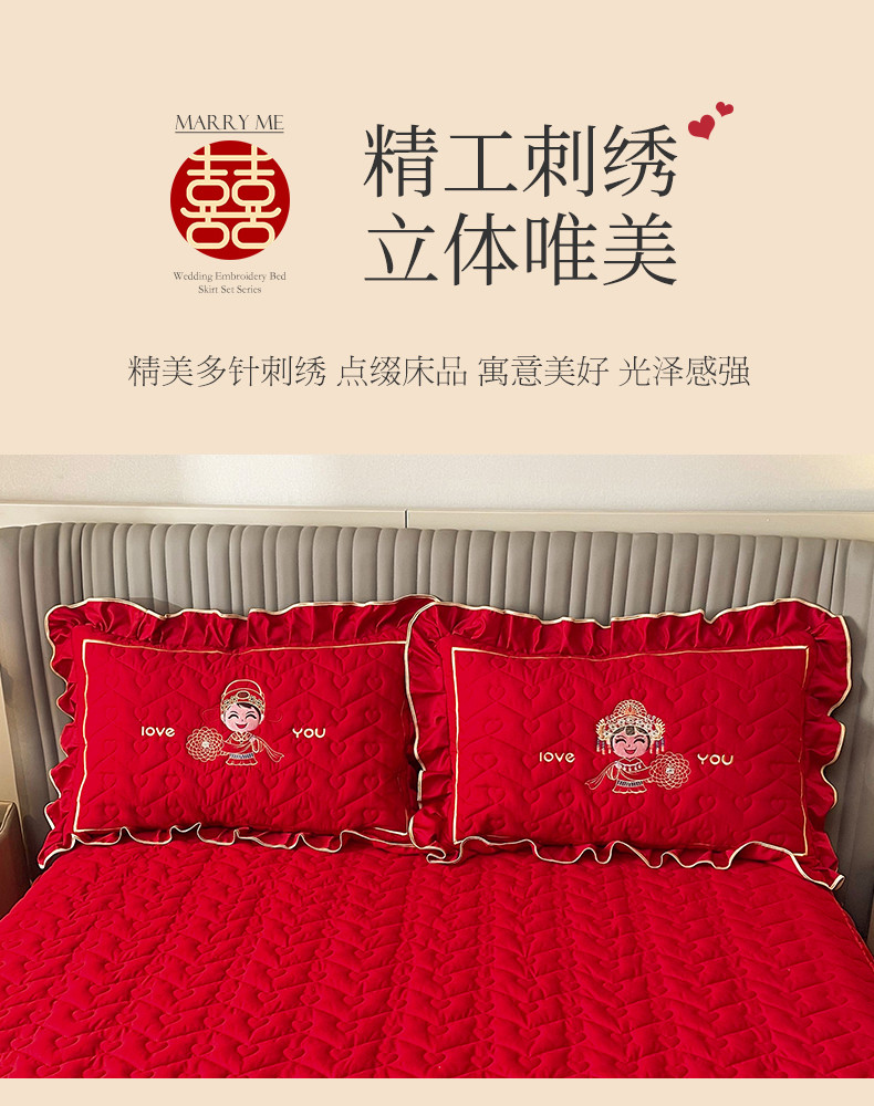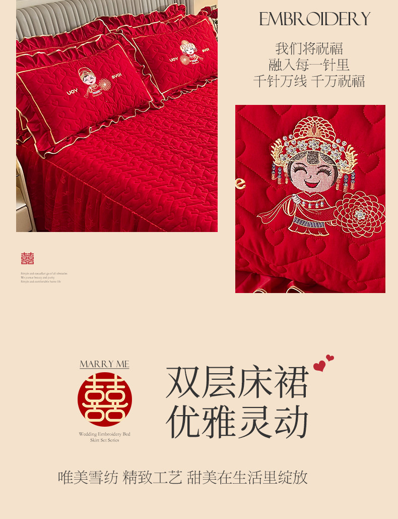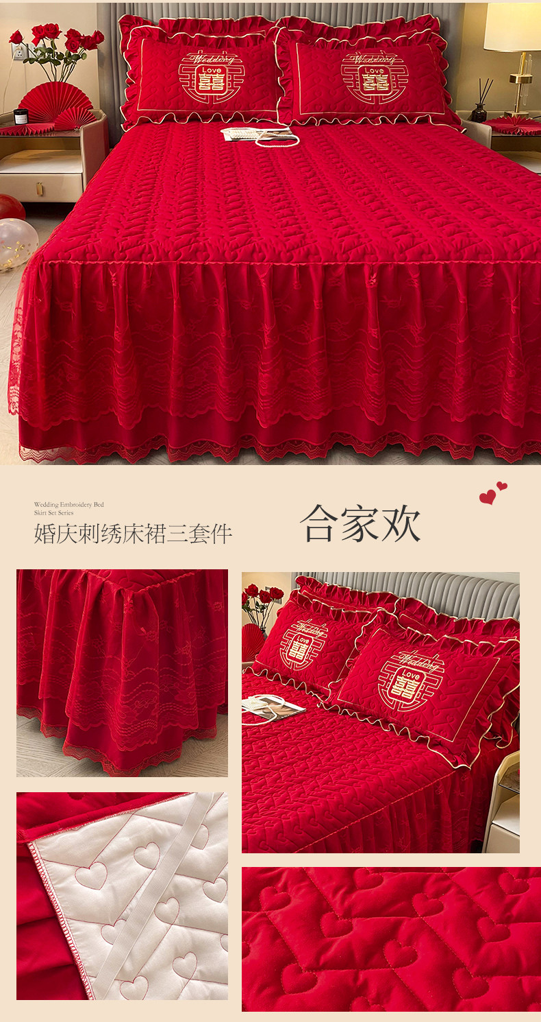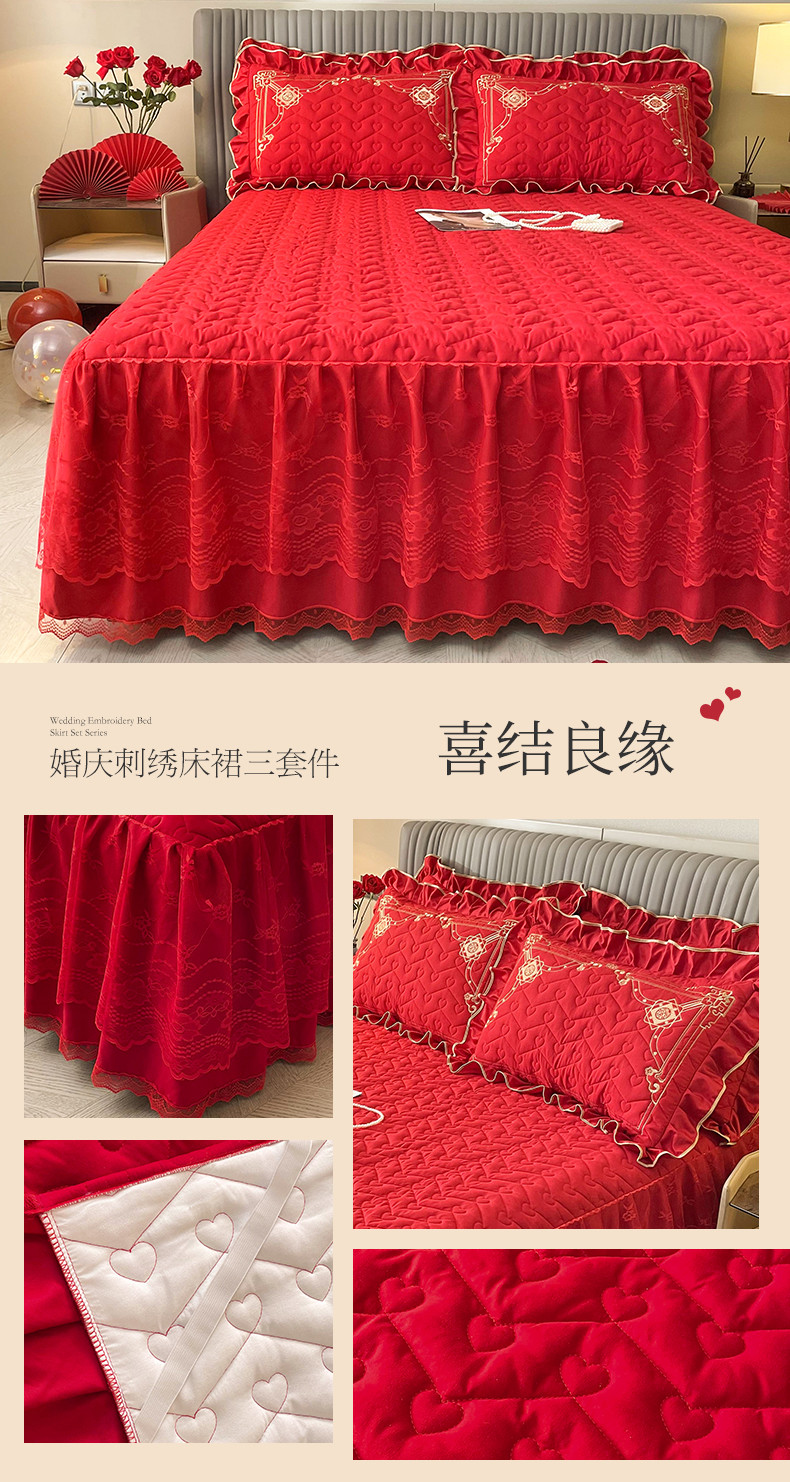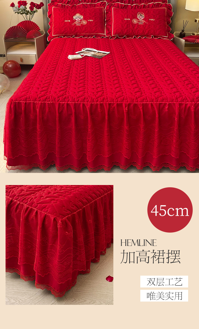 (总)宜凡家纺 2023新款亲肤磨毛婚庆夹棉床裙三件套