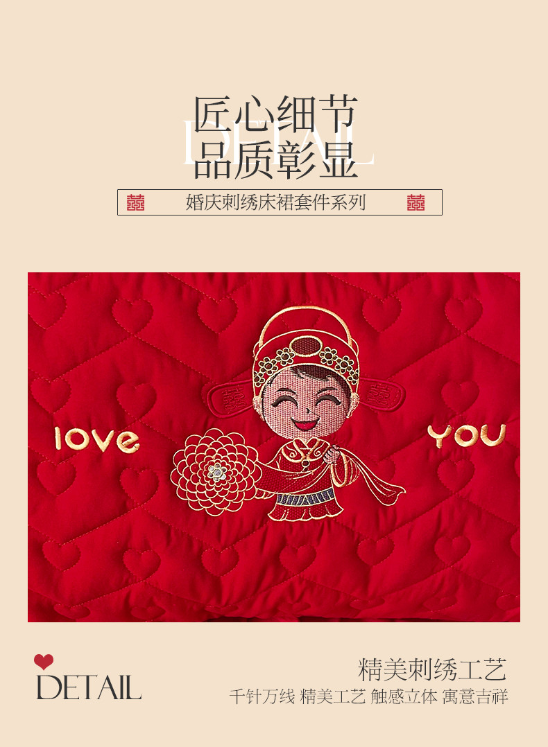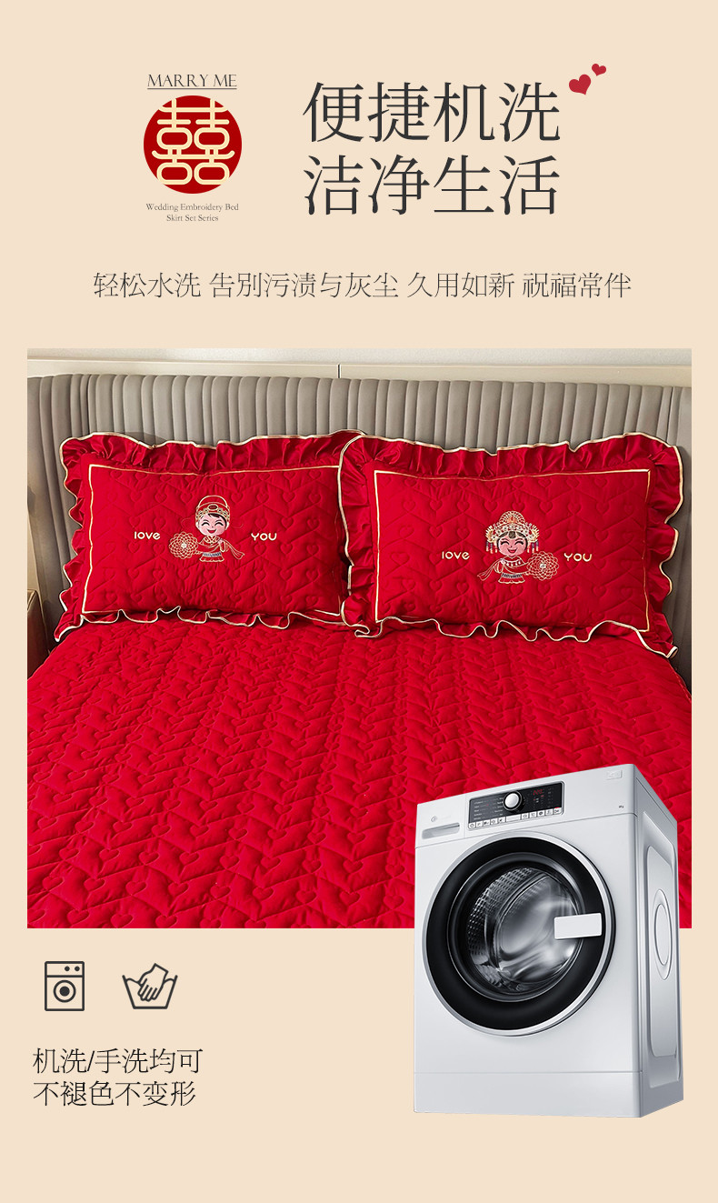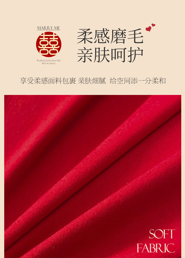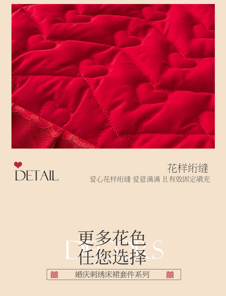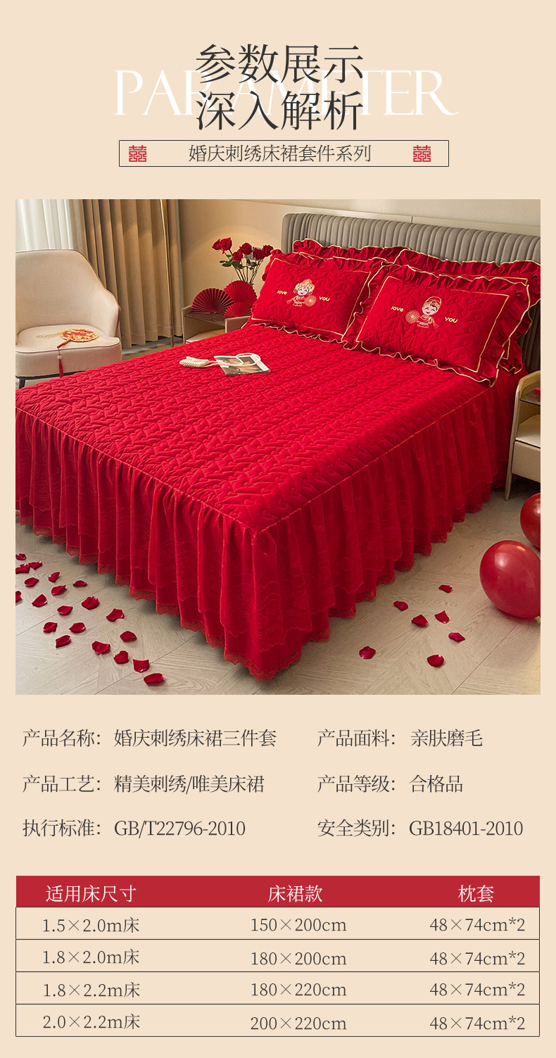 商品名称:(总)宜凡家纺 2023新款亲肤磨毛婚庆夹棉床裙三件套