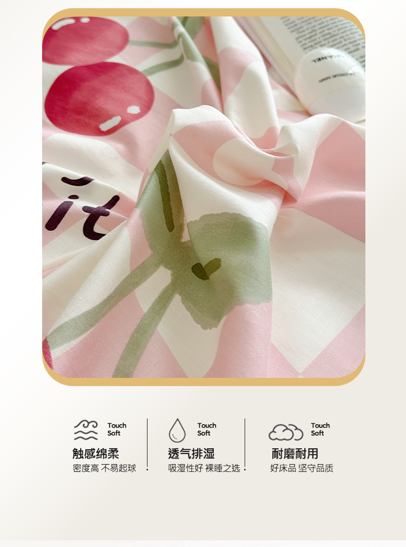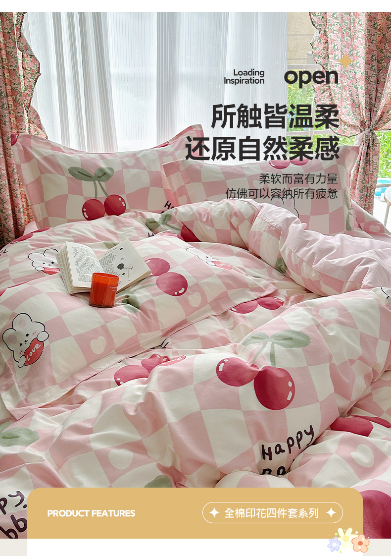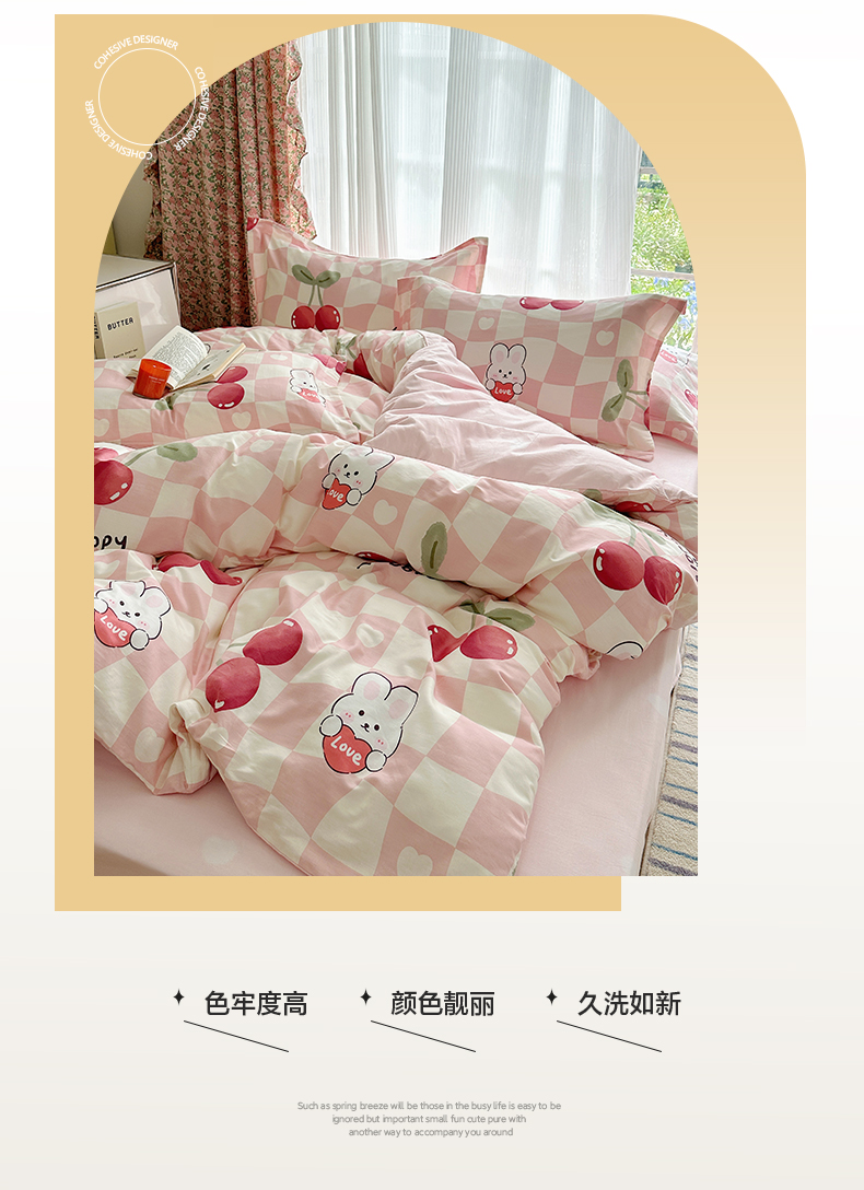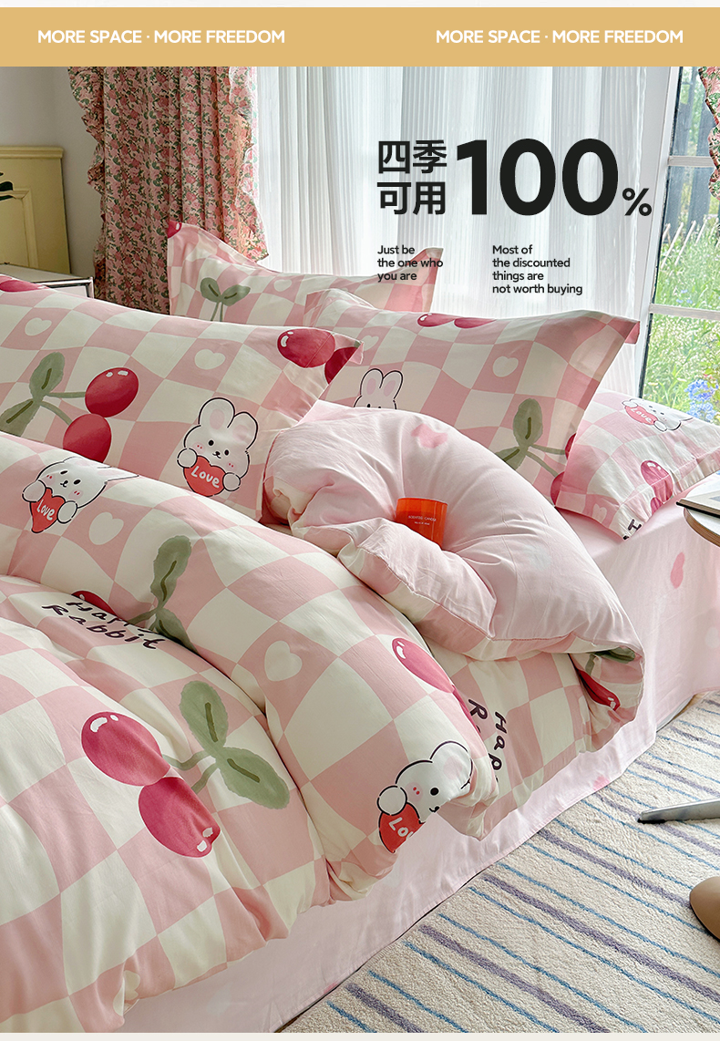 盛馨家纺 全棉喷气纯棉床笠印花简约田园风三件套四件套 樱桃兔