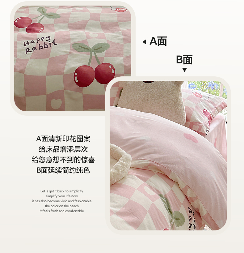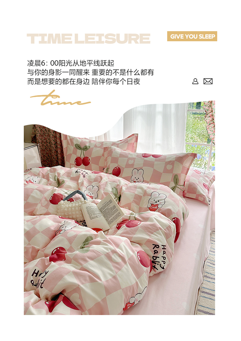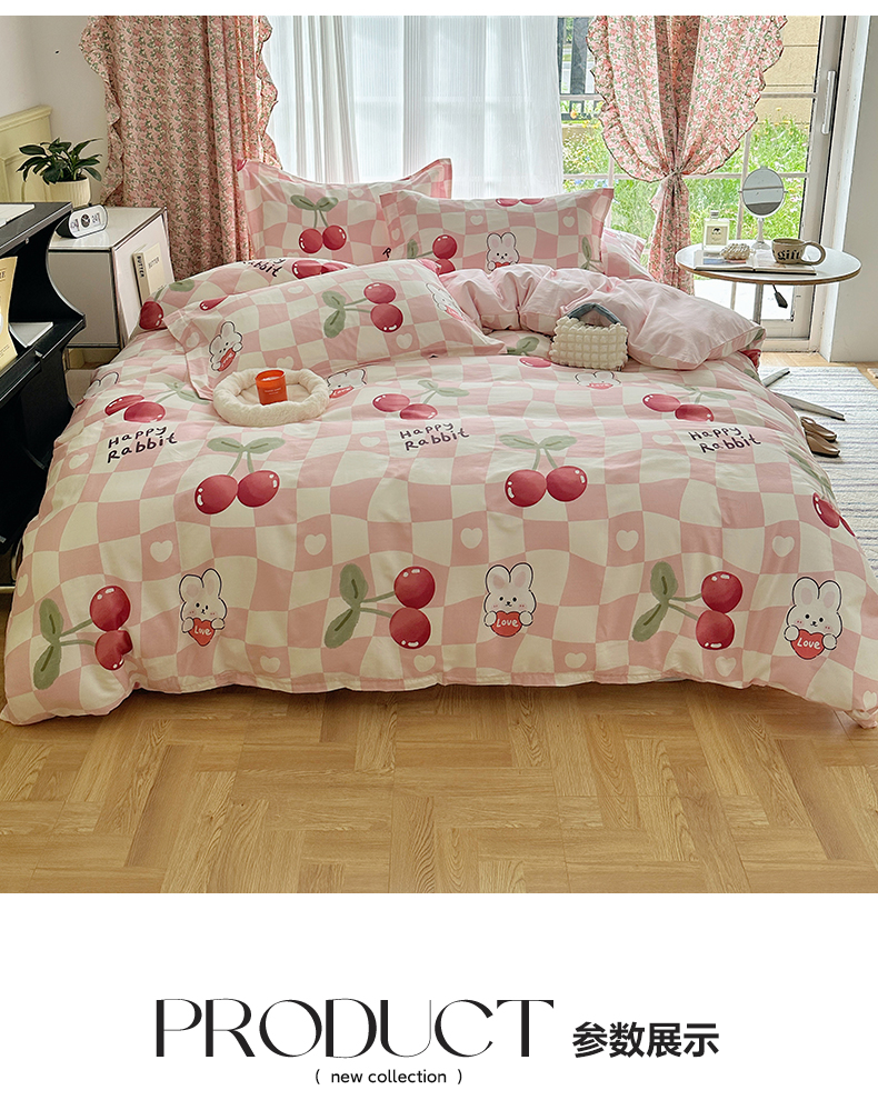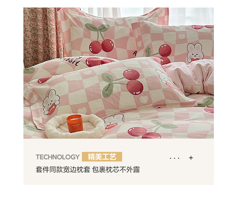 商品名称:盛馨家纺 全棉喷气纯棉床笠印花简约田园风三件套四件套 樱桃兔