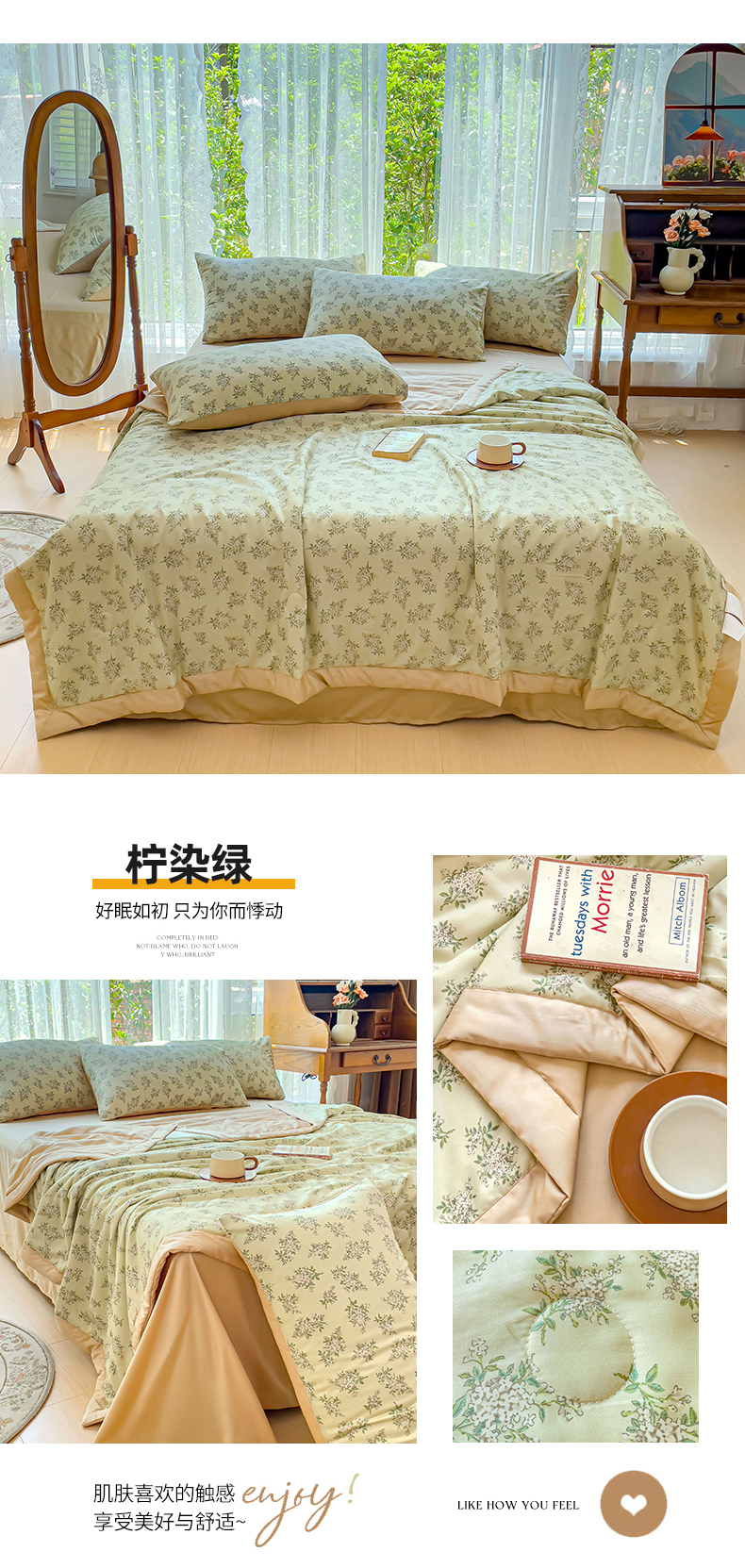 千朵 2023新款冰激凌莱赛尔纤维系列夏被四件套 柠染绿