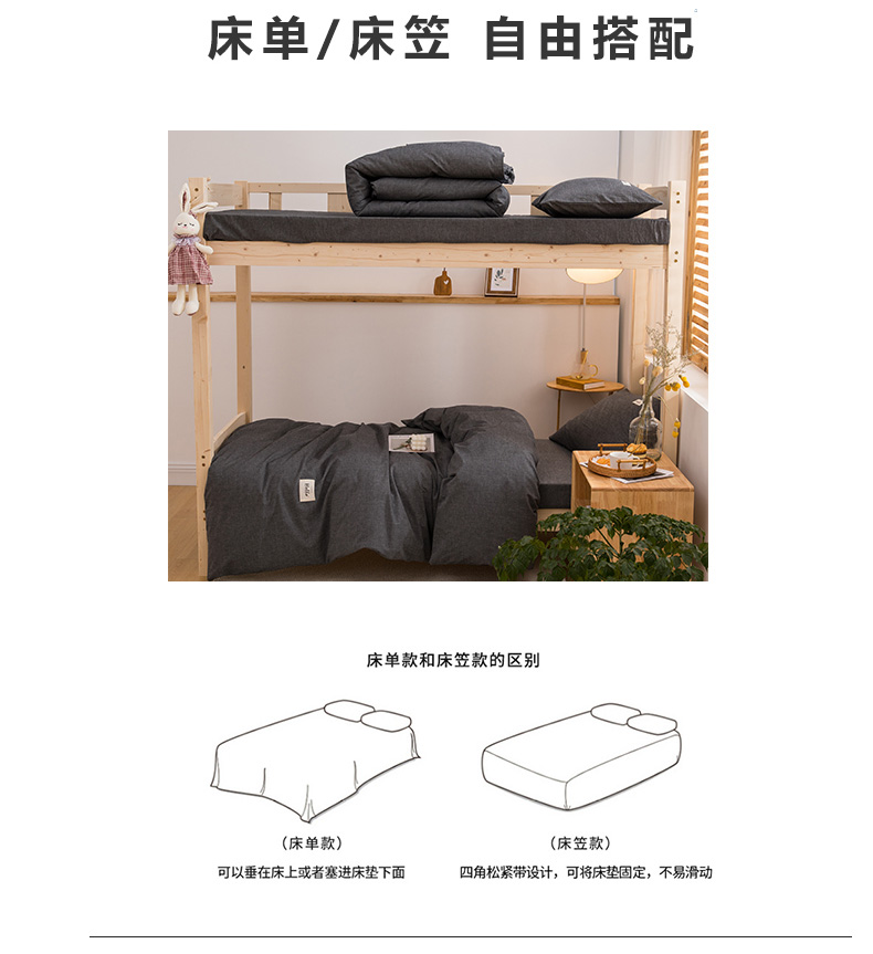 当前位置: 91家纺网 > 商品网购 > 床品套件 > 四件套 > 全棉普通四件套 > 柠萌 A类全棉色织水洗棉简约条纹格子学生季宿舍上下铺三件套 深灰