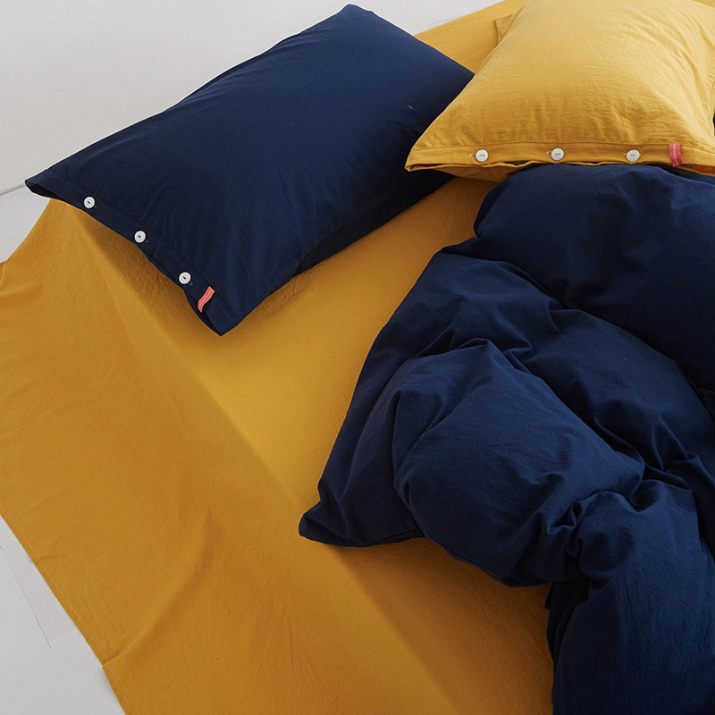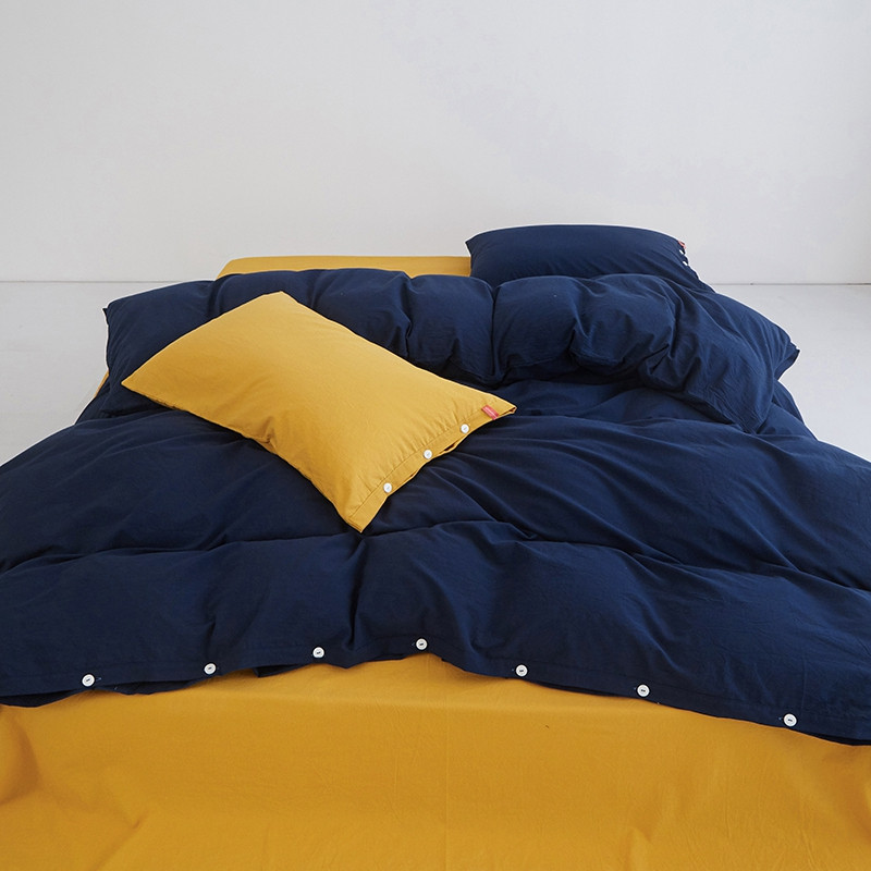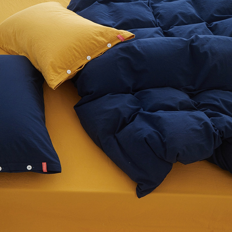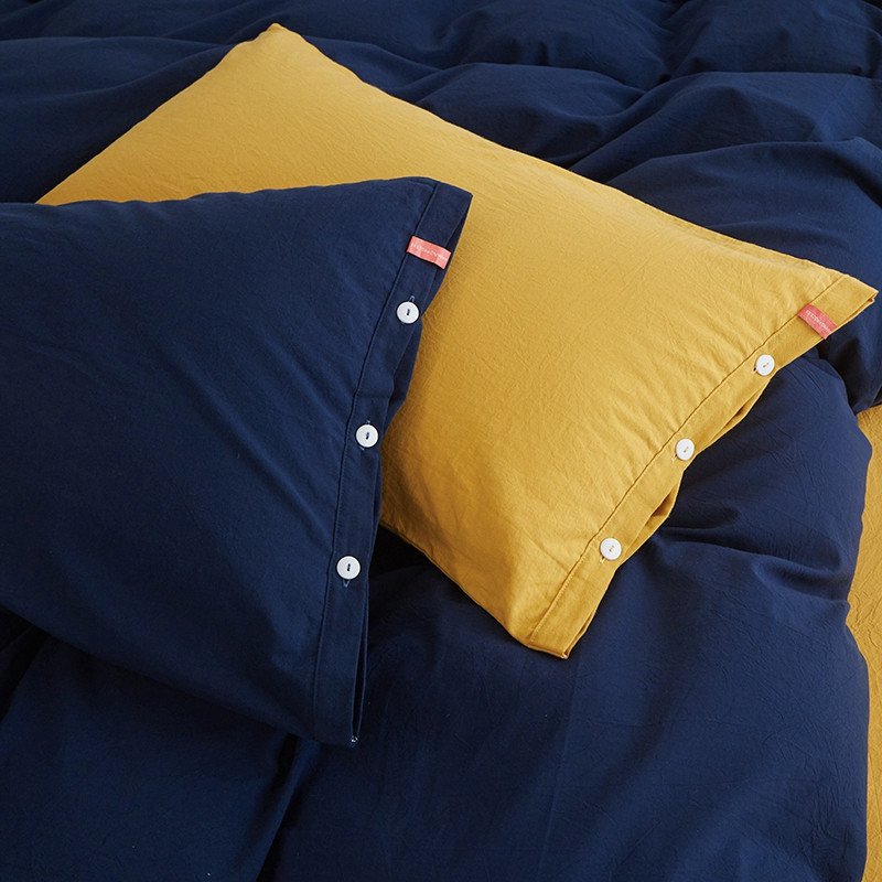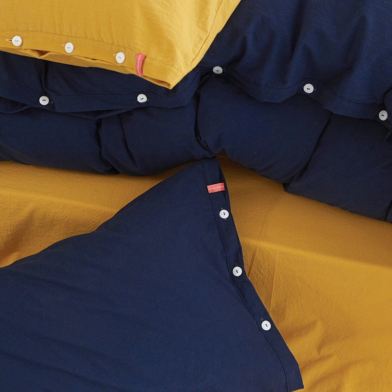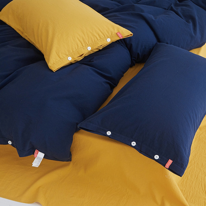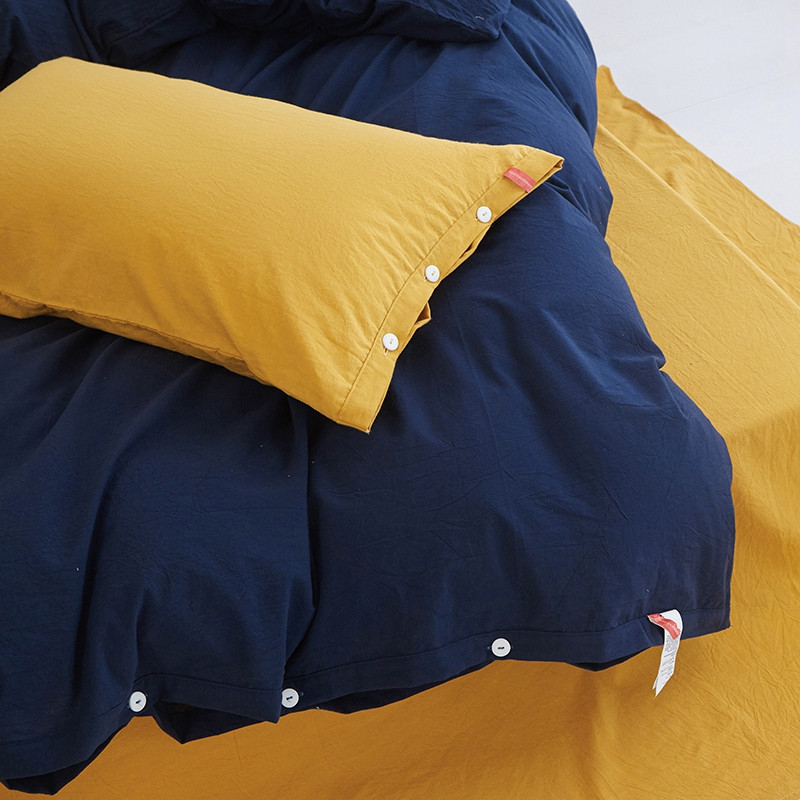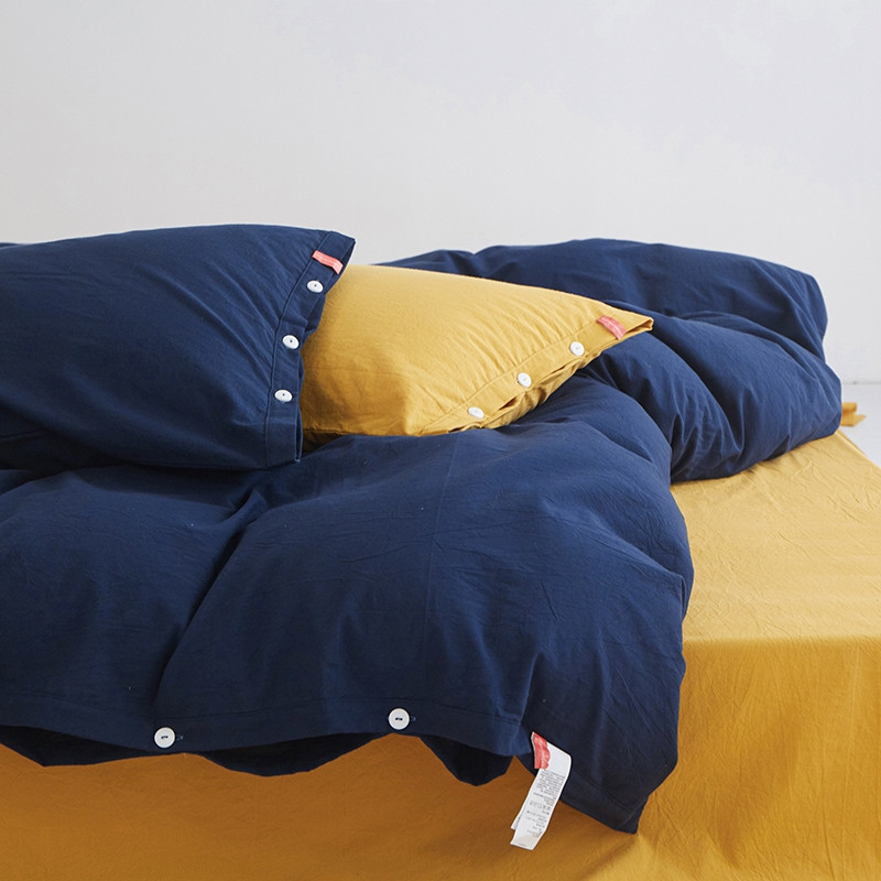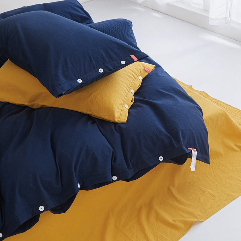 当前位置: 91家纺网 > 商品网购 > 床品套件 > 四件套 > 水洗棉四件套 > 安莱生活水洗棉全棉色经色纬高支高密纽扣款工艺混搭拼色四件套(系列二) 藏青+姜黄(藏青姜黄)
