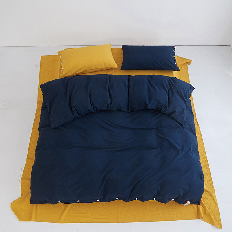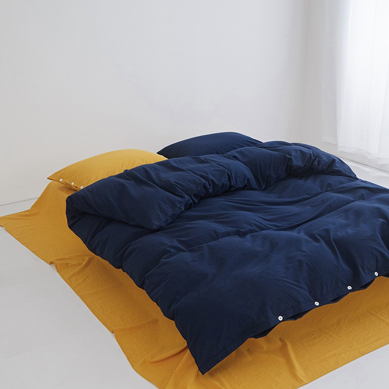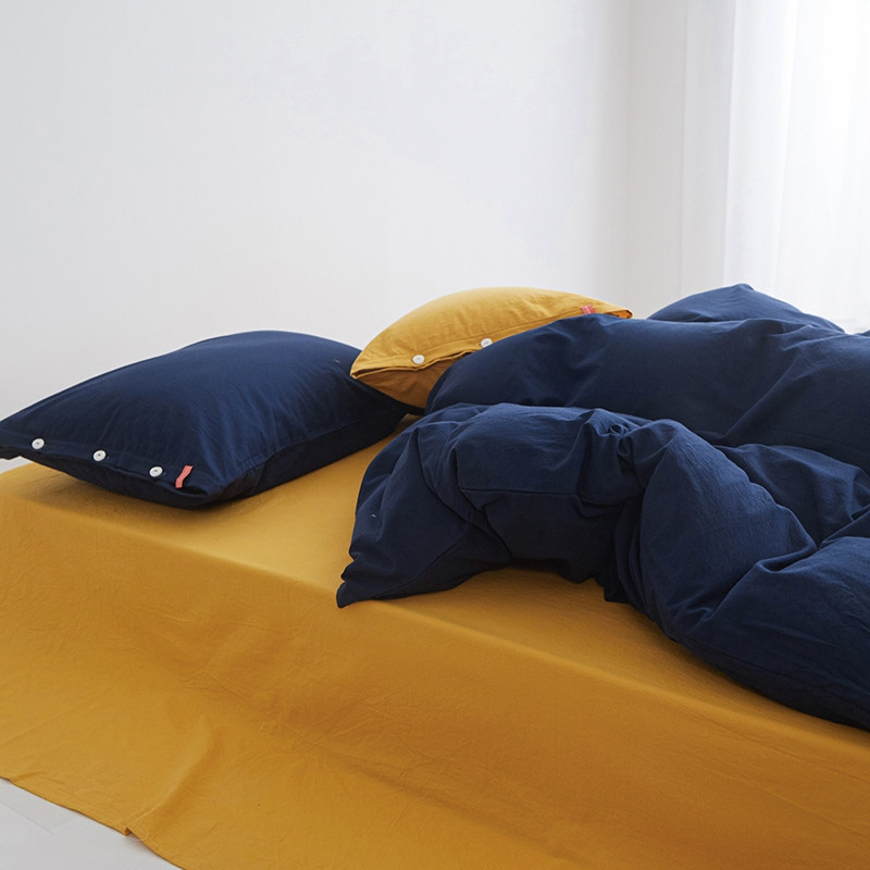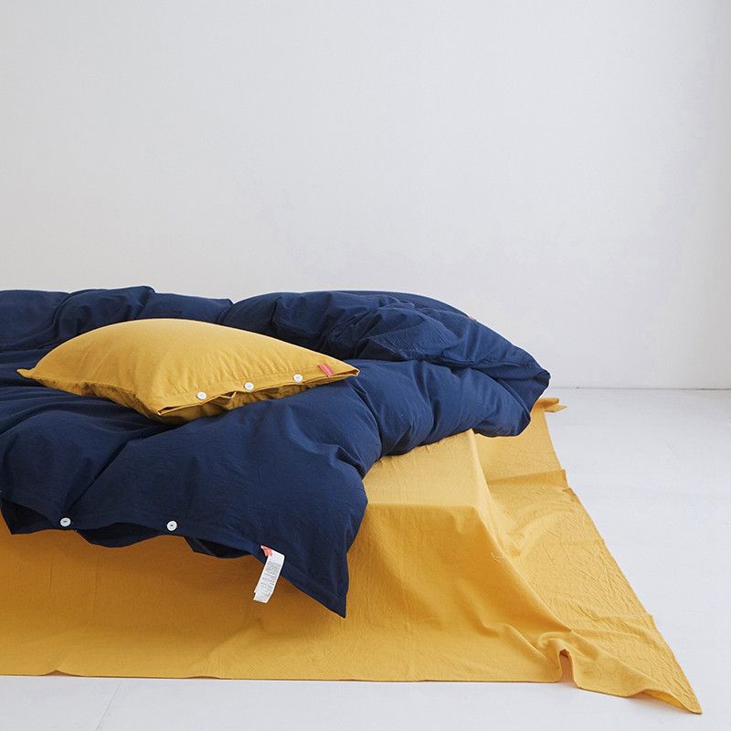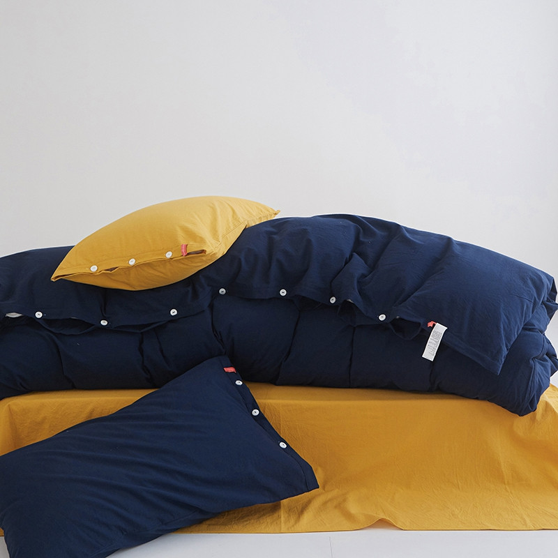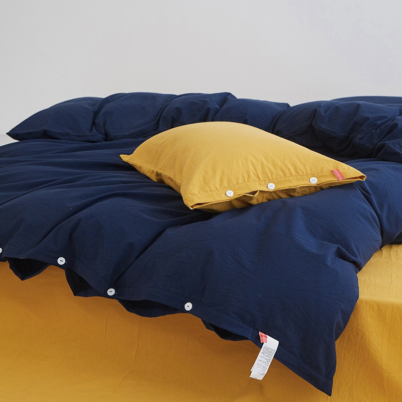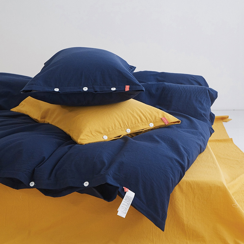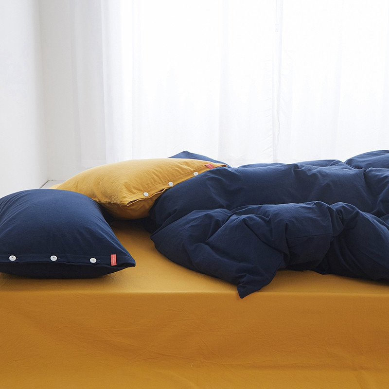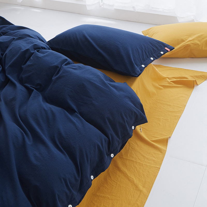 当前位置: 91家纺网 > 商品网购 > 床品套件 > 四件套 > 水洗棉四件套 > 安莱生活水洗棉全棉色经色纬高支高密纽扣款工艺混搭拼色四件套(系列二) 藏青+姜黄(藏青姜黄)