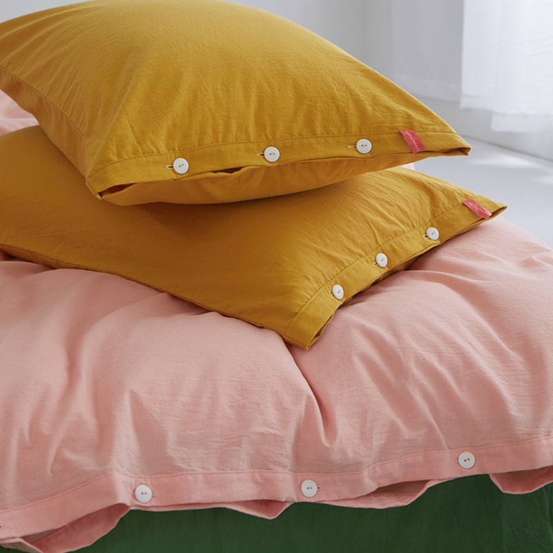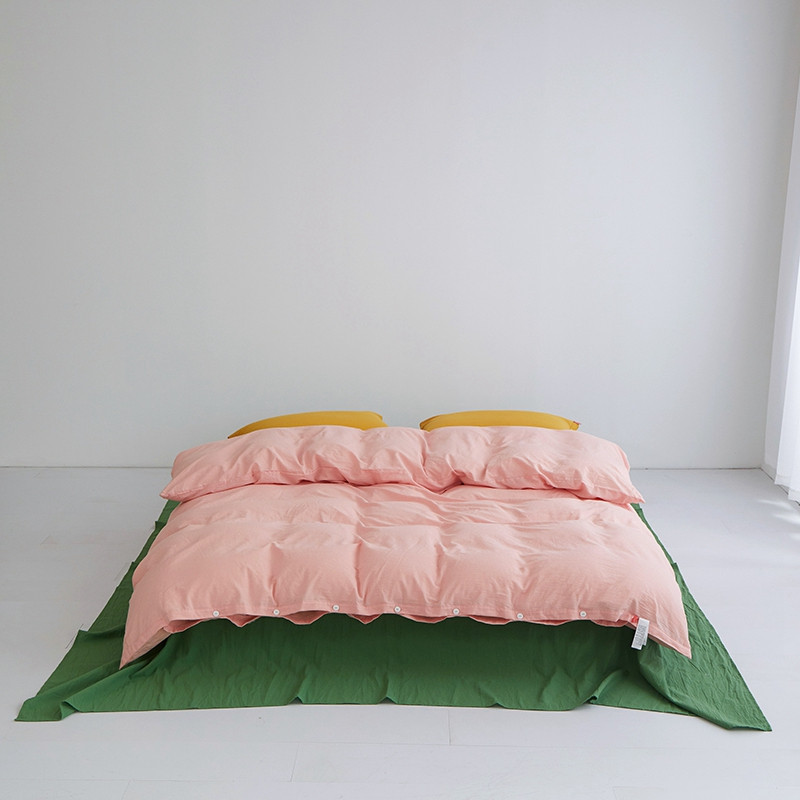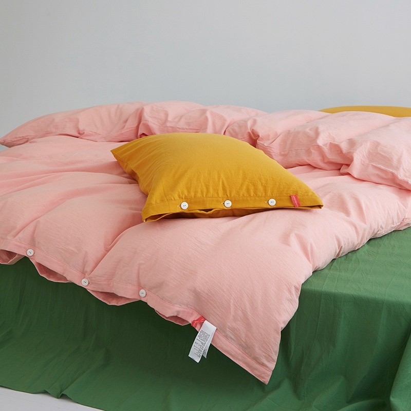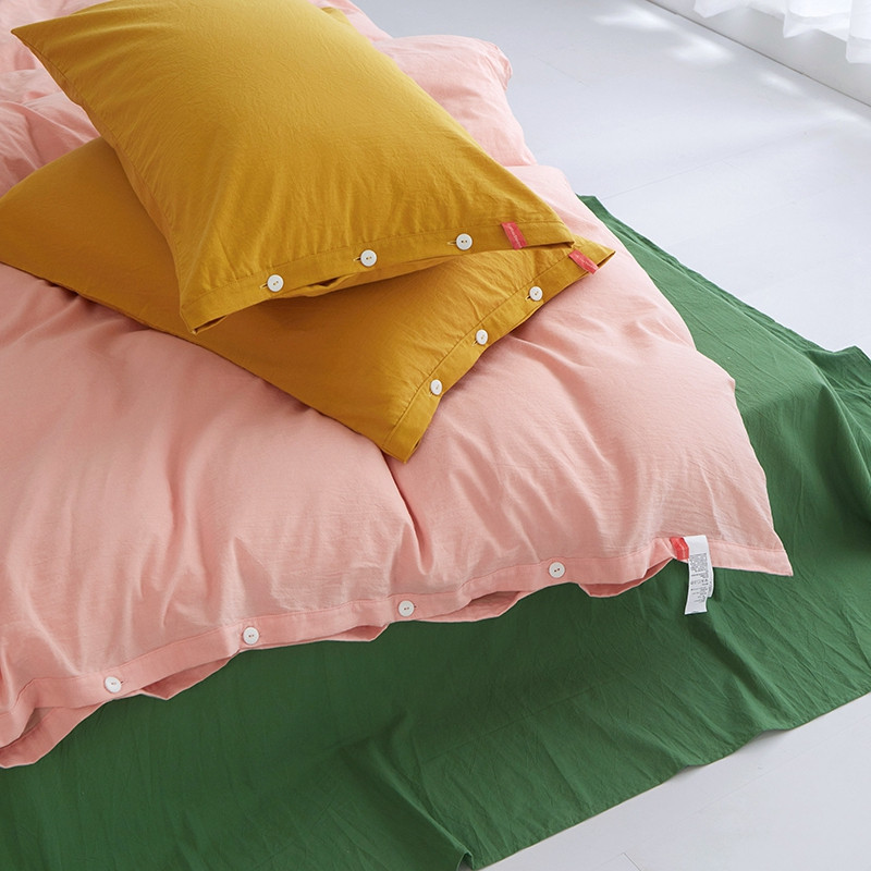 当前位置: 91家纺网 > 商品网购 > 床品套件 > 四件套 > 水洗棉四件套 > 水洗棉全棉纽扣款工艺混搭拼色四件套(系列二) 嫩粉+军绿(姜黄姜黄)