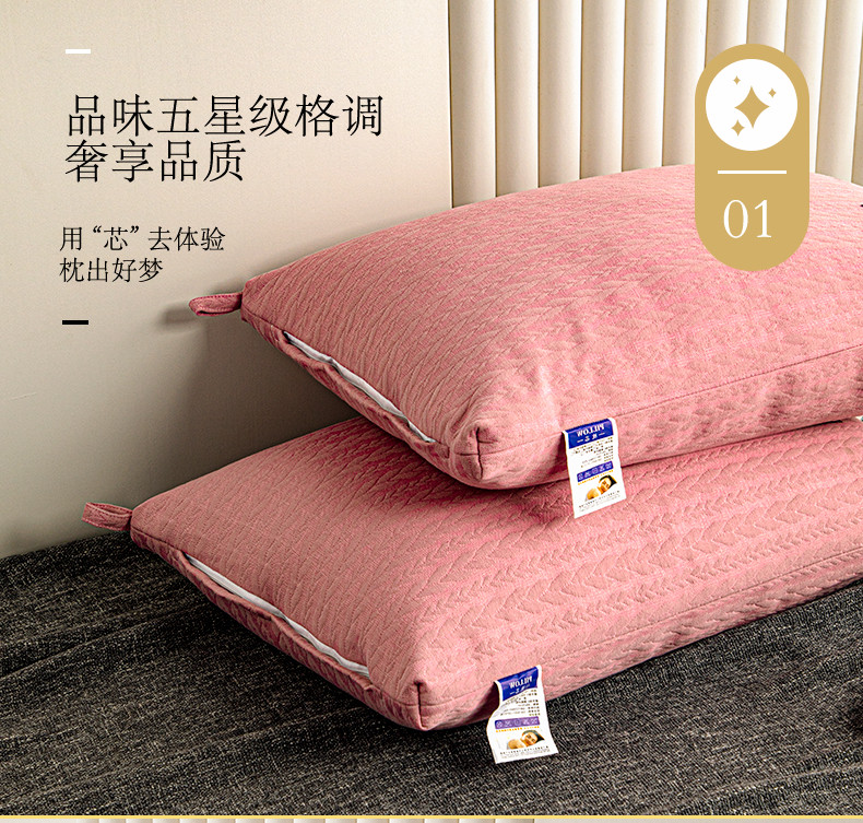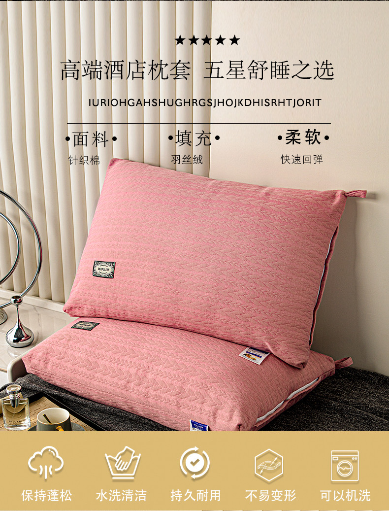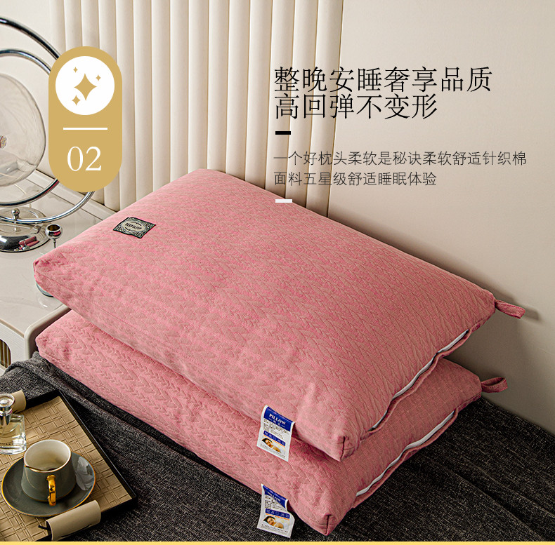 拾光枕芯 2023新款贴标针织麻花亲肤羽丝棉高档枕芯 粉色