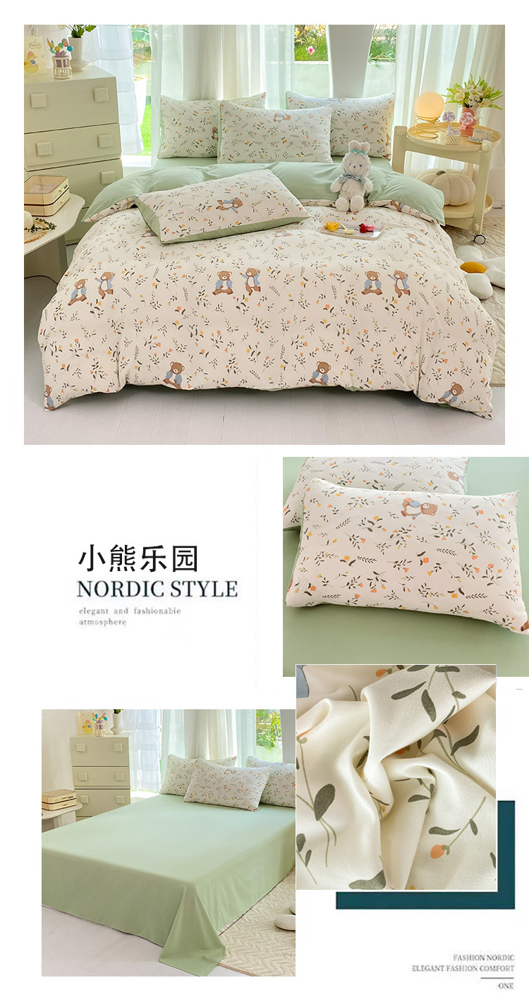 (总)慕尚家纺 2025新款全棉印花学生三件套套件,艾米熊,彩色爱心狗,铃兰花,美食派对,萌宠乐园,书生猫咪,桃心狗,汪可爱,旺旺,樱桃