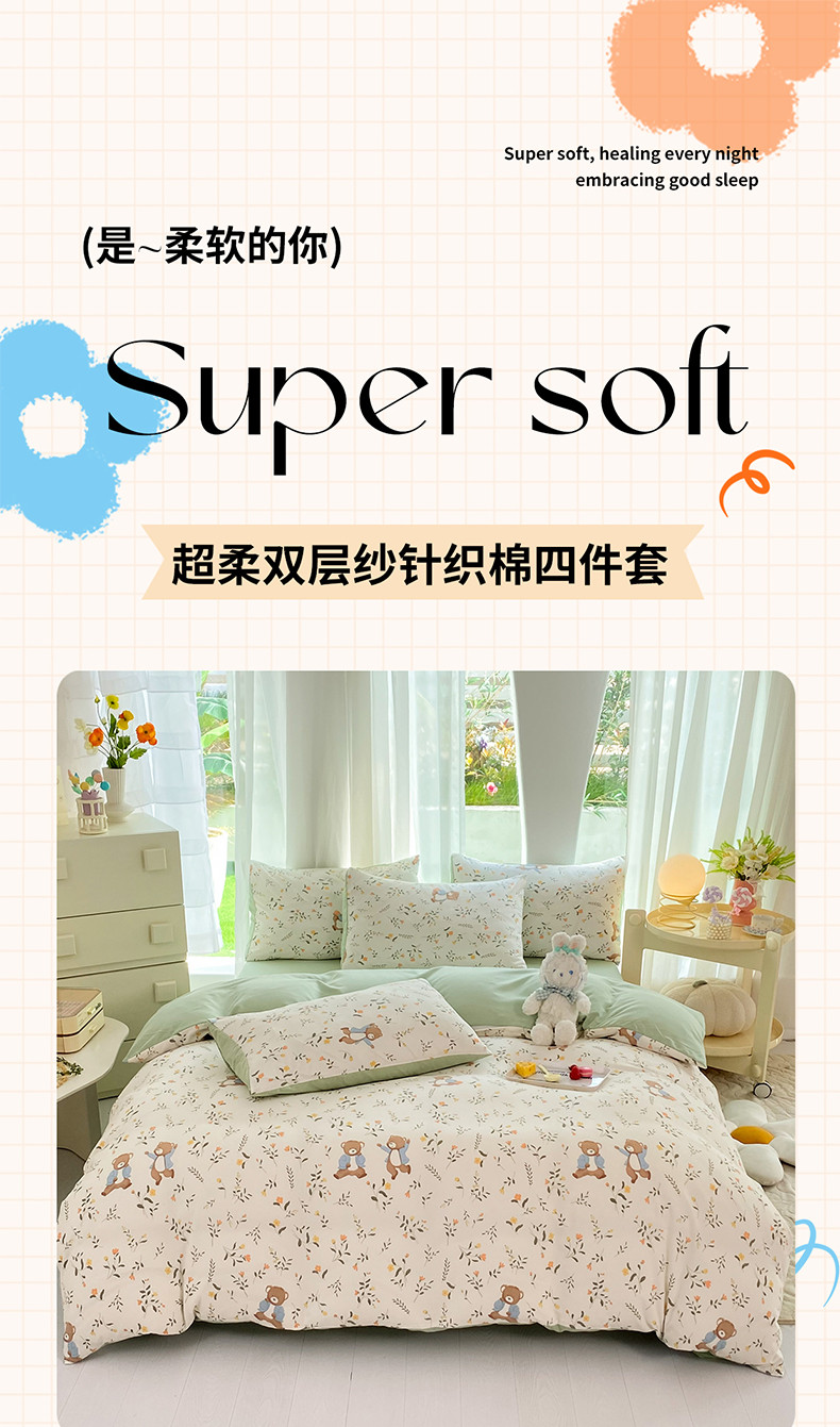 当前位置: 91家纺网 > 商品网购 > 床品套件 > 四件套 > 水洗棉四件套 > 慕尚家纺 2025新款A类超柔双层水洗四件套 小熊乐园