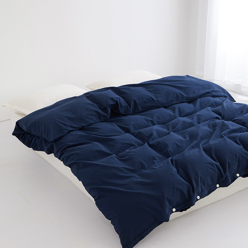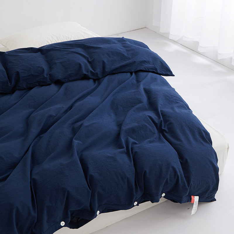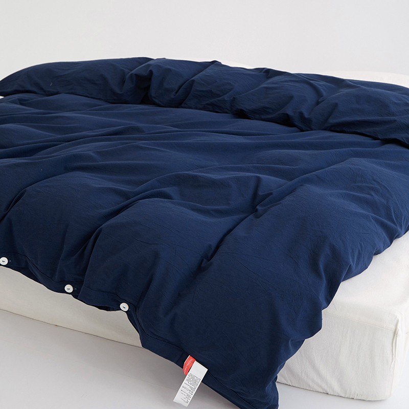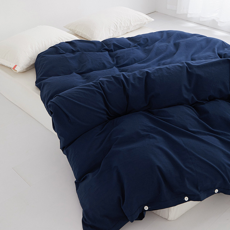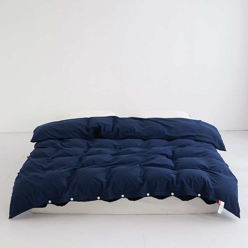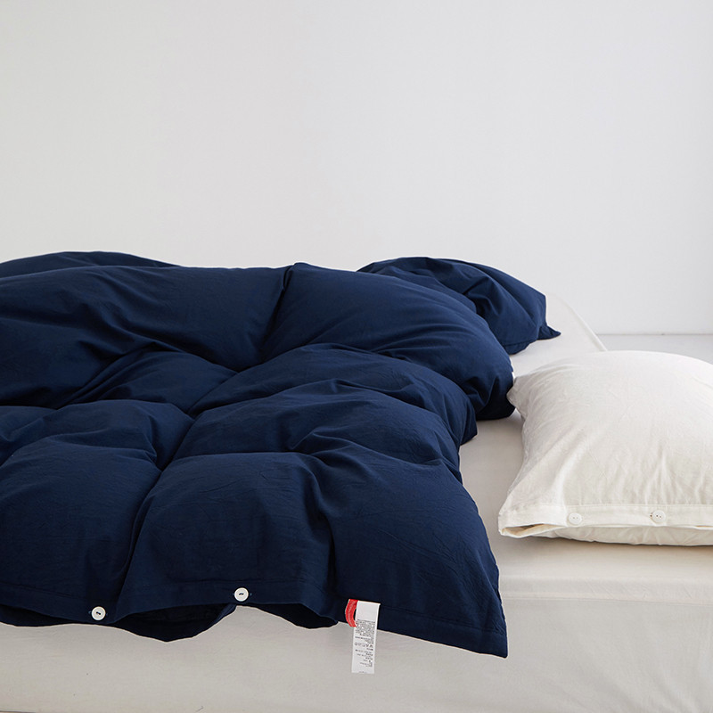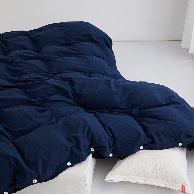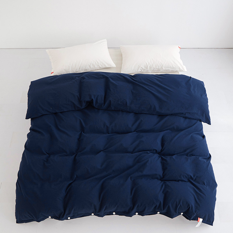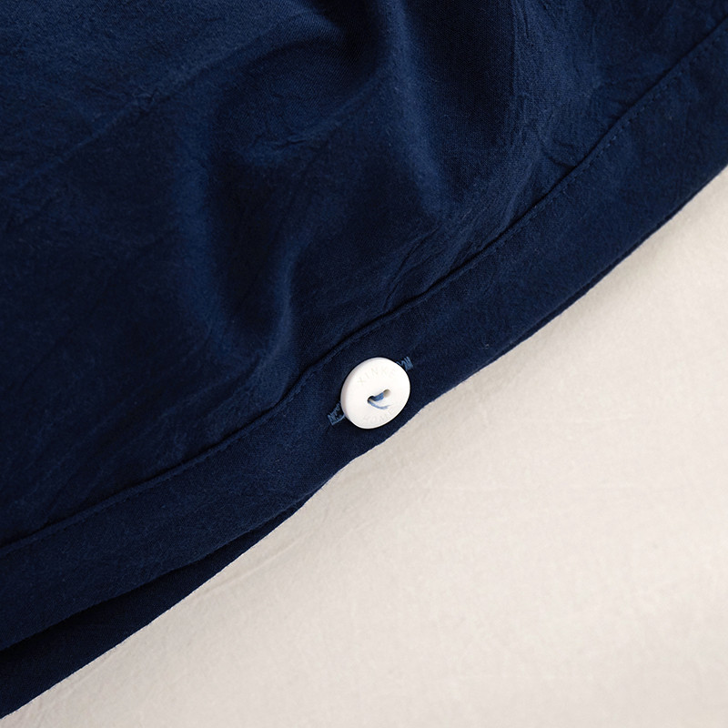 商品名称:安莱生活 2023新款水洗棉全棉色织高支高密纽扣款工艺单品被套 藏青
