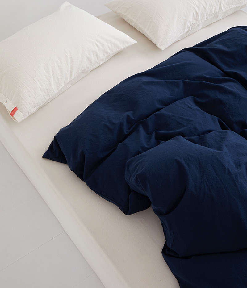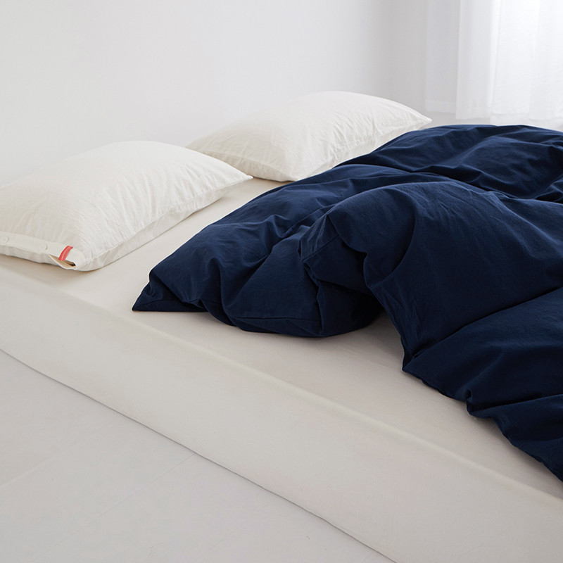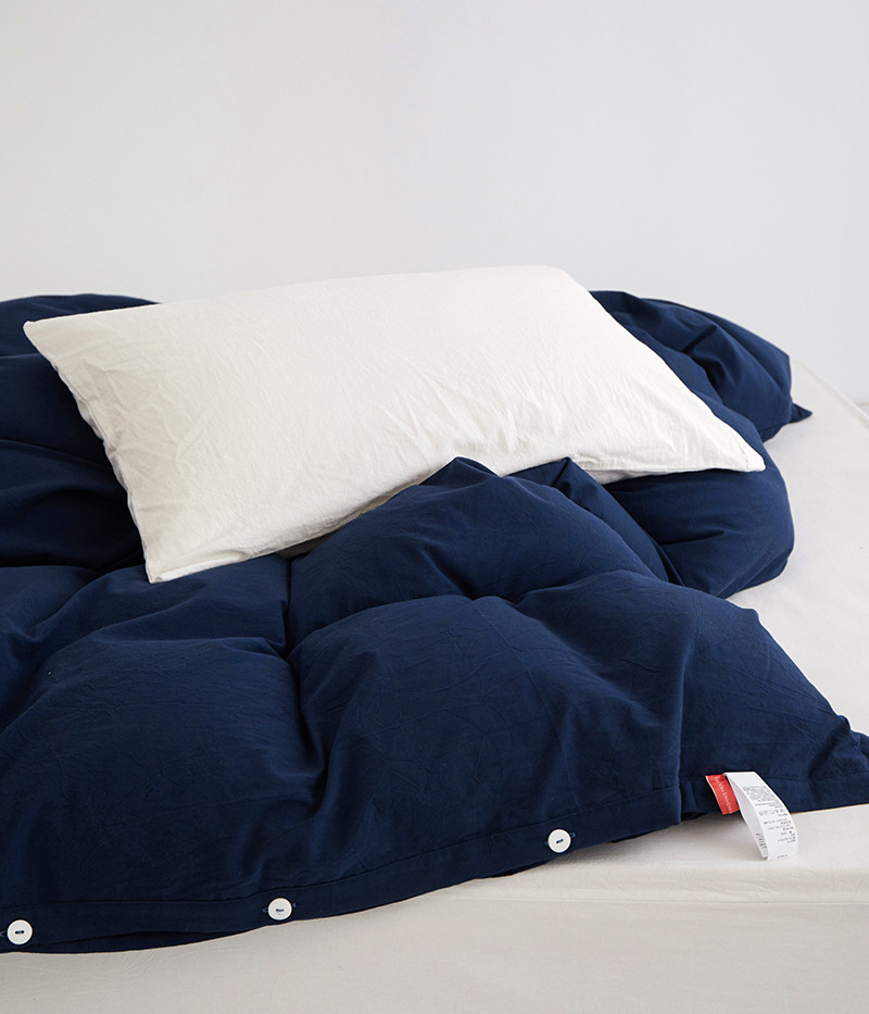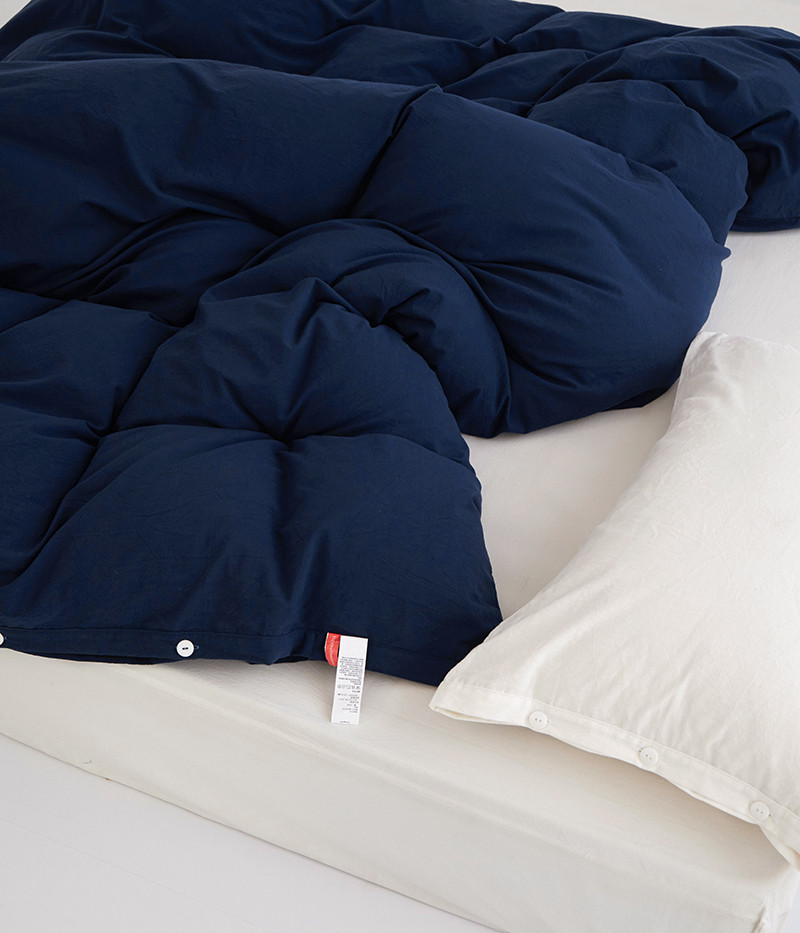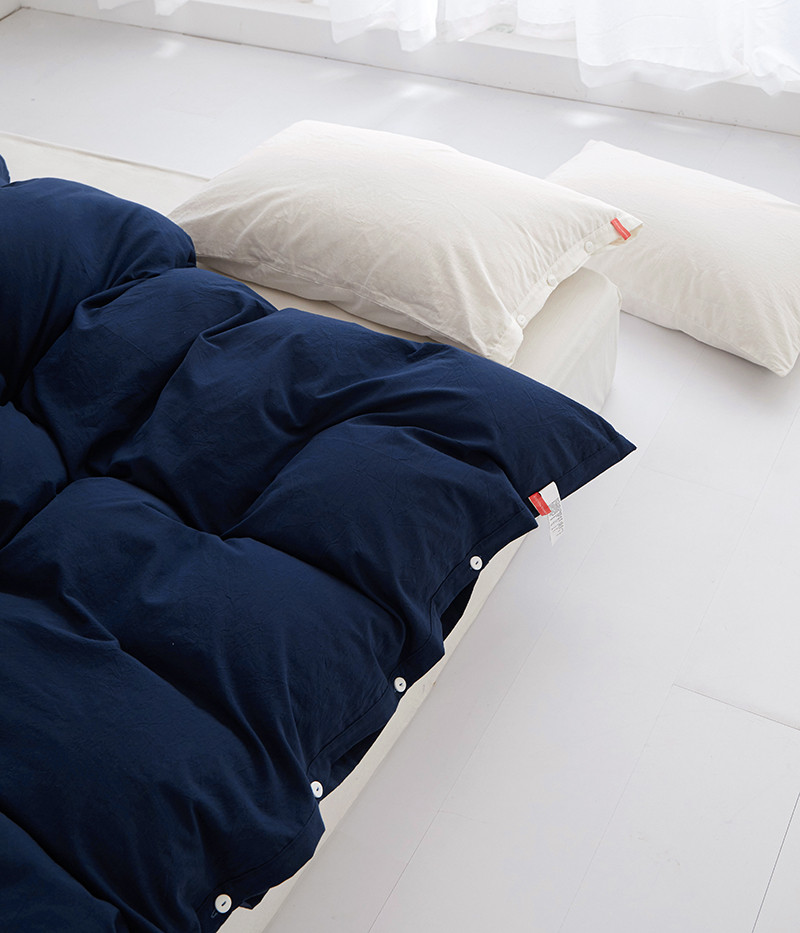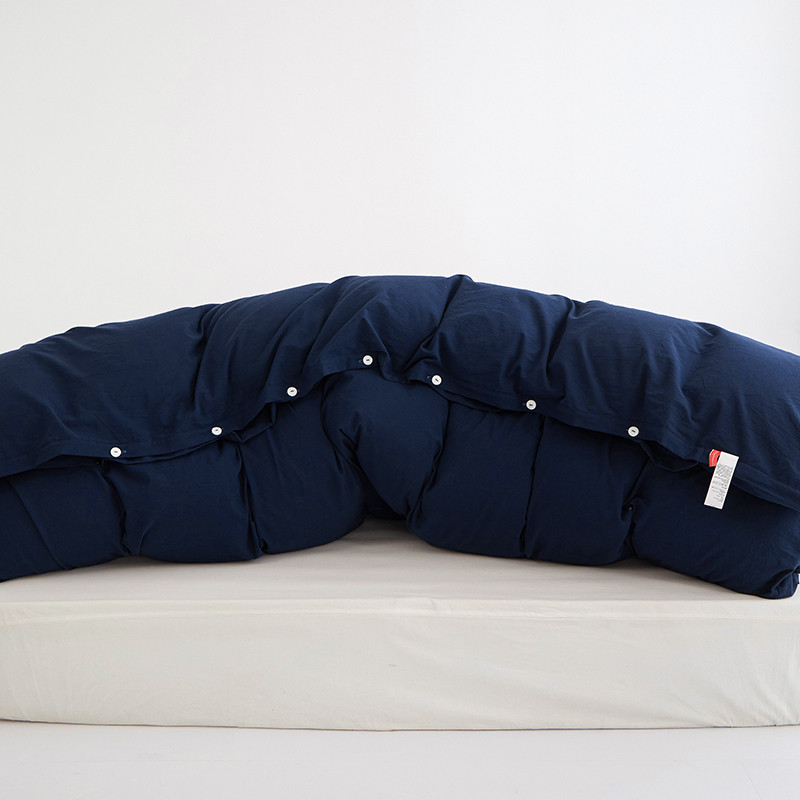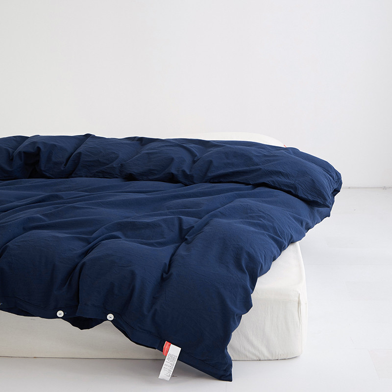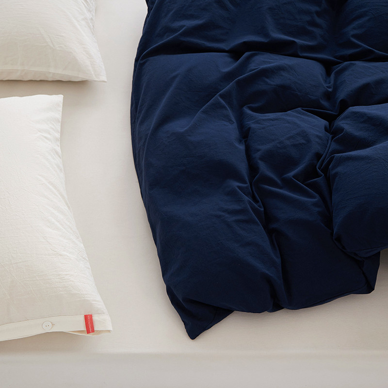 商品名称:安莱生活 2023新款水洗棉全棉色织高支高密纽扣款工艺单品被套 藏青