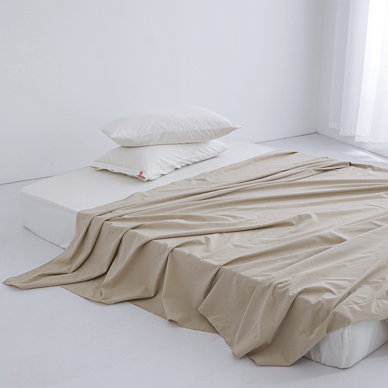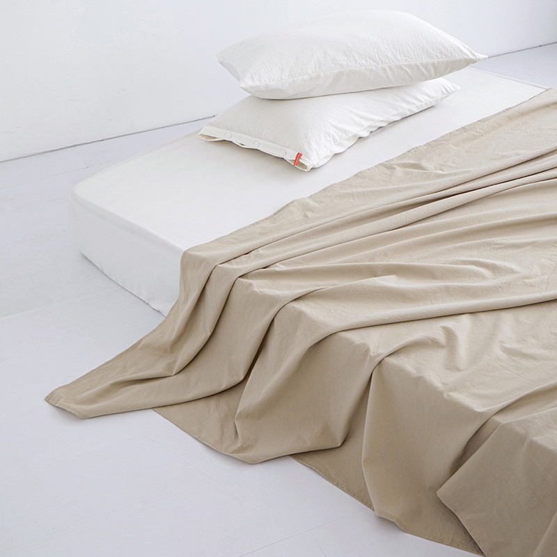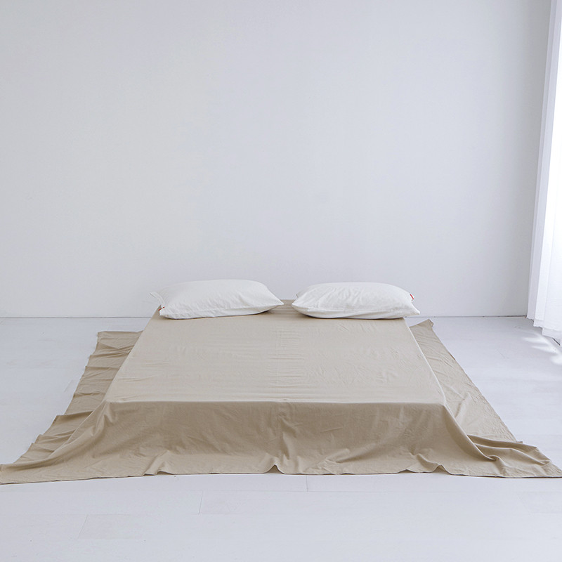 安莱生活 2023新款水洗棉全棉色织高支高密纽扣款工艺单品床单 米驼