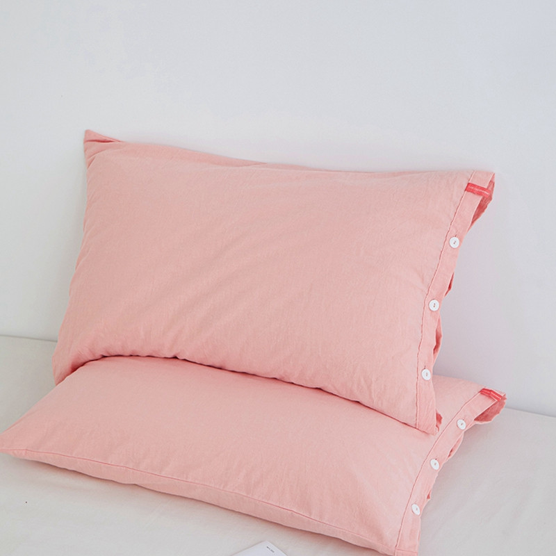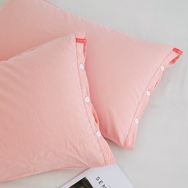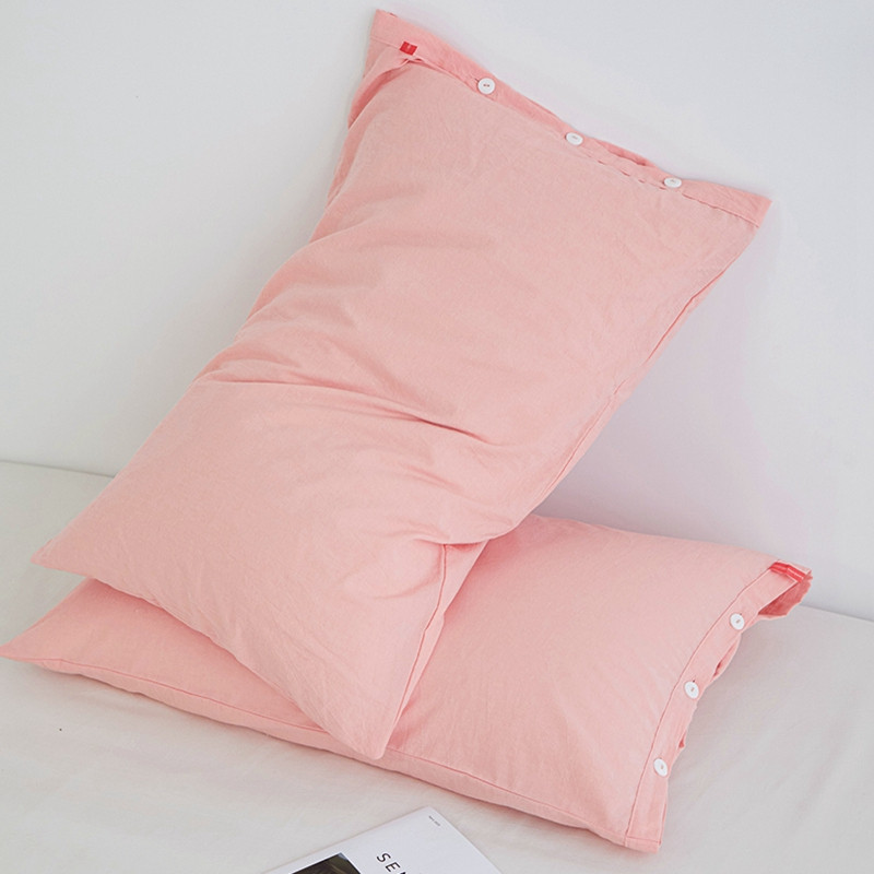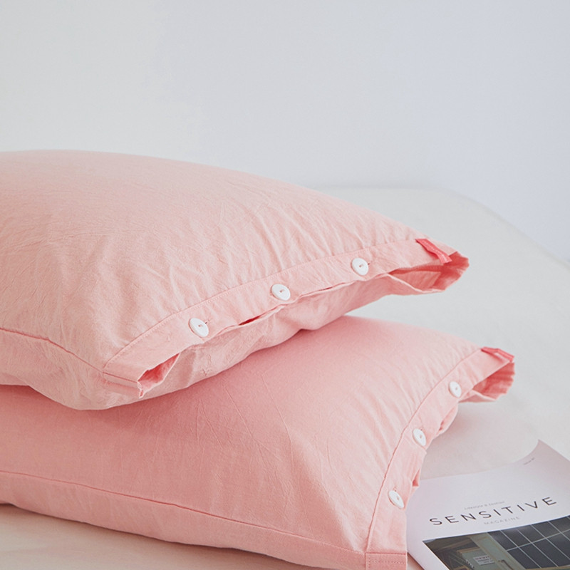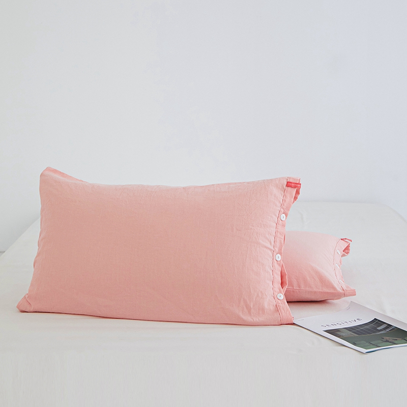 安莱生活 2023新款水洗棉全棉色织高支高密纽扣款工艺单品枕套 嫩粉