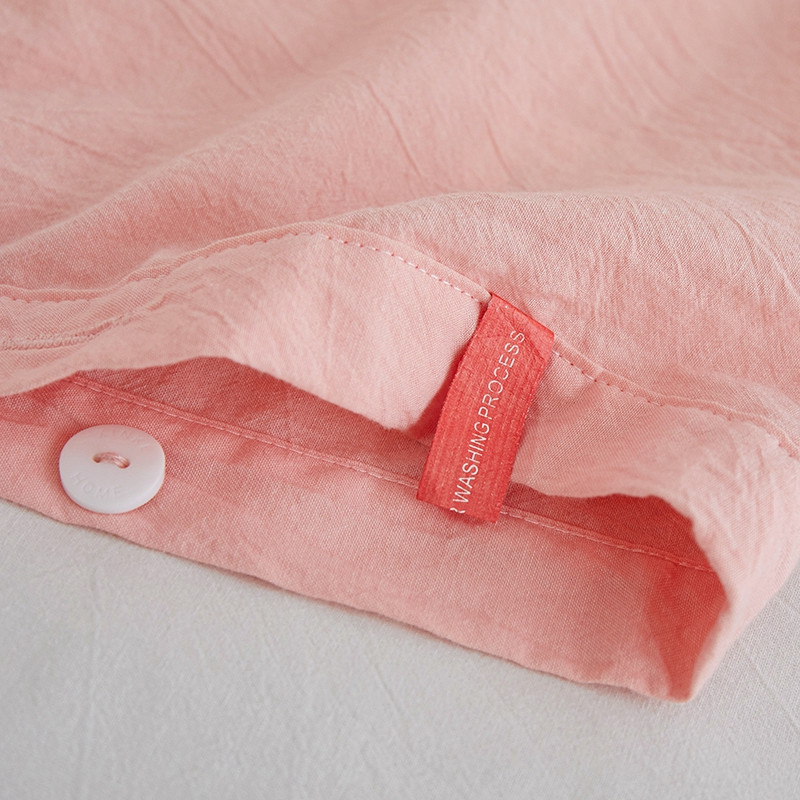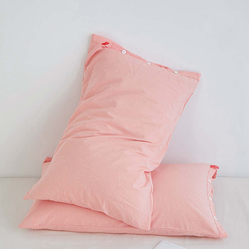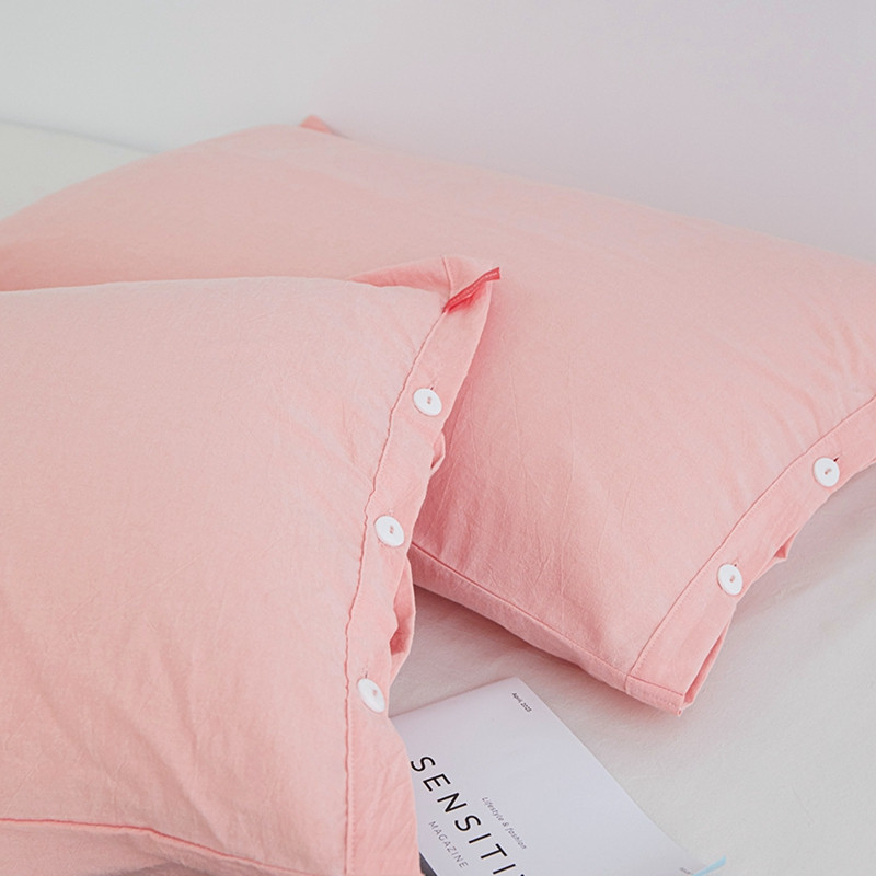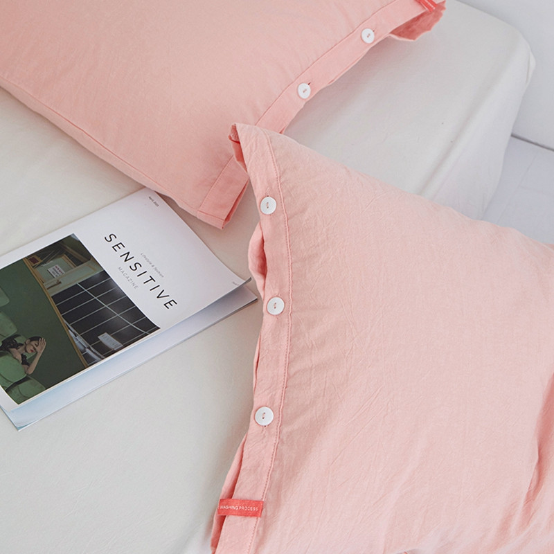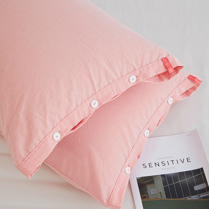 安莱生活 2023新款水洗棉全棉色织高支高密纽扣款工艺单品枕套 嫩粉
