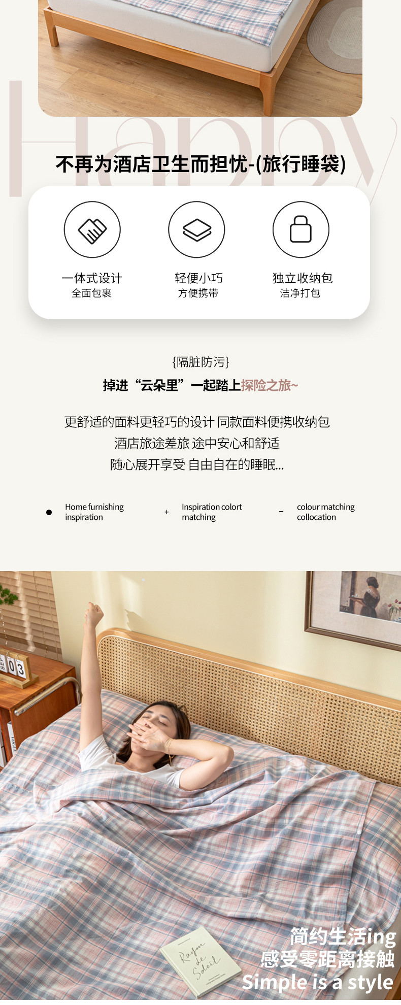 (总)格子铺 2023新款全棉水洗棉隔脏睡袋旅行袋