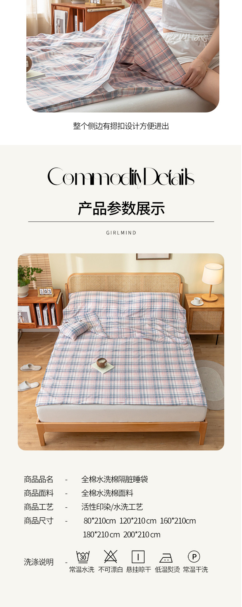 当前位置: 91家纺网 > 商品网购 > 床上用品 > 睡袋 > (总)格子铺 2023新款全棉水洗棉隔脏睡袋旅行袋