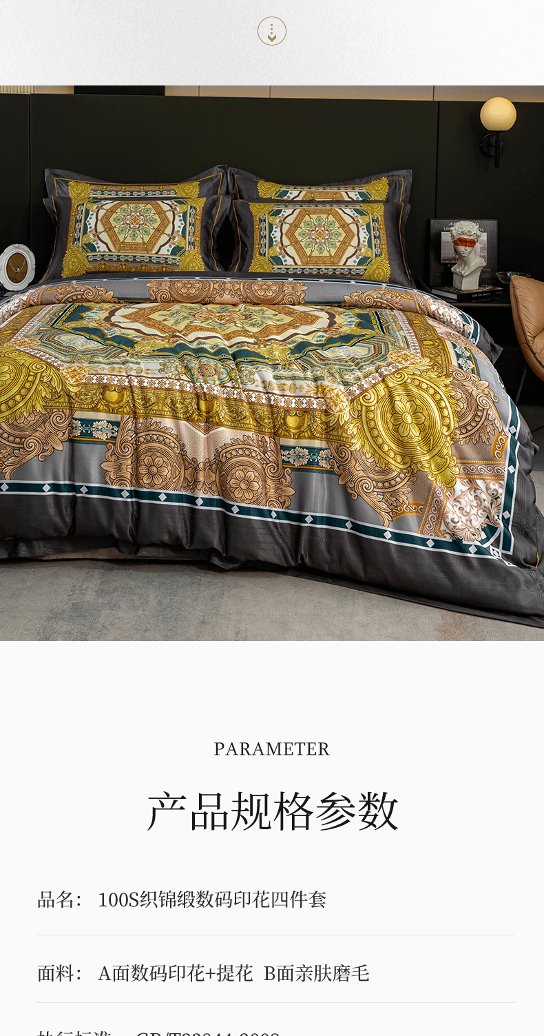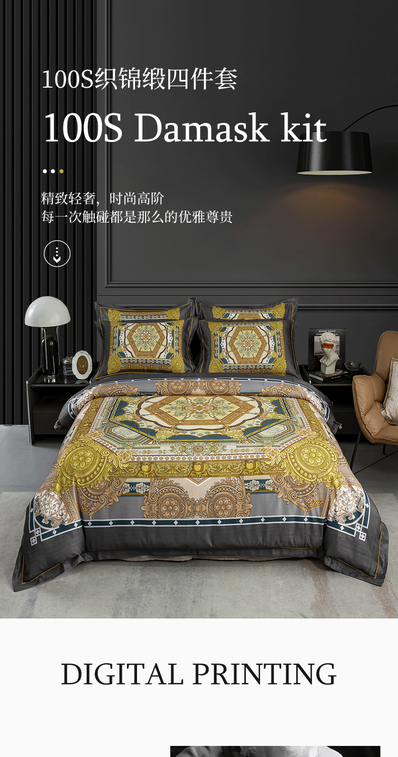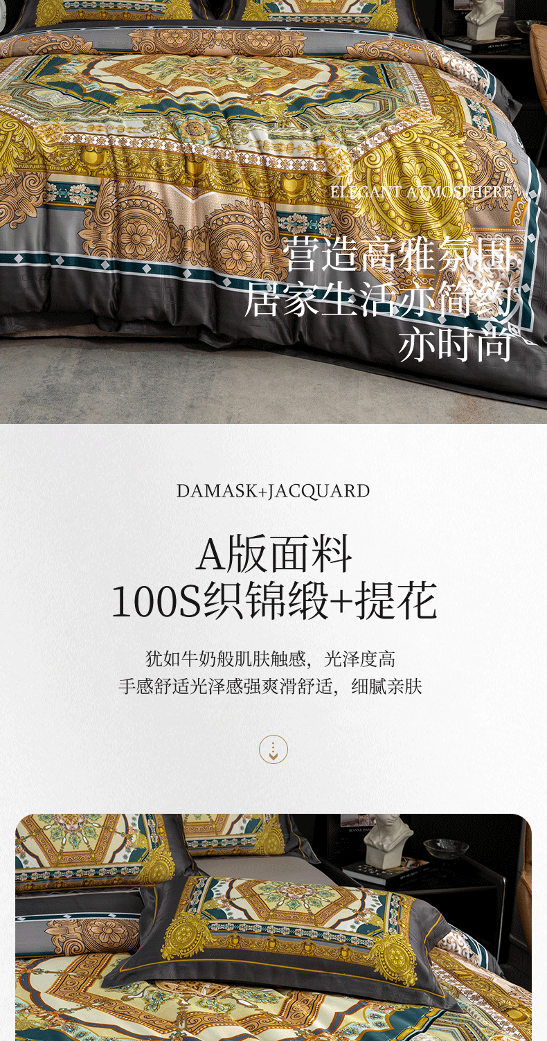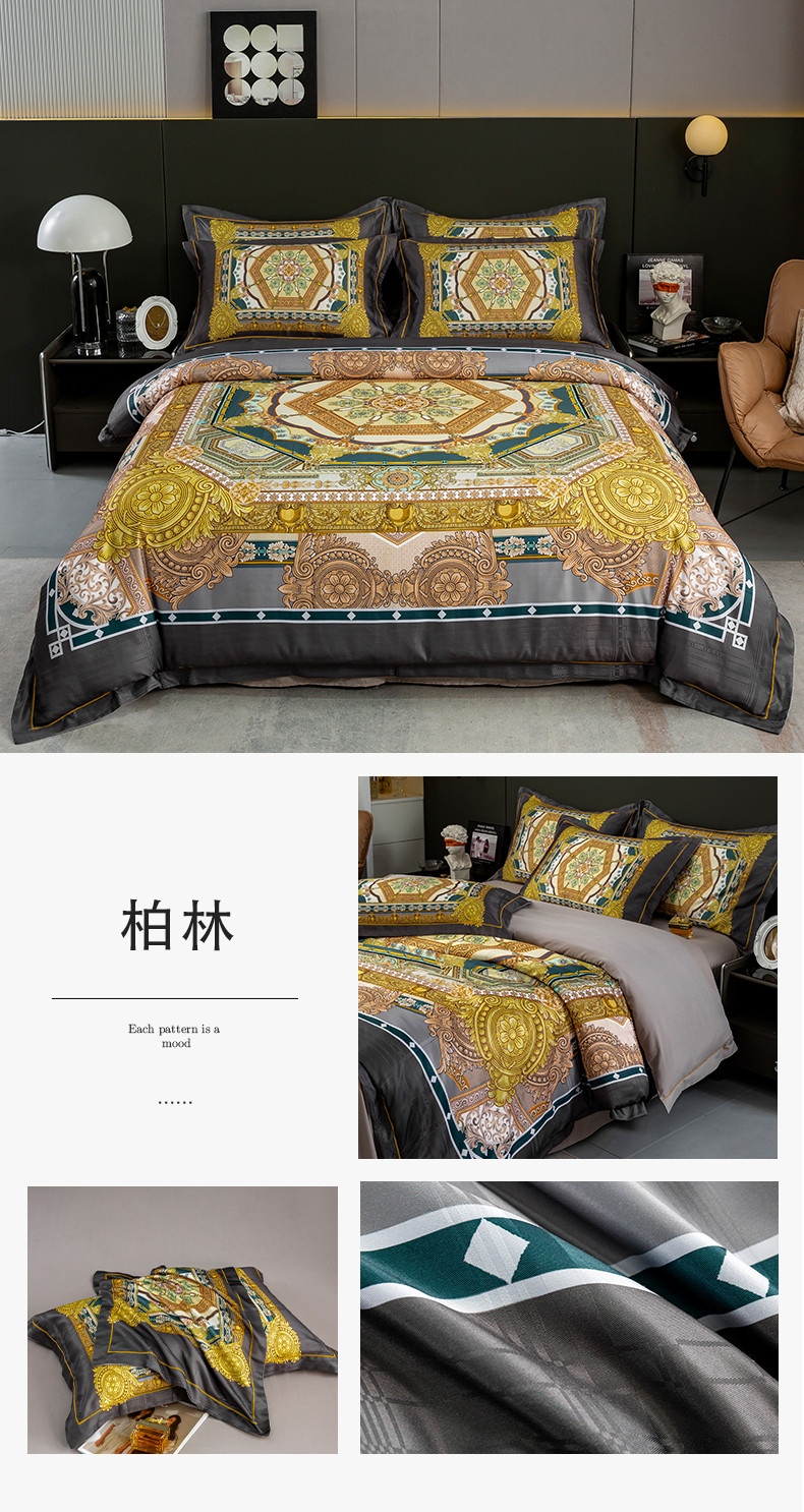 商品名称:莱欧纳 2025新款100s织锦缎大版提花四件套 柏林