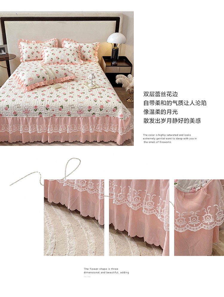 商品名称:A类水洗棉麻双层纱床盖款夏被四件套夹棉床裙蕾丝花边纯棉全棉夏凉被套床盖