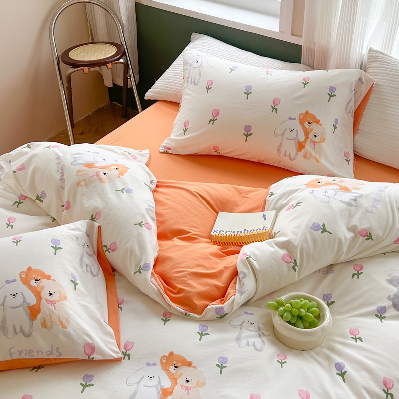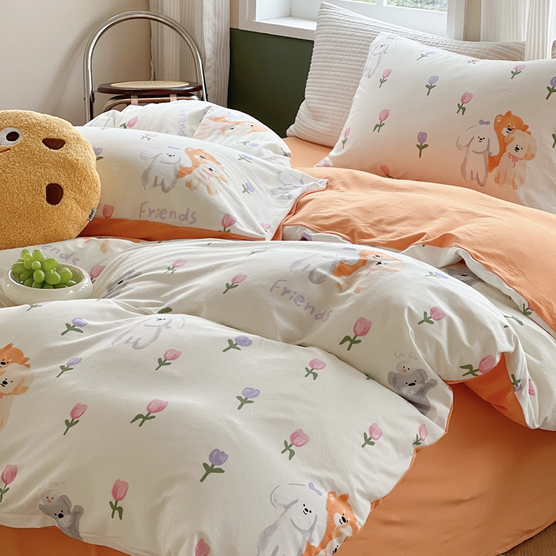 商品名称:柚子 2023新款全棉针织印花四件套 橘朵