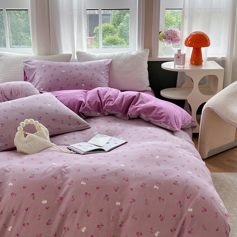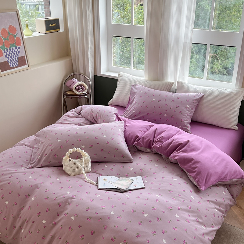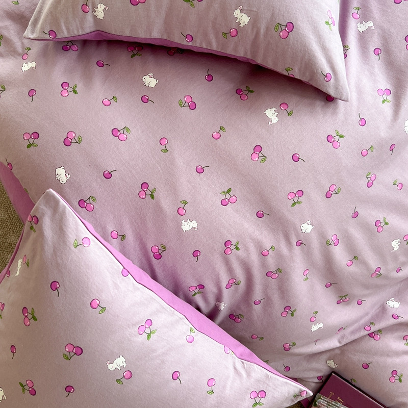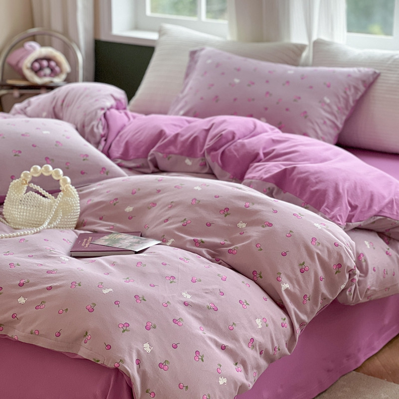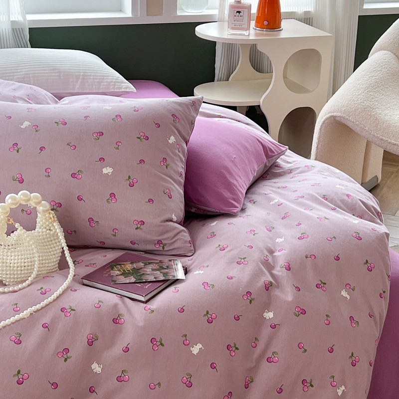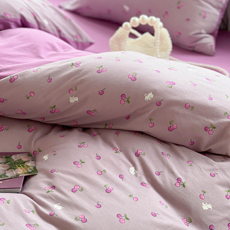 商品名称:柚子 2023新款全棉针织印花四件套 紫樱桃