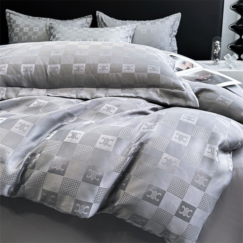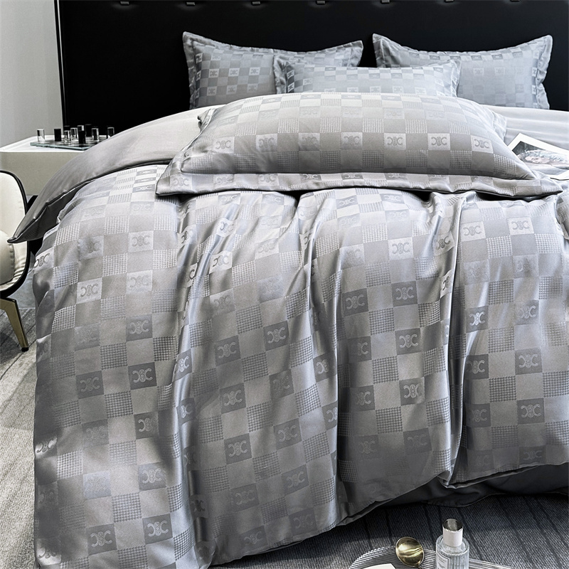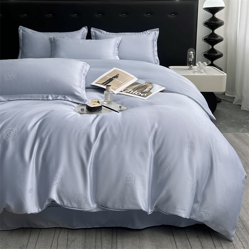 (总)宅家居 2023新款 设计款轻奢高精密贡缎提花臻品真丝四件套,迪奥-宾利蓝,迪奥-银灰,山茶花-粉玉,山茶花-蓝灰,山茶花-浅紫,香乃乃-米白