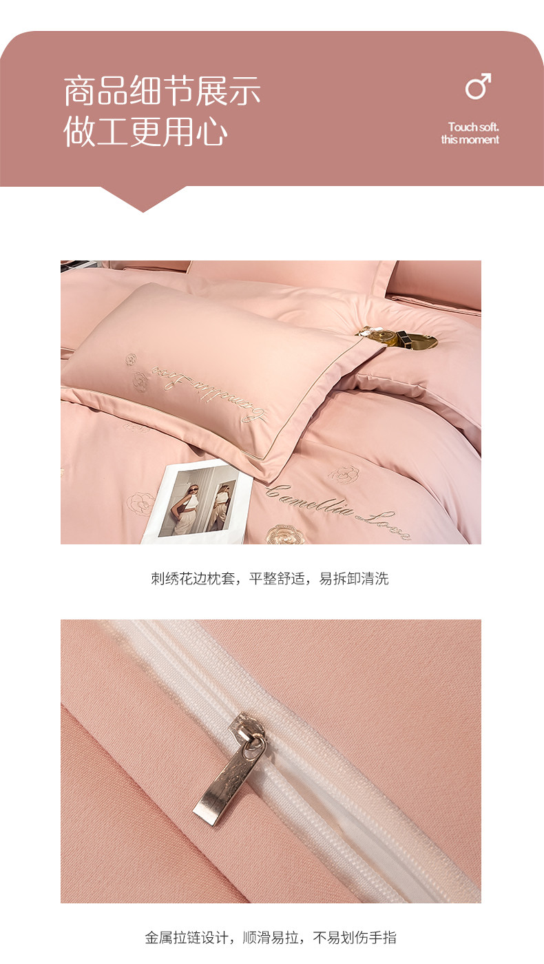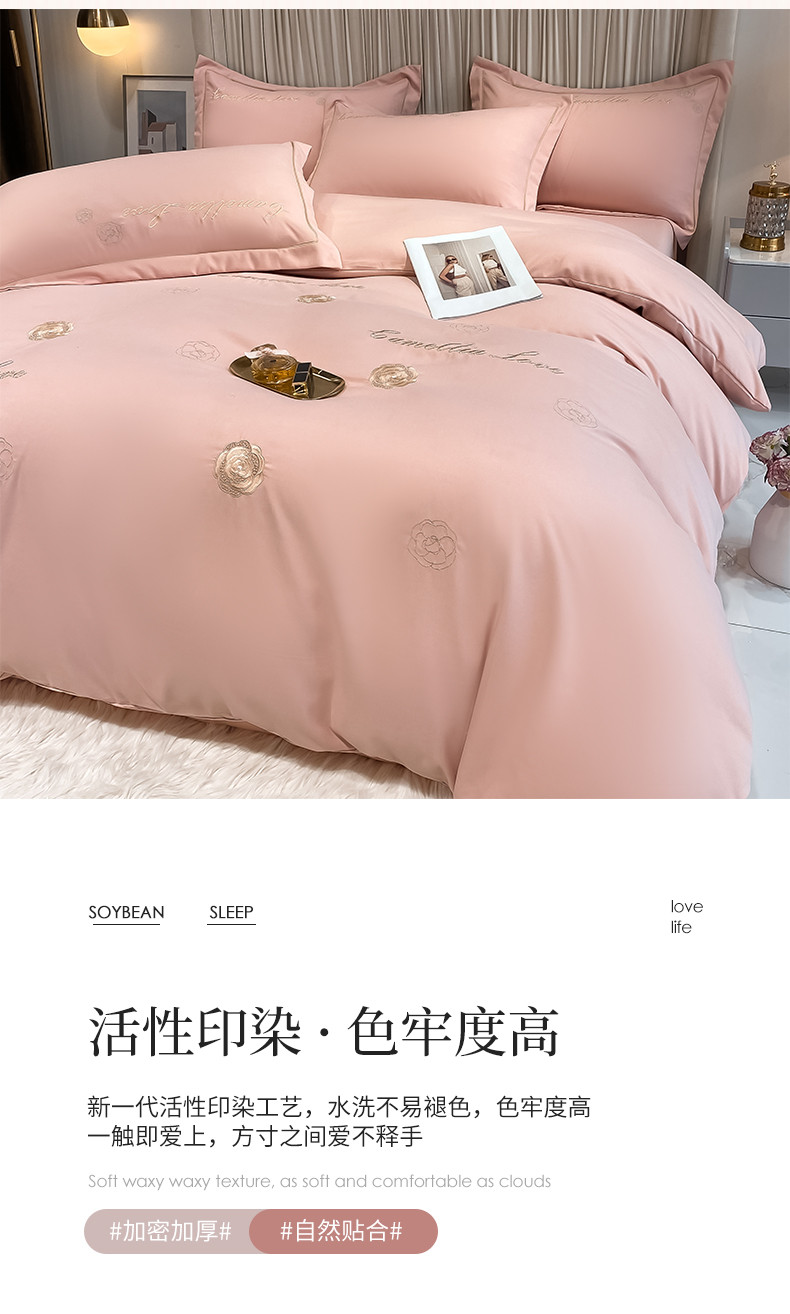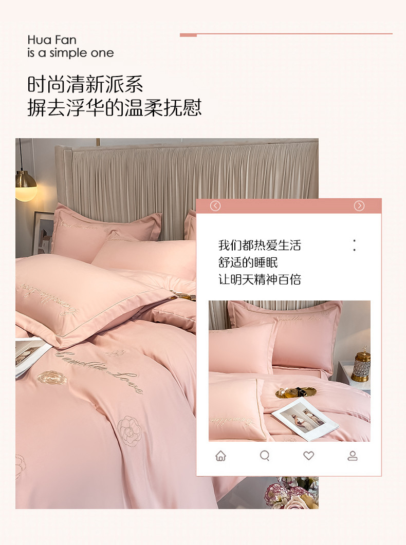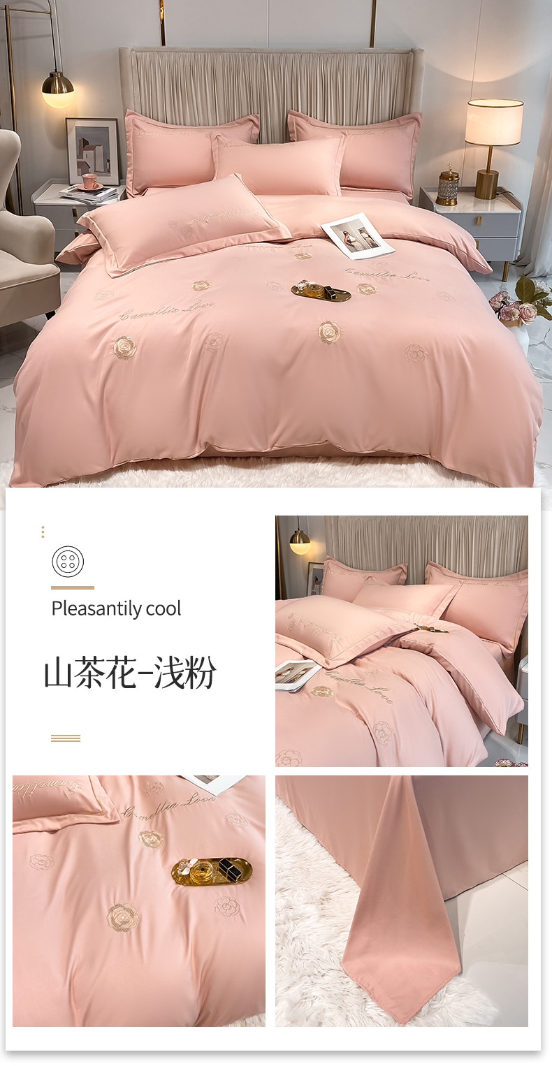 商品名称:涵宸家纺 2023新款水洗氧棉-山茶花系列四件套 山茶花-浅粉