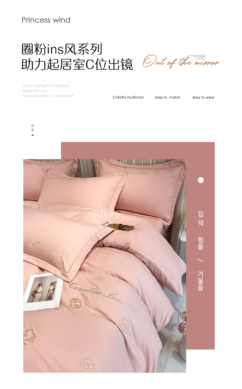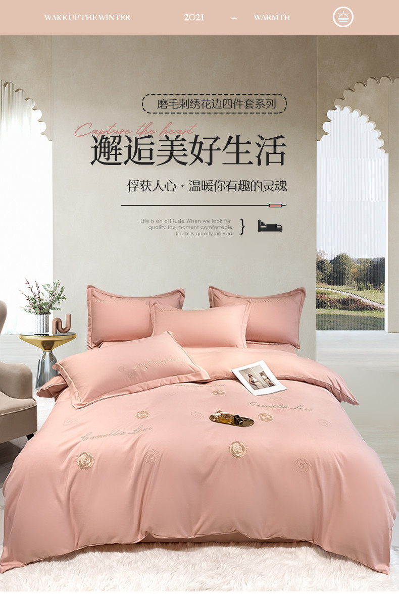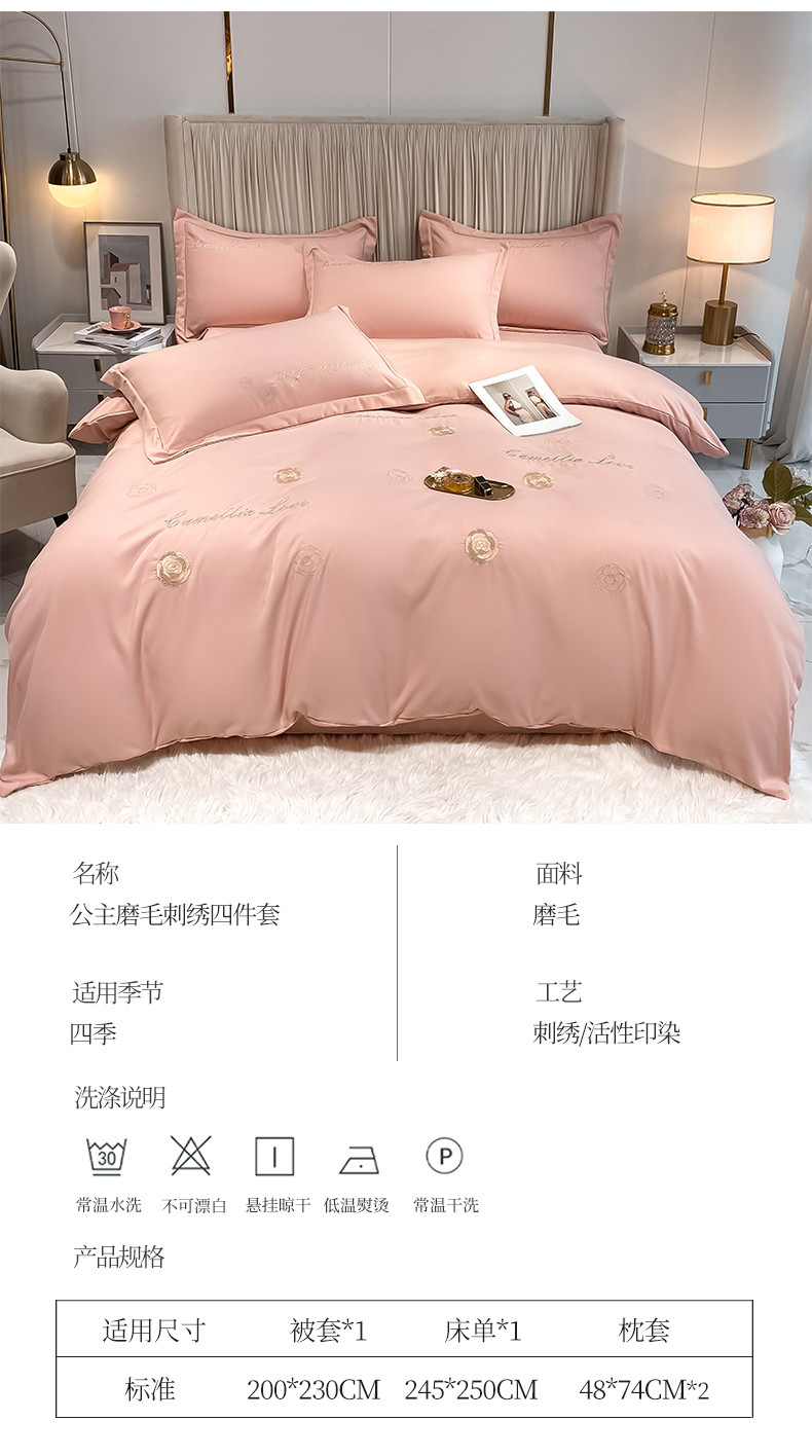 商品名称:涵宸家纺 2023新款水洗氧棉-山茶花系列四件套 山茶花-浅粉