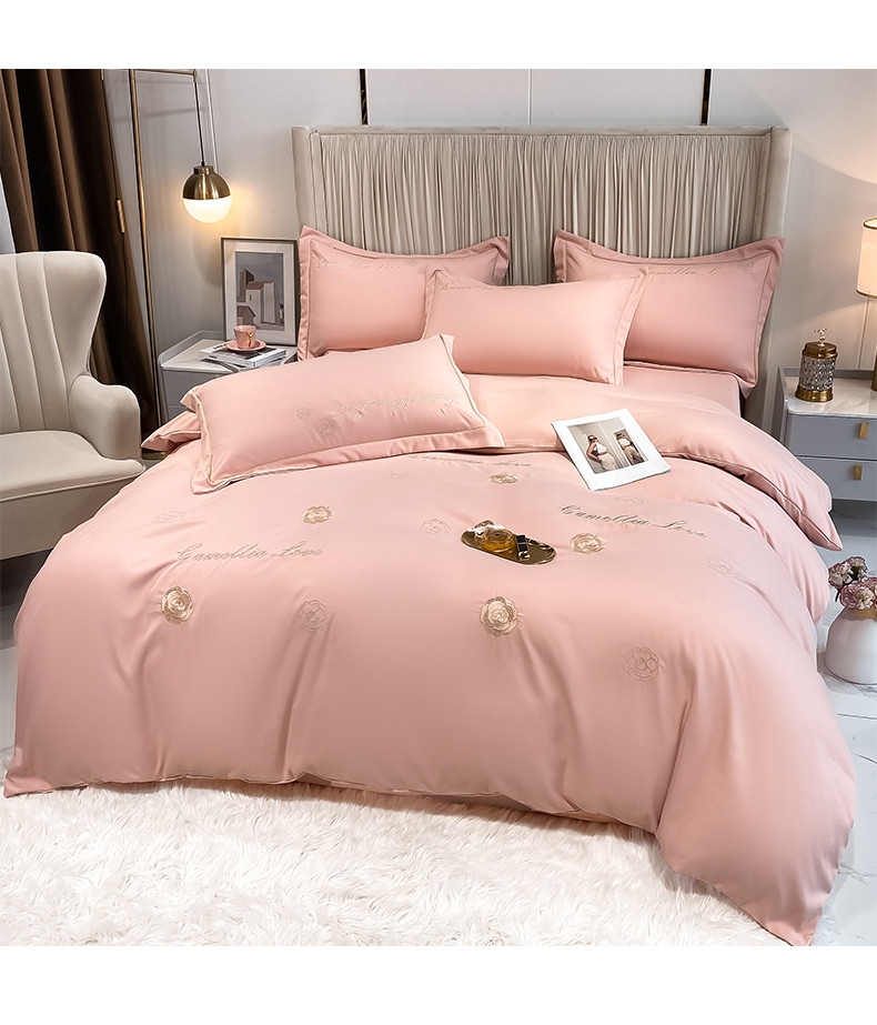 涵宸家纺 2023新款水洗氧棉-山茶花系列四件套 山茶花-浅粉