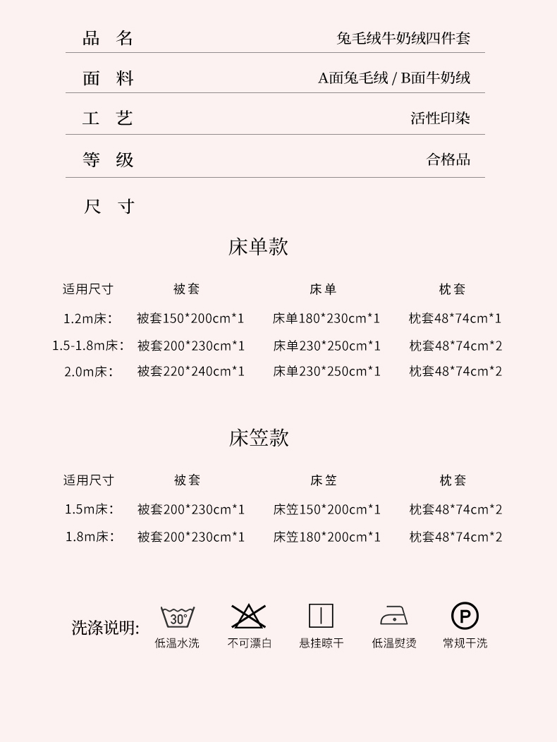 1.5床笠款:被套200x230 床笠150x200 枕套2只
