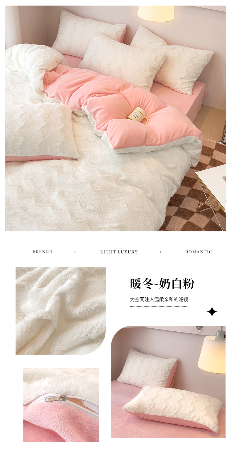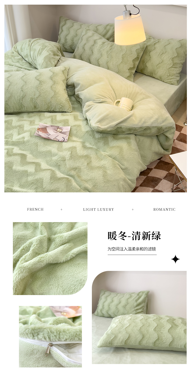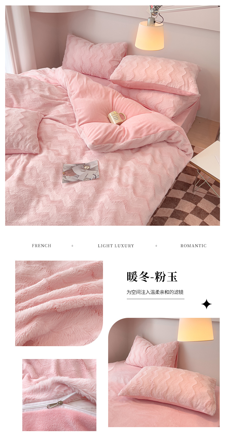 (总)韩都 2023新款直播爆款320克A类波浪兔毛绒立体剪花纯色牛奶绒四件套-暖冬