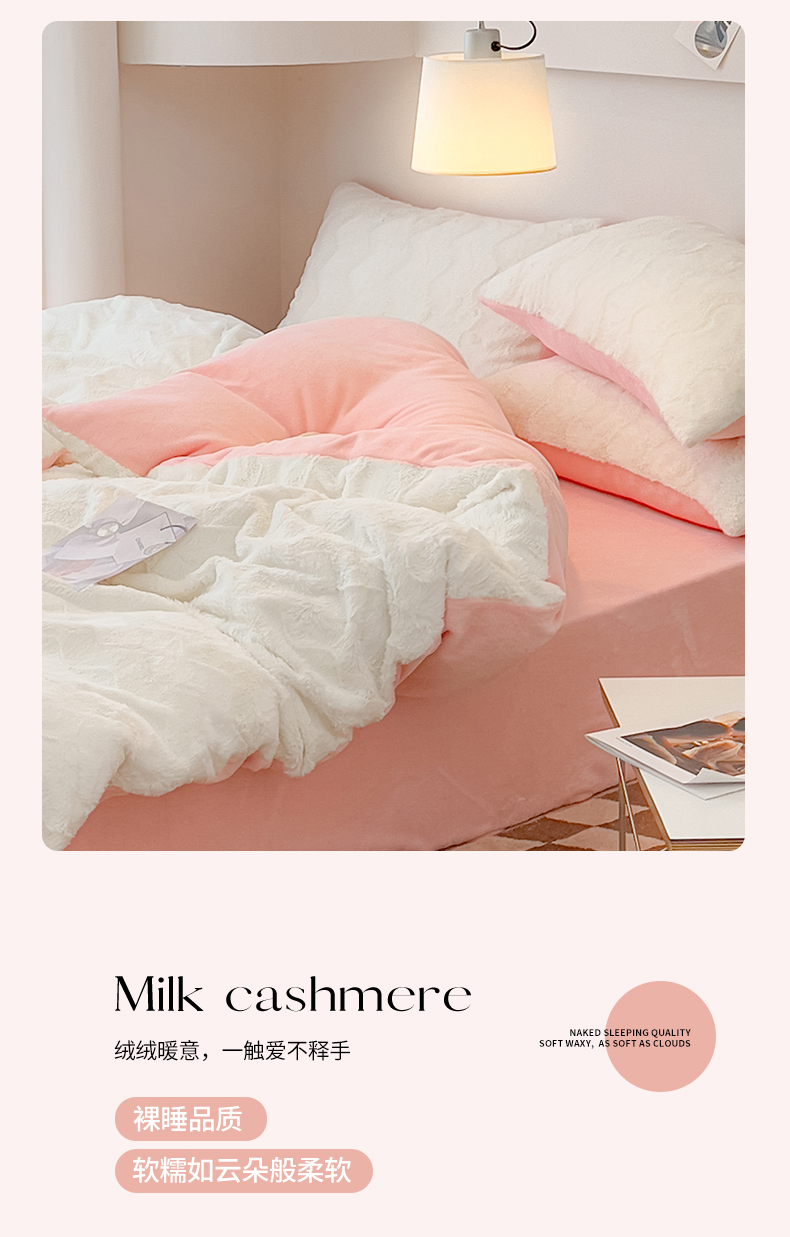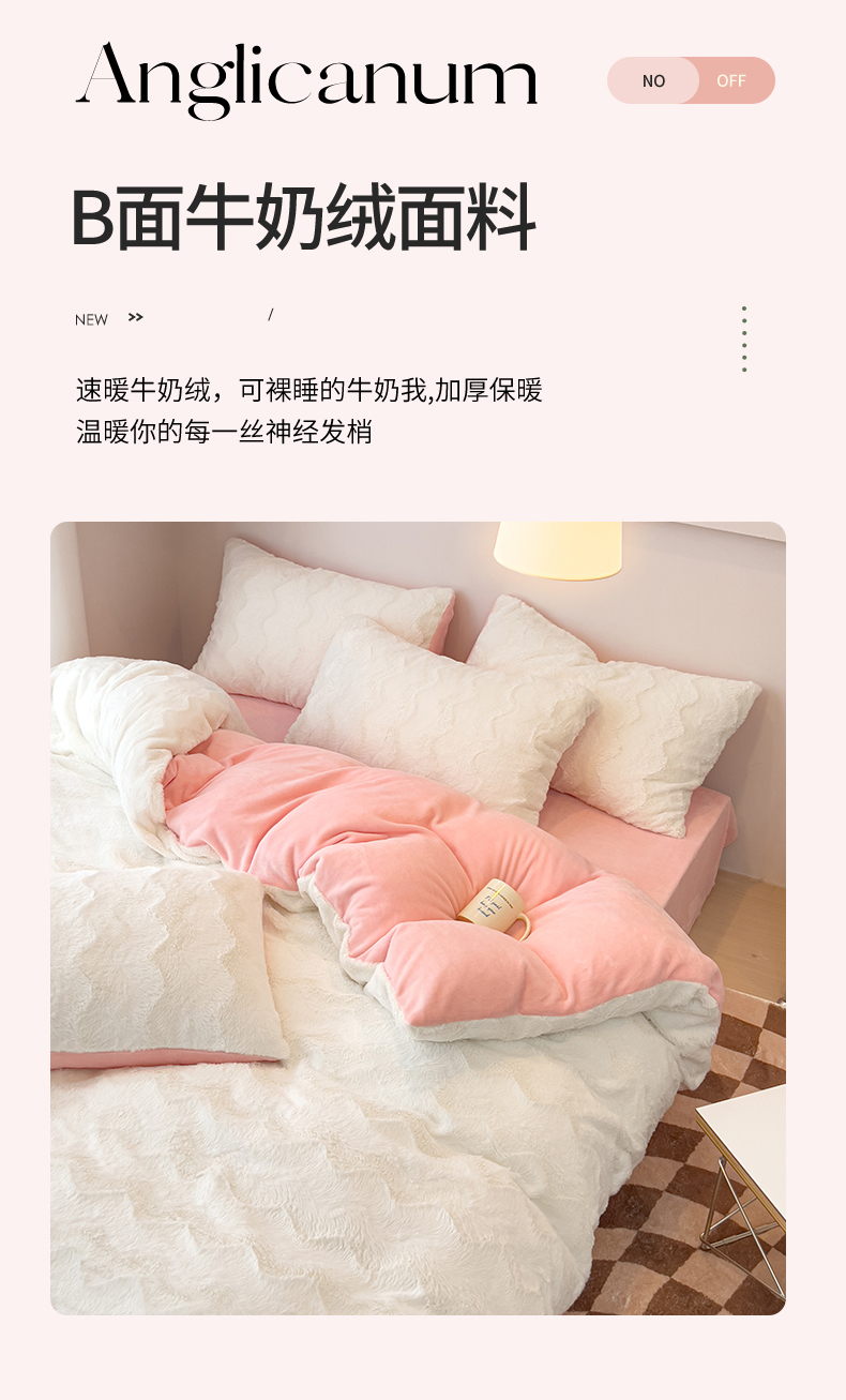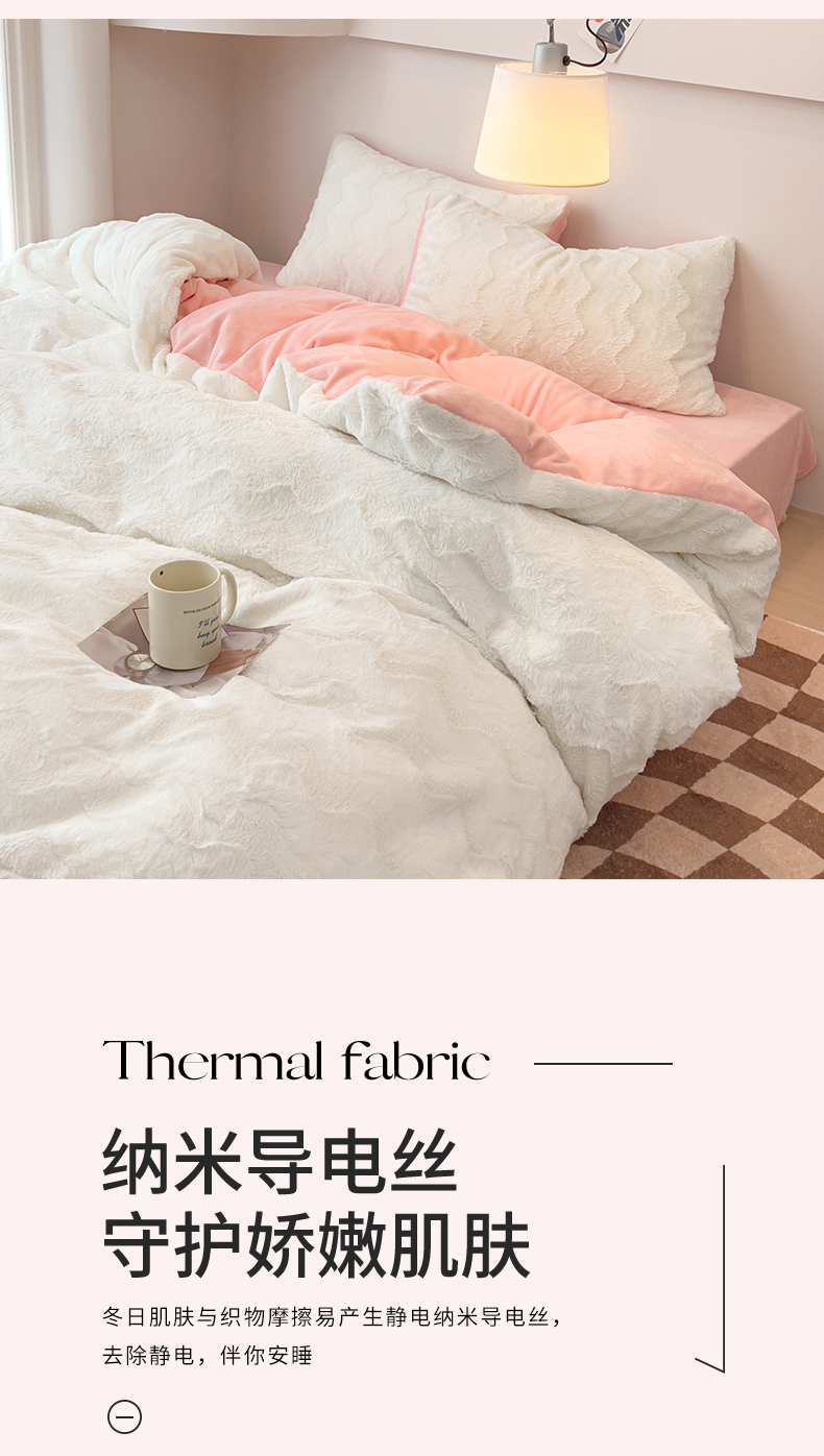 (总)韩都 2023新款直播爆款320克A类波浪兔毛绒立体剪花纯色牛奶绒四件套-暖冬