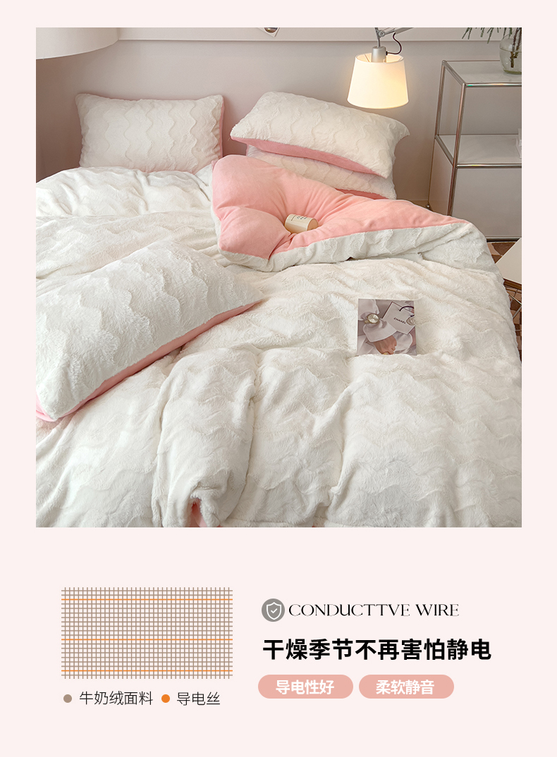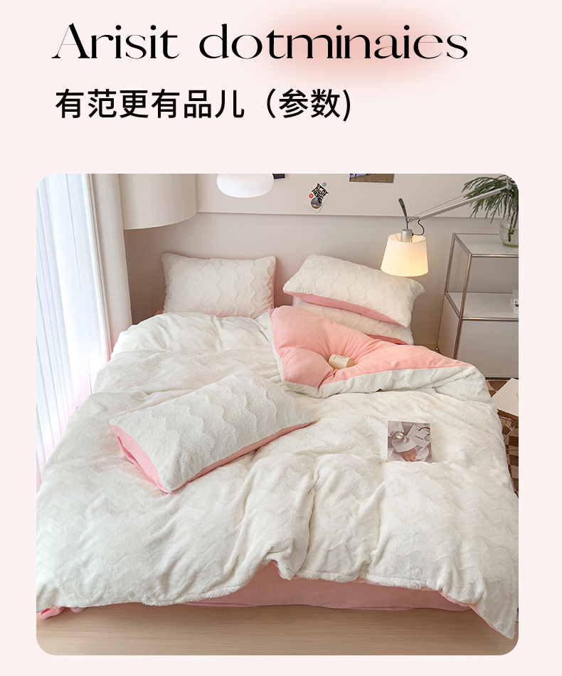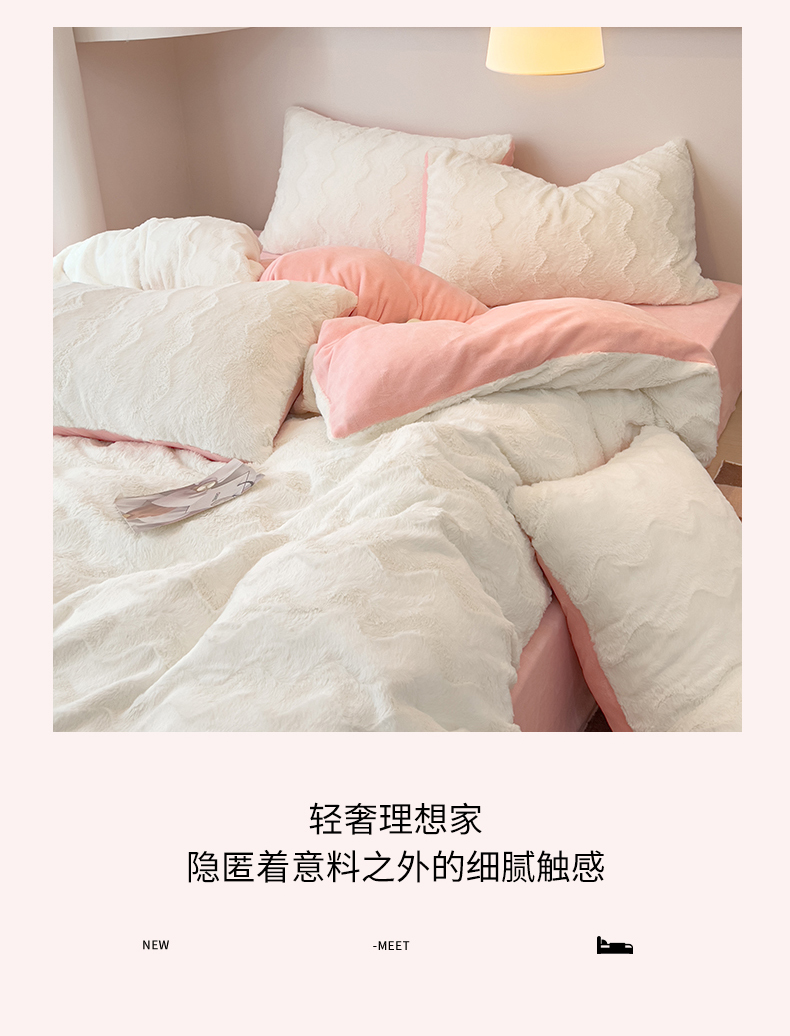 商品名称:(总)韩都 2023新款直播爆款320克A类波浪兔毛绒立体剪花纯色牛奶绒四件套-暖冬