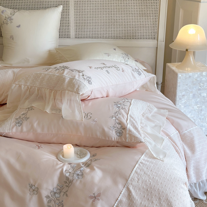 MIU缪家居 2023新款悠悠假日系列100支全棉四件套 悠悠假日-粉
