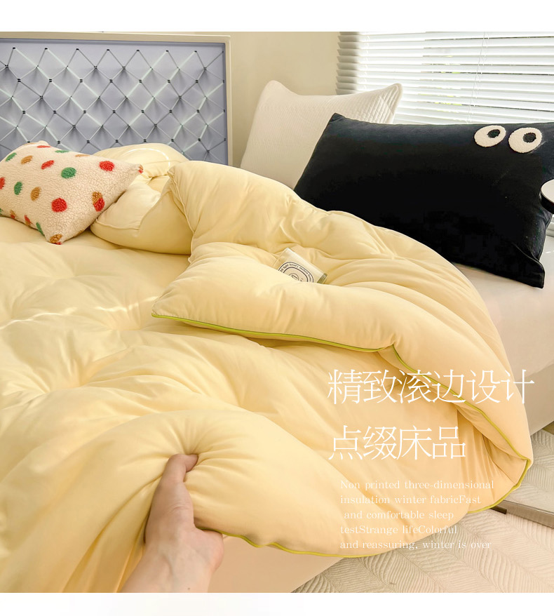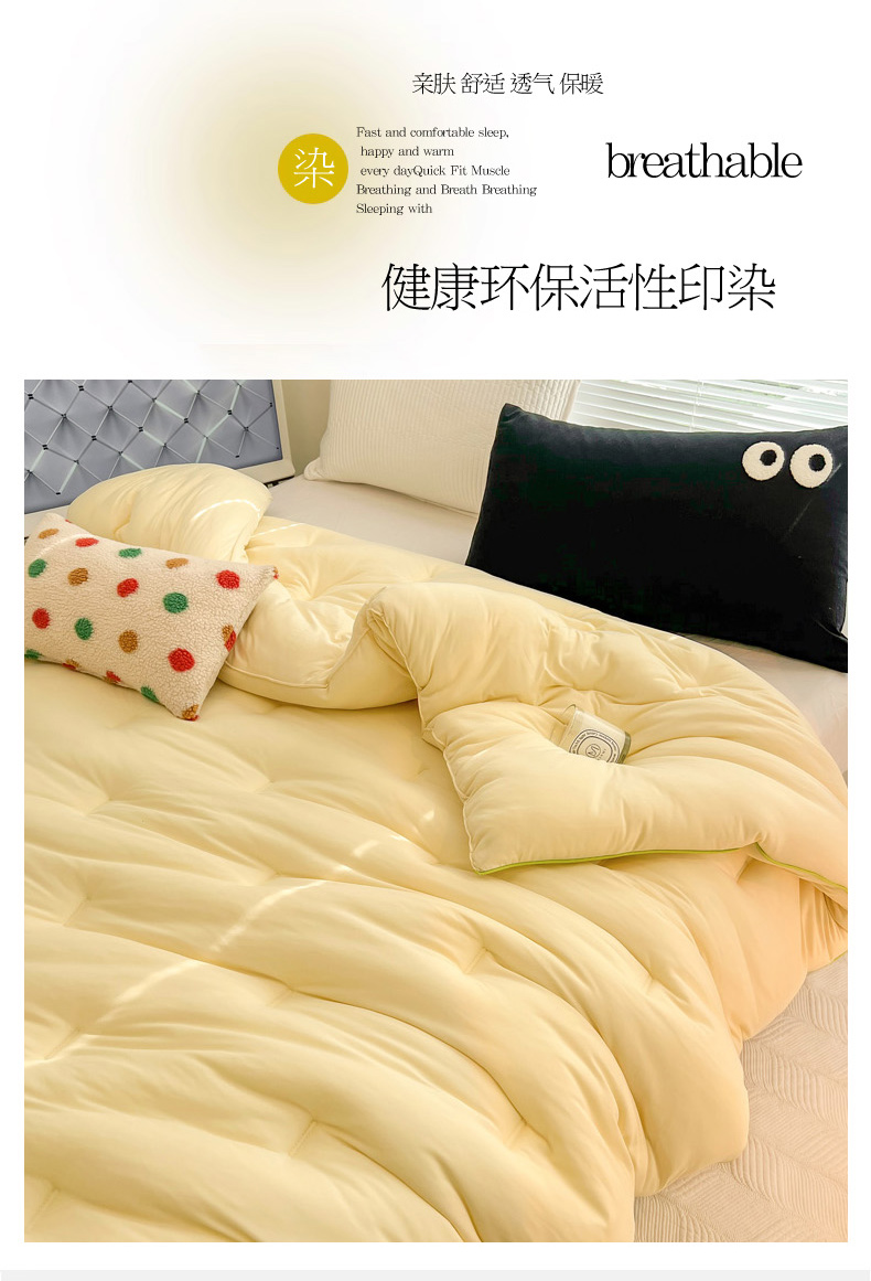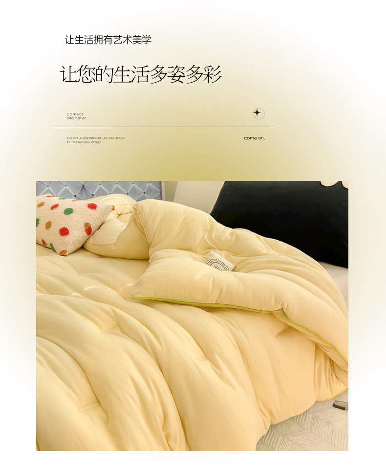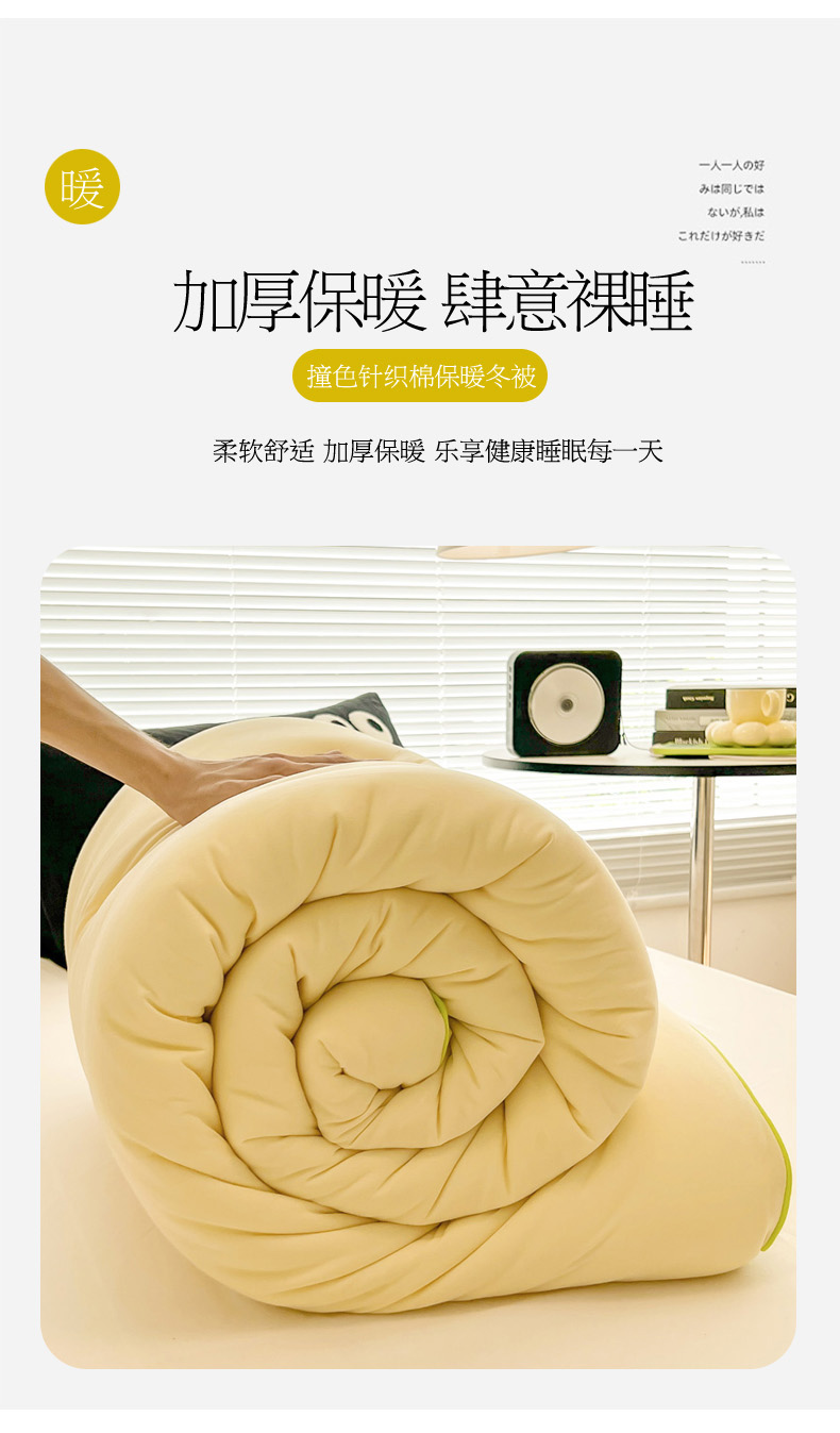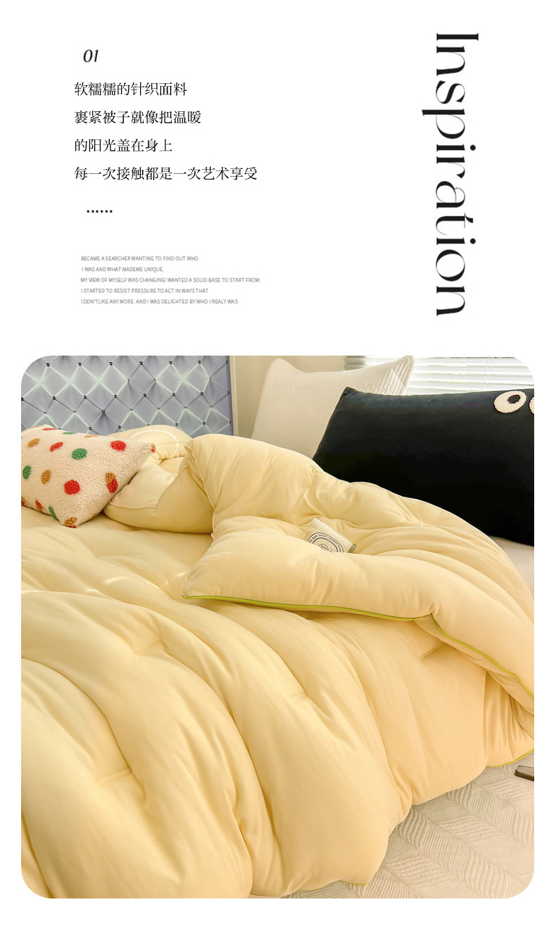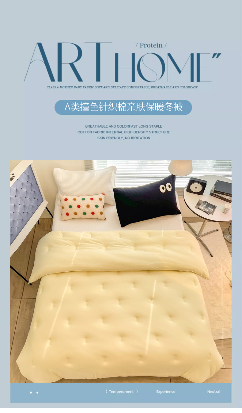 • 91家纺网 家纺一手货源 找家纺 寐居 2023新款A类撞色针织棉冬被 奶油黄