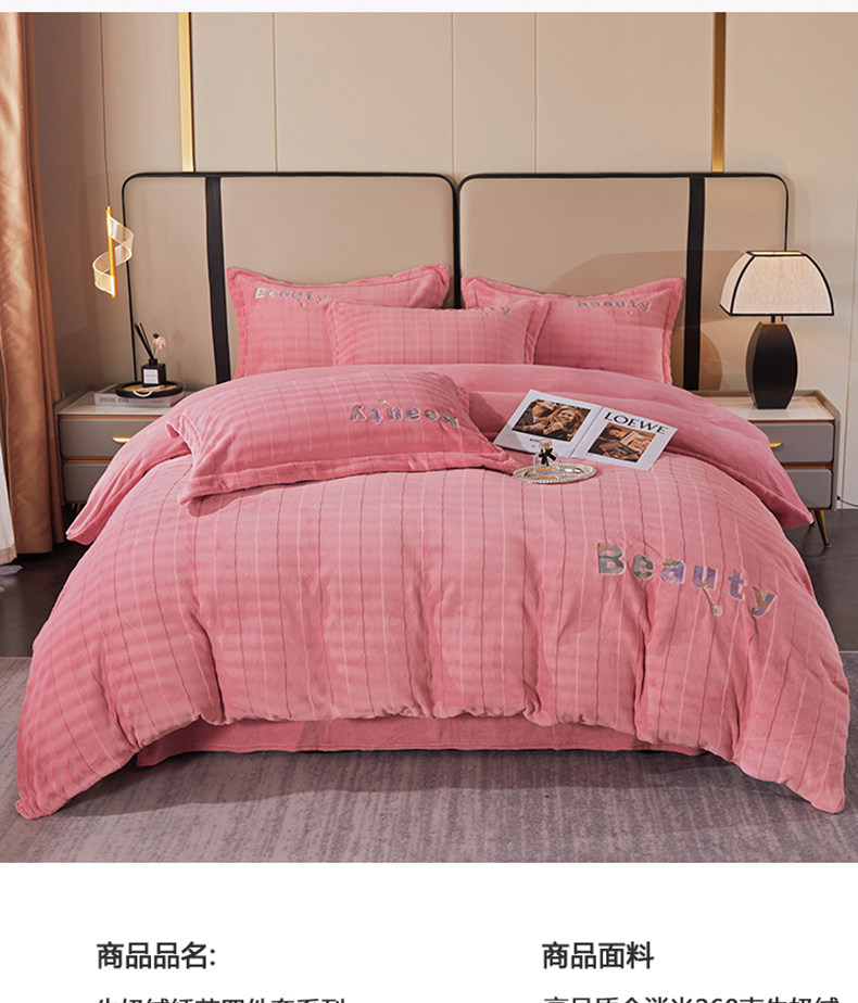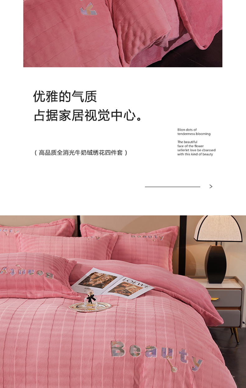 商品名称:新款牛奶绒绣花款四件套系列 清仓价! 浅粉