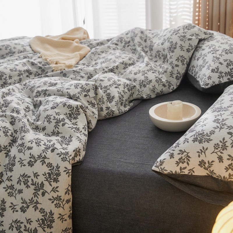 (总)梦享生活家居 2025新款全棉肌理纹提花四件套,灰黑色