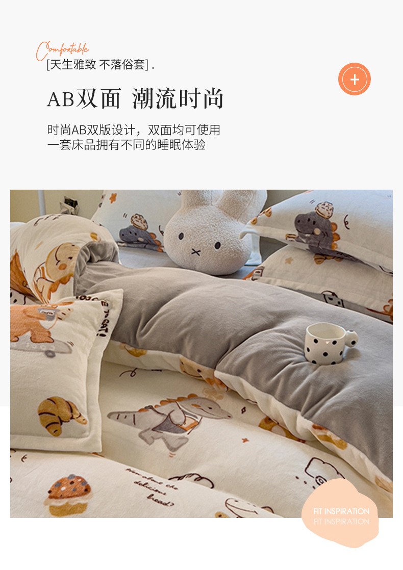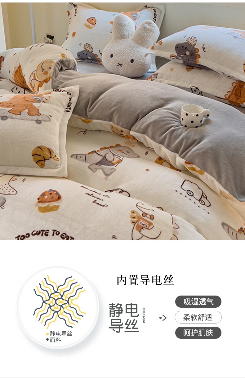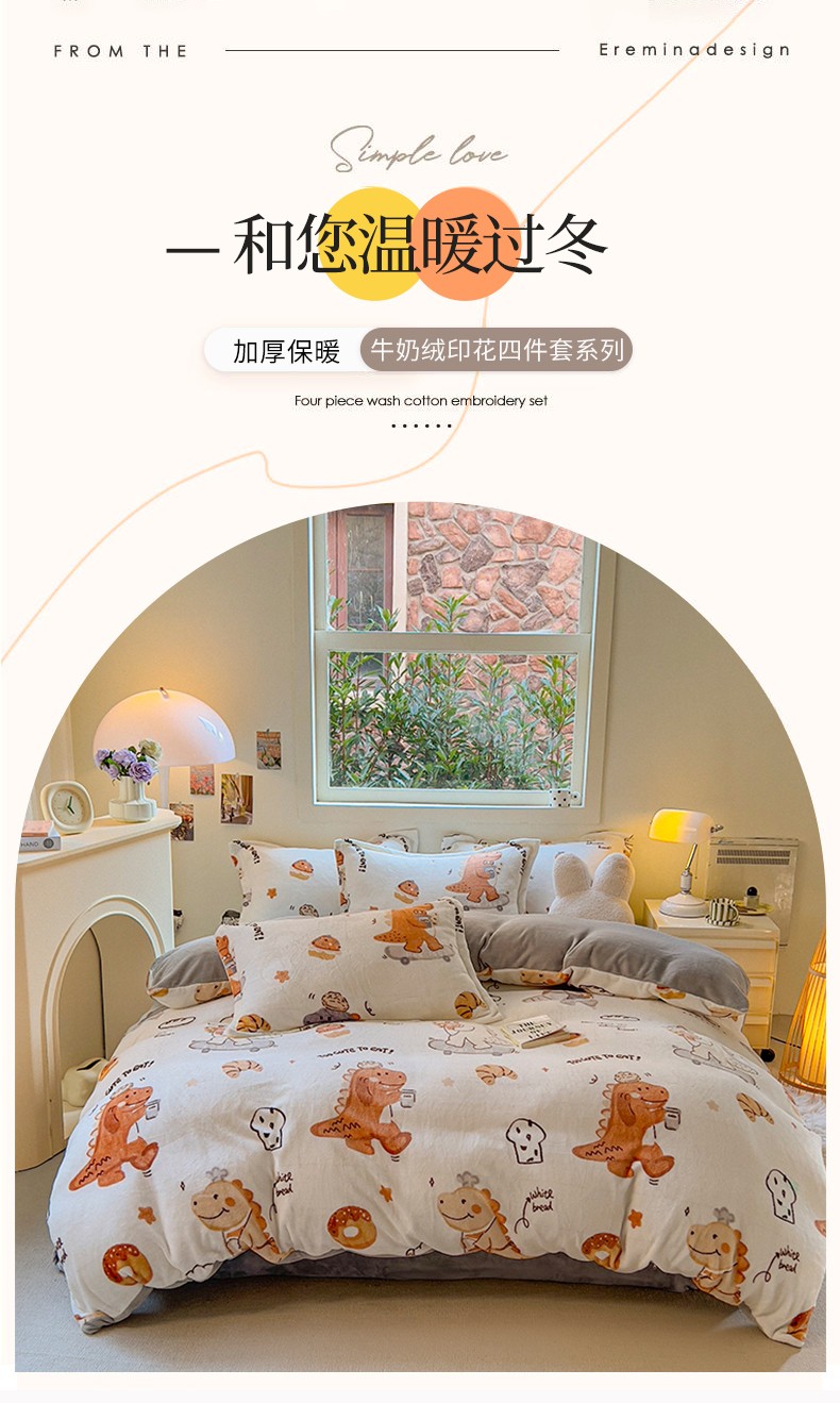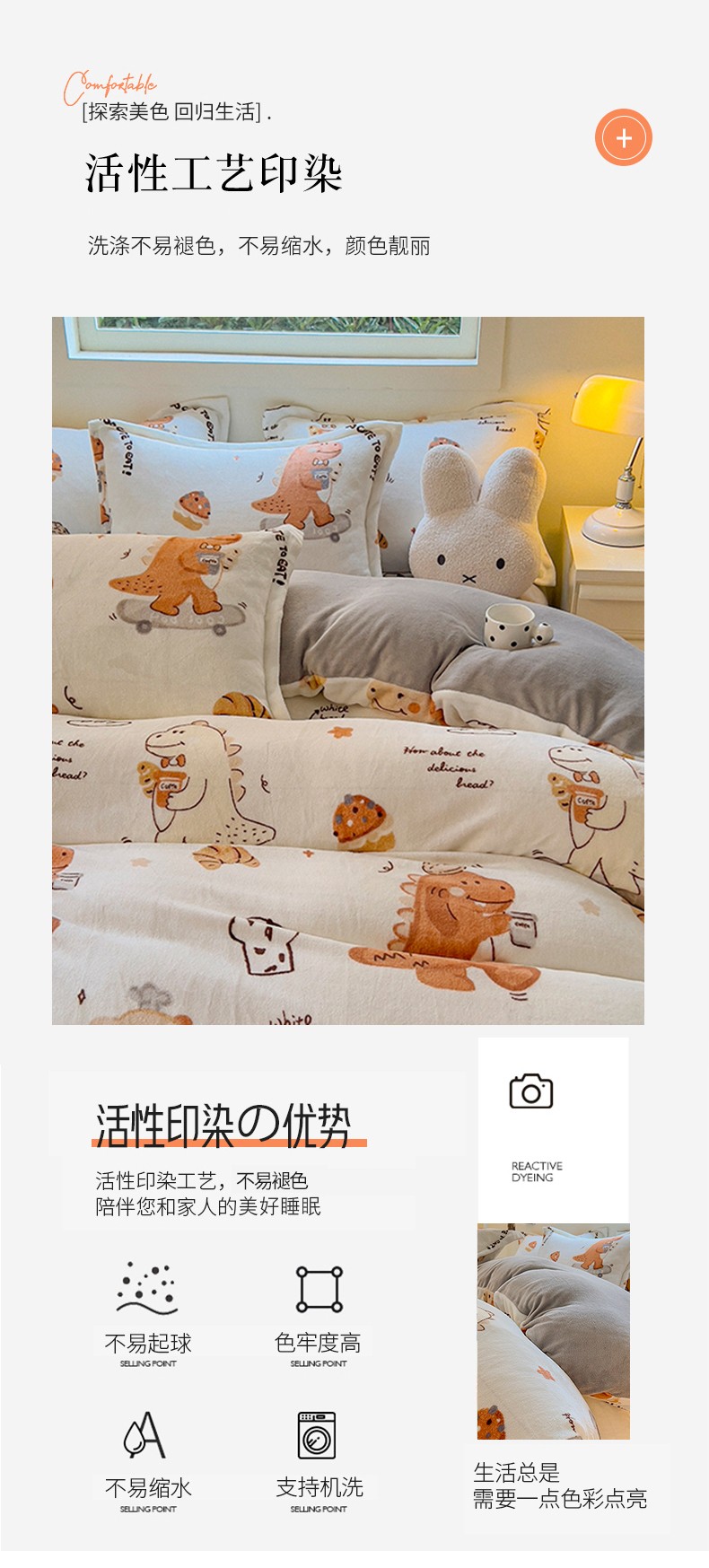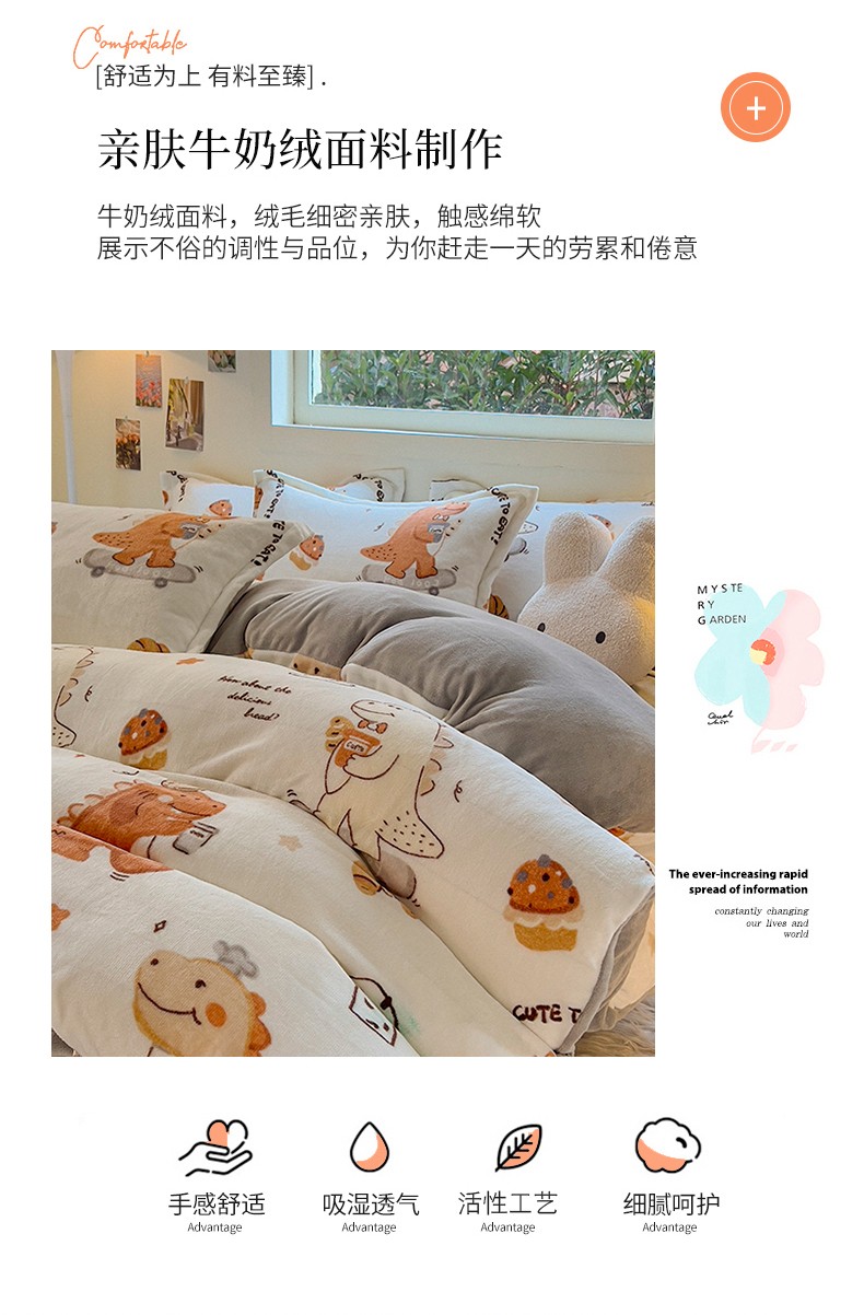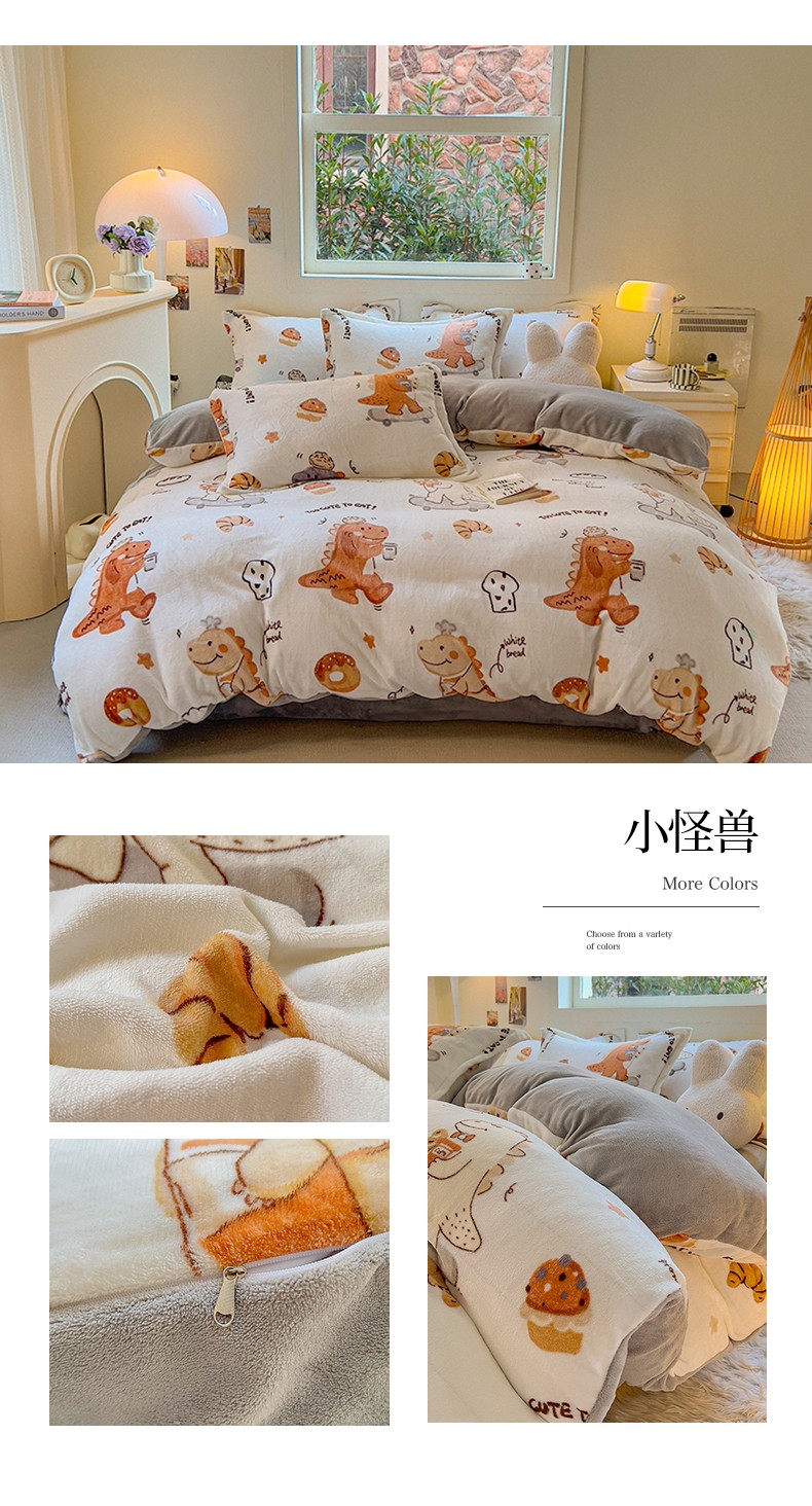 商品名称:慕尚 2025新款高克重加厚牛奶绒印花单被套-田园花卉系列 小怪兽