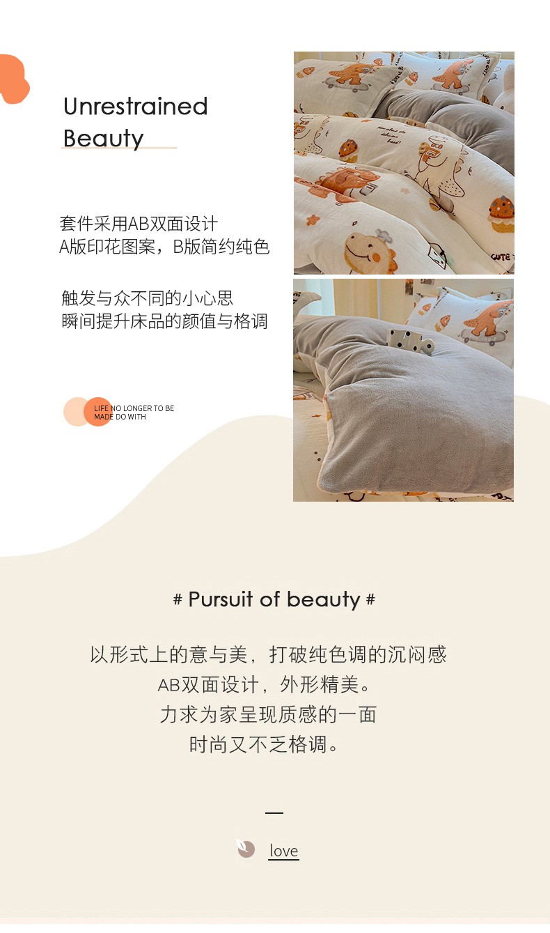 慕尚 2025新款高克重加厚牛奶绒印花单被套-田园花卉系列 小怪兽