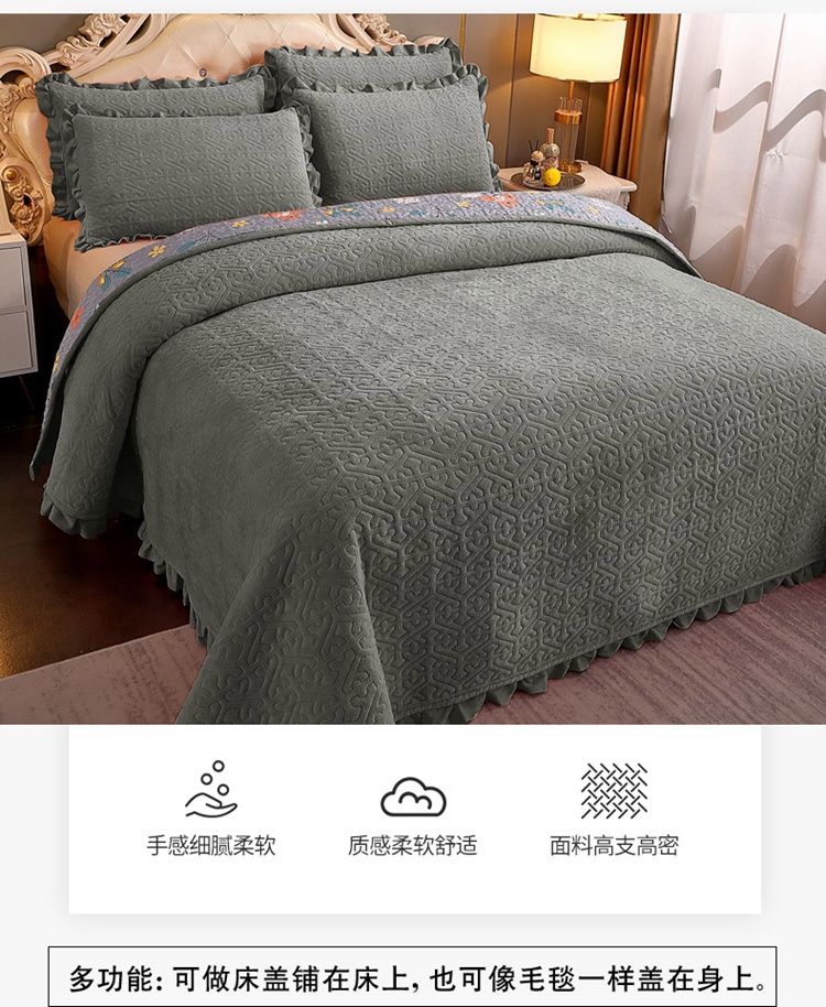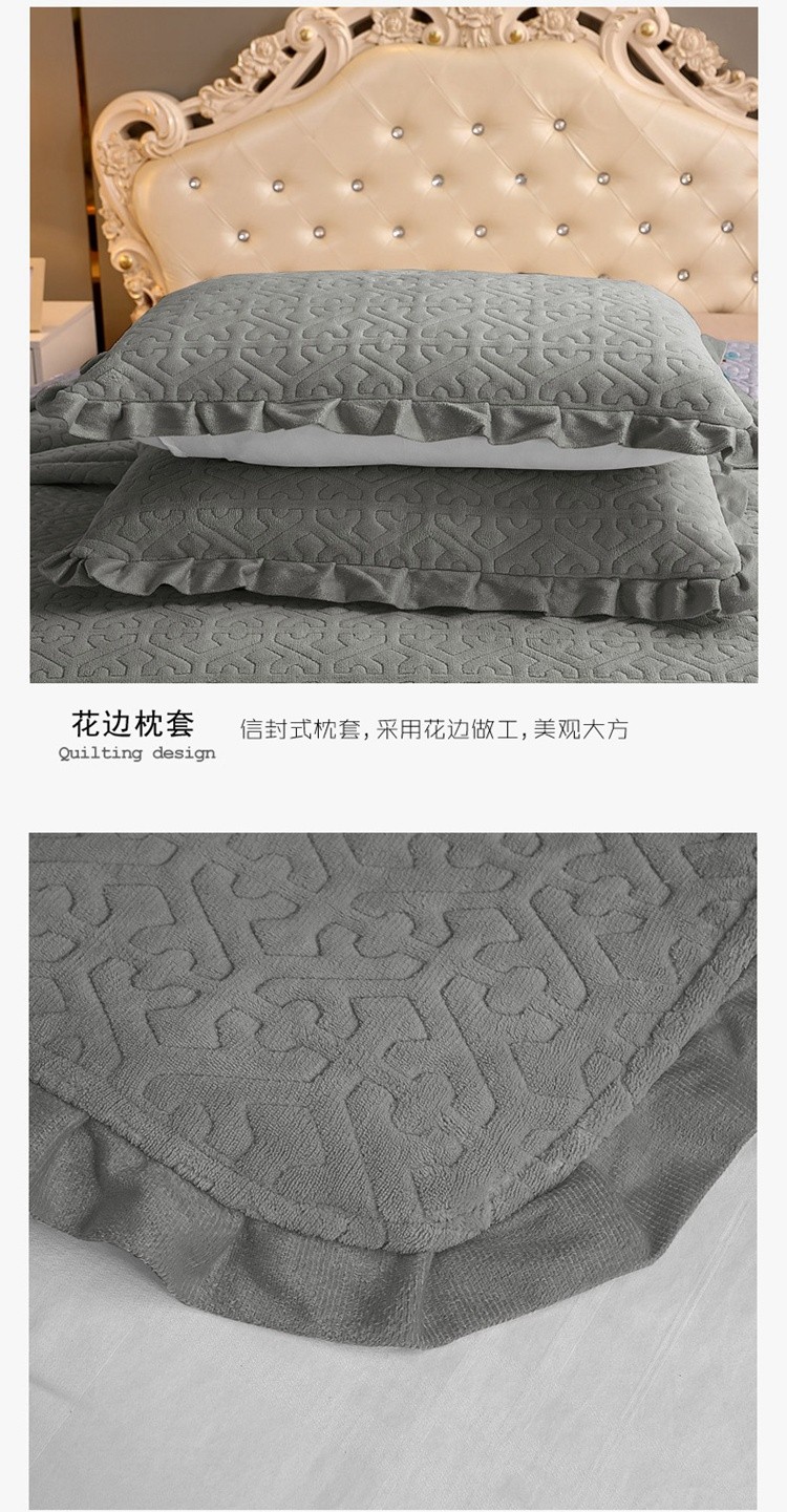 • 91家纺网 家纺一手货源 找家纺 2023新款纯色小花边牛奶绒床盖三件套 暖馨-深灰