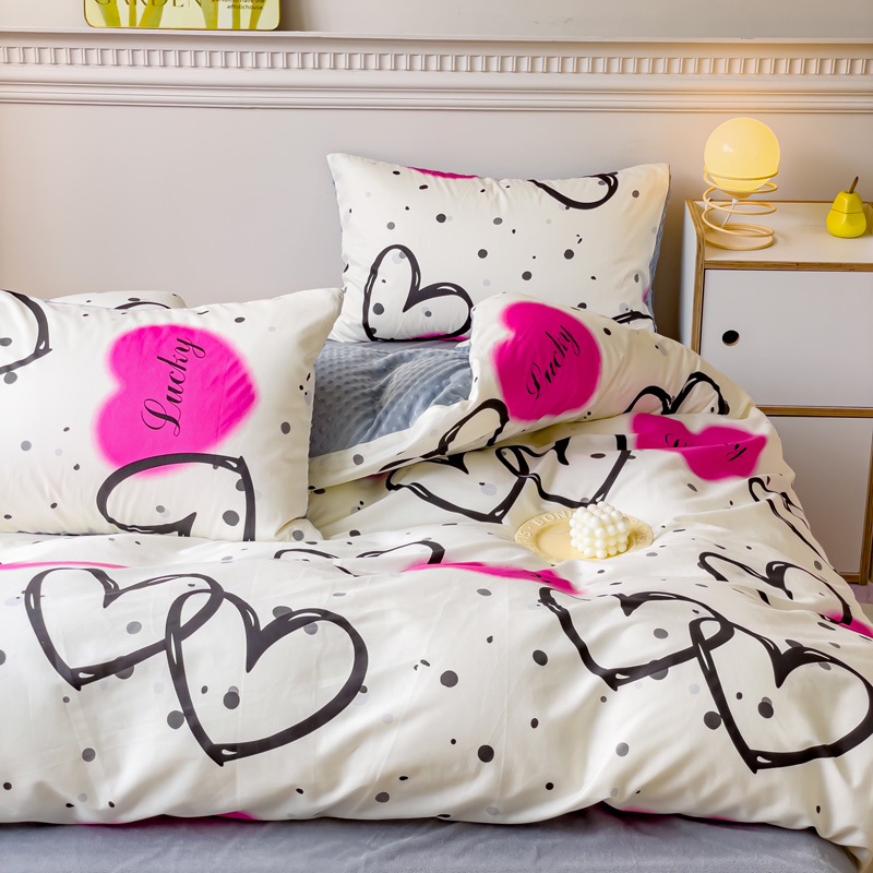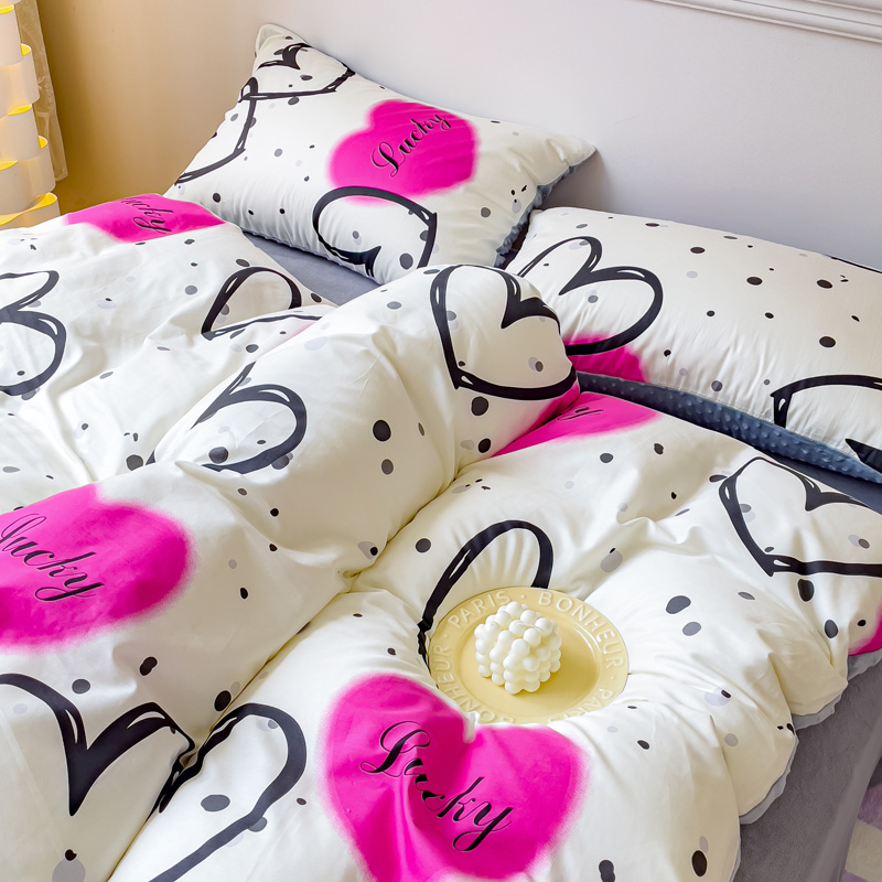 (总)2023新款40支纱全棉13070锁边工艺款四件套系列,格子爱心,嘉兰,咖条,朗尼,小兔兔,星星兔