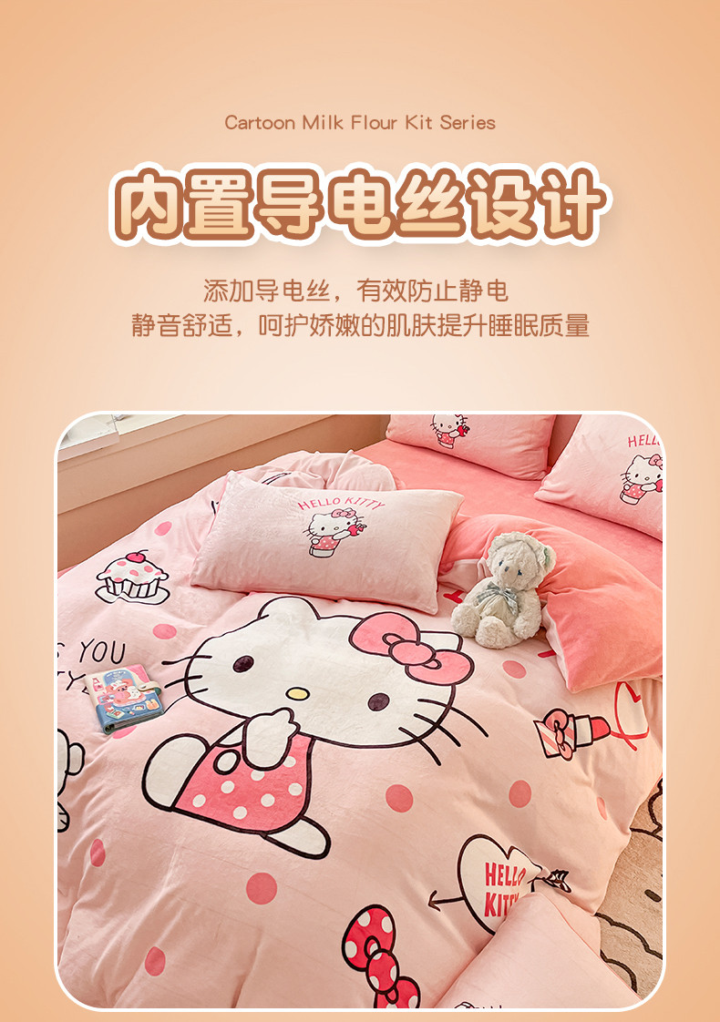 当前位置: 91家纺网 > 商品网购 > 床品套件 > 四件套 > 牛奶绒四件套 > 孩子王 2023正版授权直播三丽鸥卡通大版双面加厚牛奶绒系列 时尚KT
