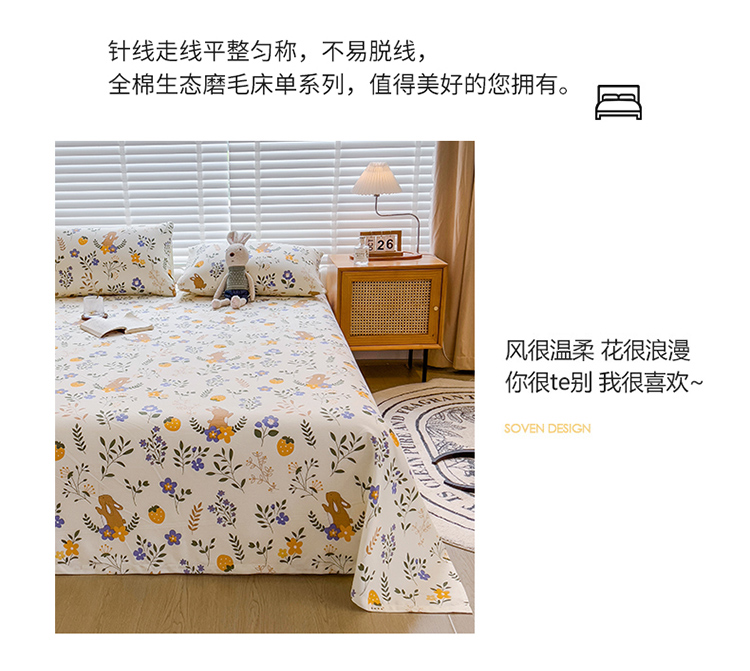 • 91家纺网 家纺一手货源 找家纺 芃成家纺 2023磨毛单床单 田园小兔