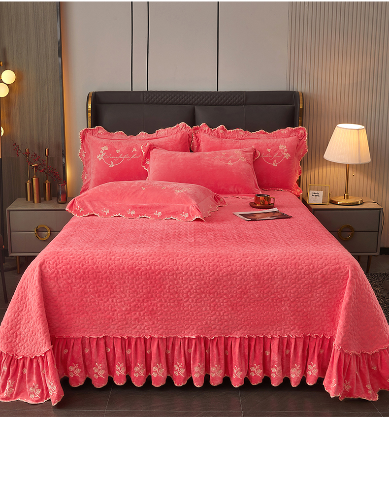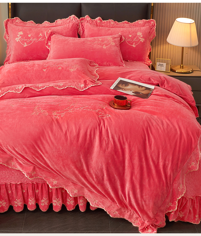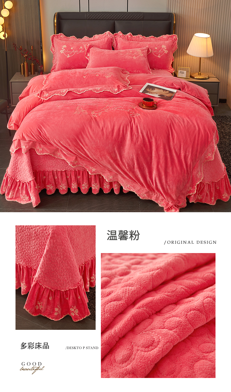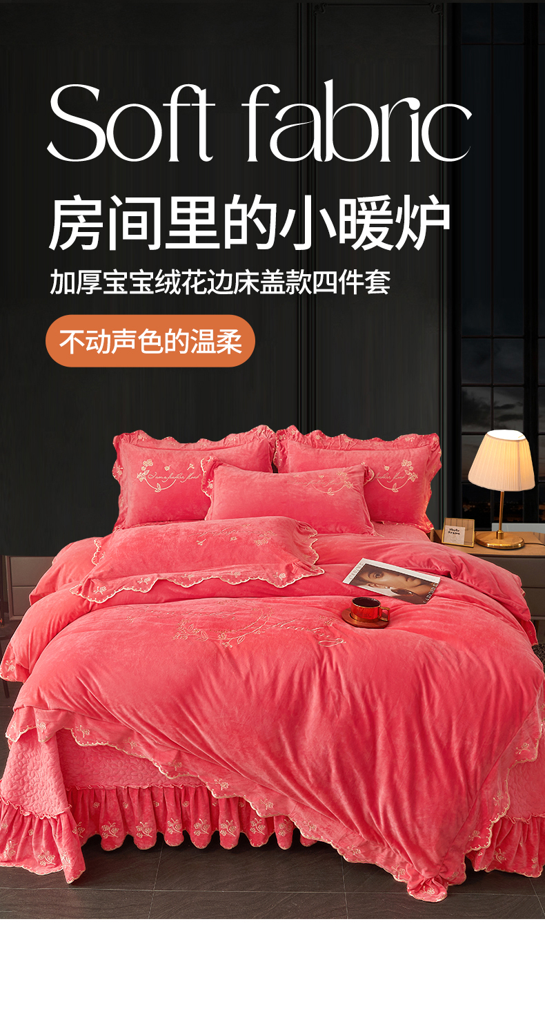 (总)恒爱 2022秋冬水晶绒翩翩花舞夹棉床裙四件套,大红色,豆沙红,橄榄绿,公主粉,桔色,咖啡色,孔雀绿,拉菲红,罗兰紫,玫红色,美人玉,米白色,米驼色,抹茶绿,浅灰色,紫色