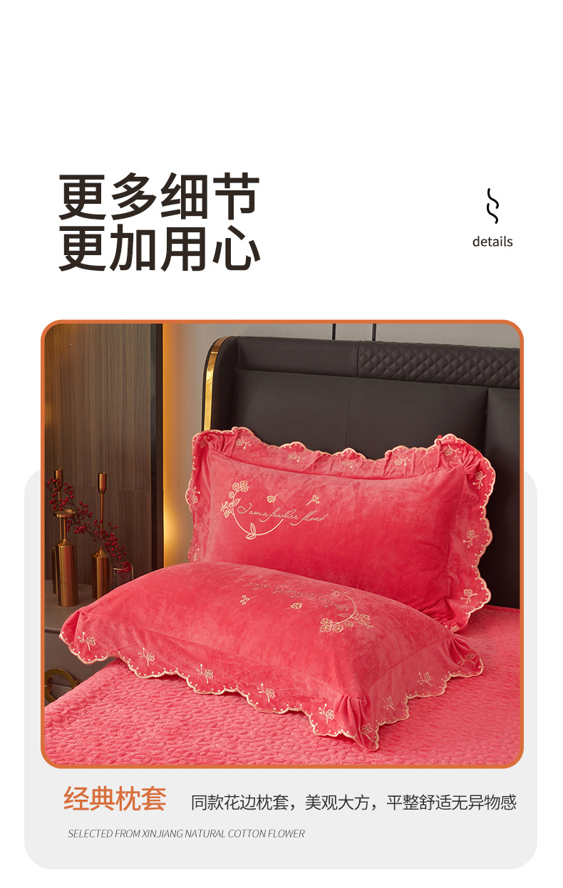 (总)恒爱家纺 2025新款牛奶绒贴布绣夹棉床裙四件套,豆沙红,浪漫紫,天空蓝,温馨粉,象牙白