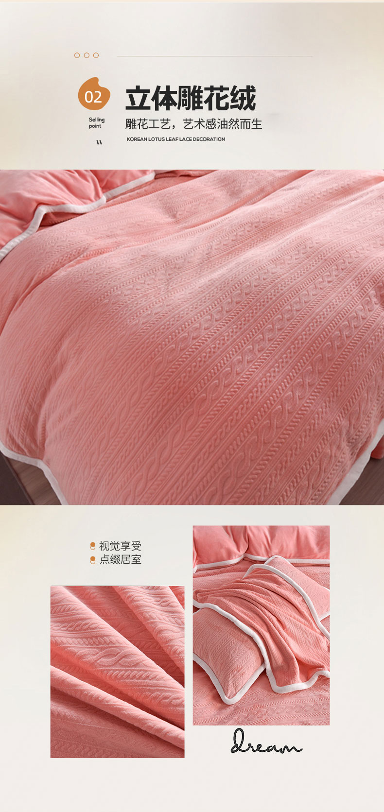 商品名称:畅畅家纺 2023新款A类雕花绒牛奶绒四件套 安娜-粉