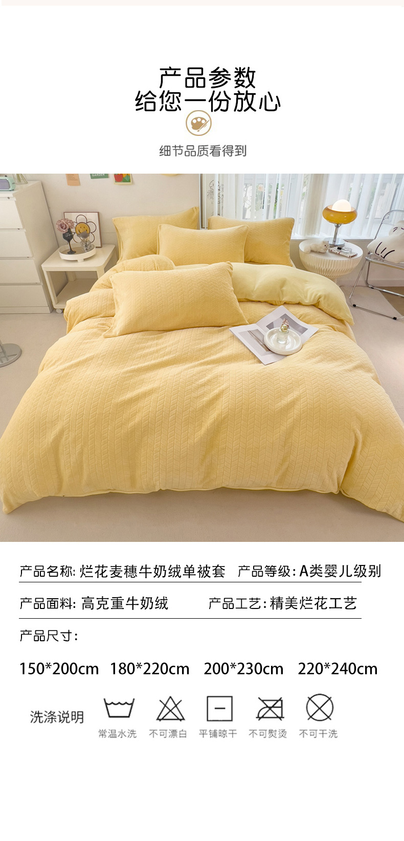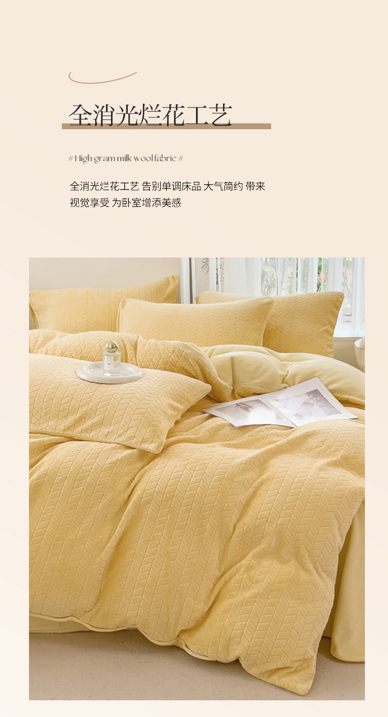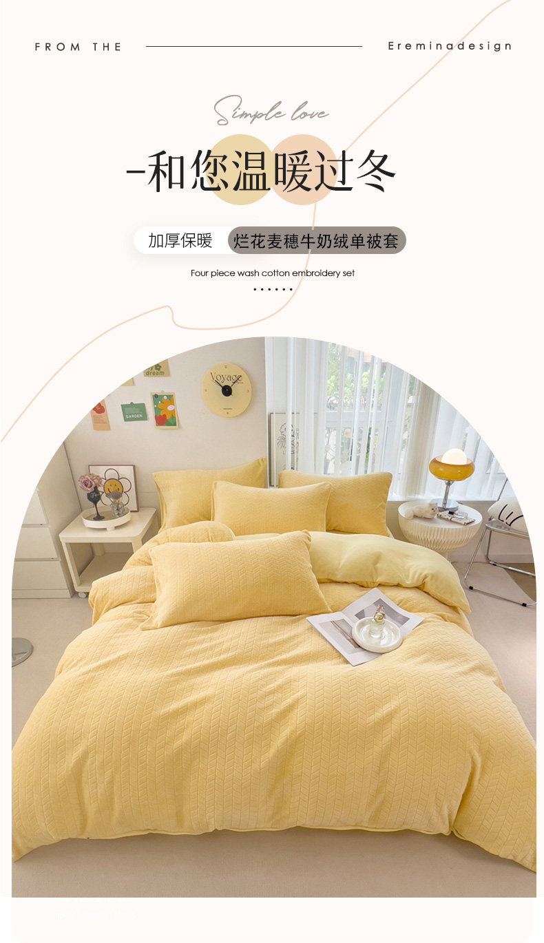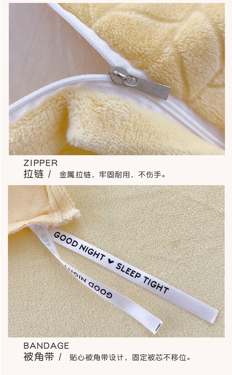 商品名称:2023新款小清新A类高克重加厚印花牛奶绒被套单件 奶黄