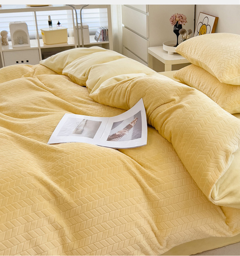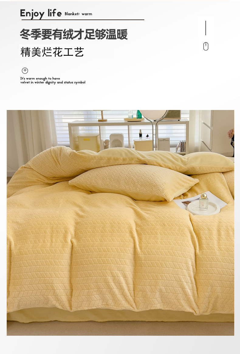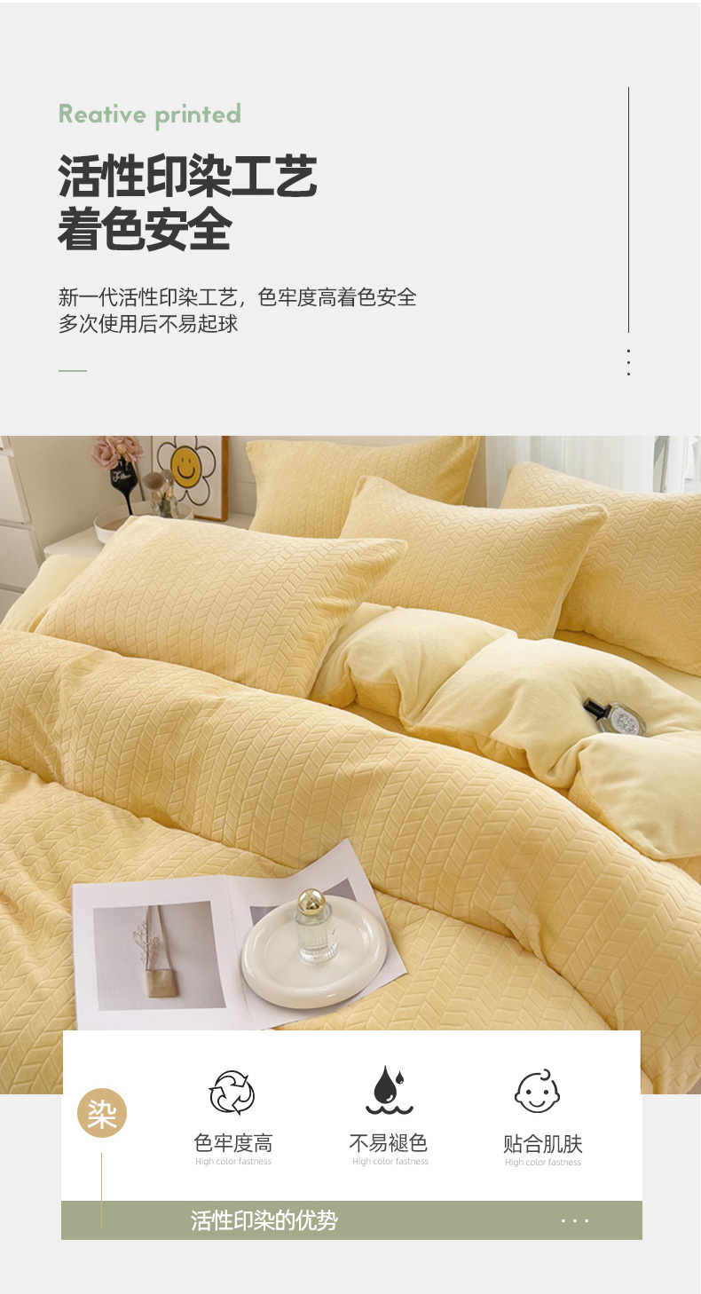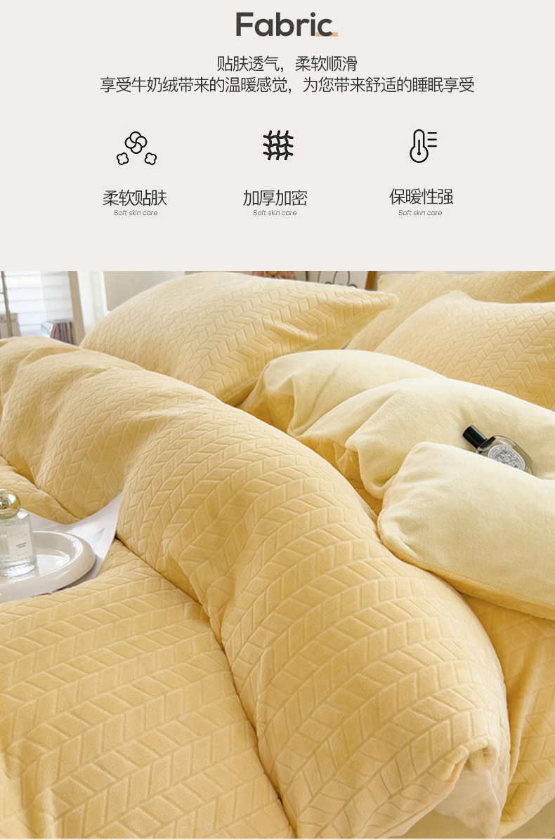 商品名称:2023新款小清新A类高克重加厚印花牛奶绒被套单件 奶黄