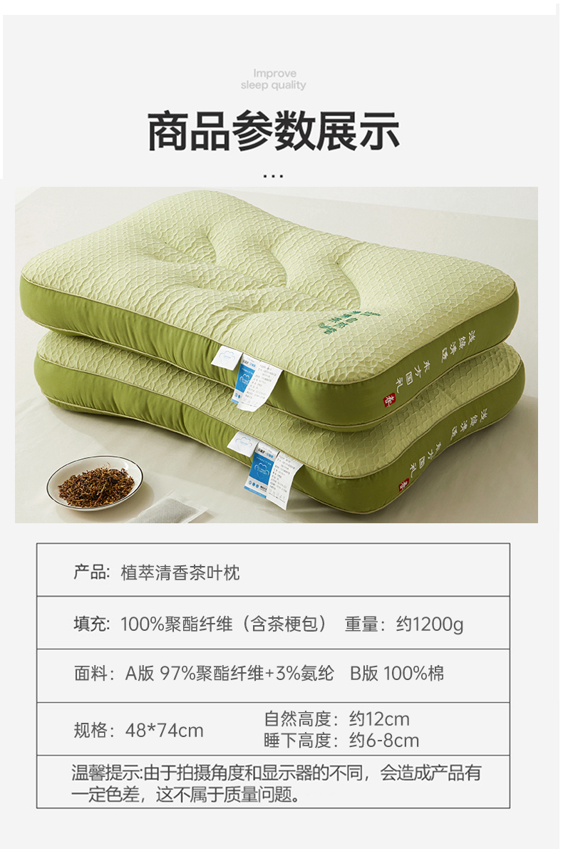 当前位置: 91家纺网 > 商品网购 > 枕头/枕芯/保健枕/颈椎枕 > 普通枕芯 > 昕科 2025新款植萃清香茶叶枕 枕芯枕头 茶叶枕-白色